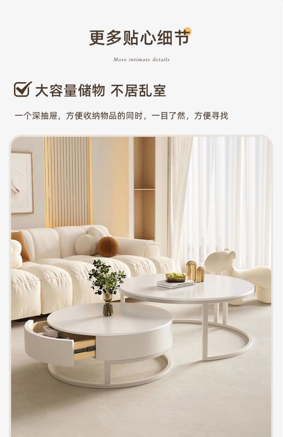 奶油风实木茶几极简家用客厅小户型现代简约高级感圆形可移动边几