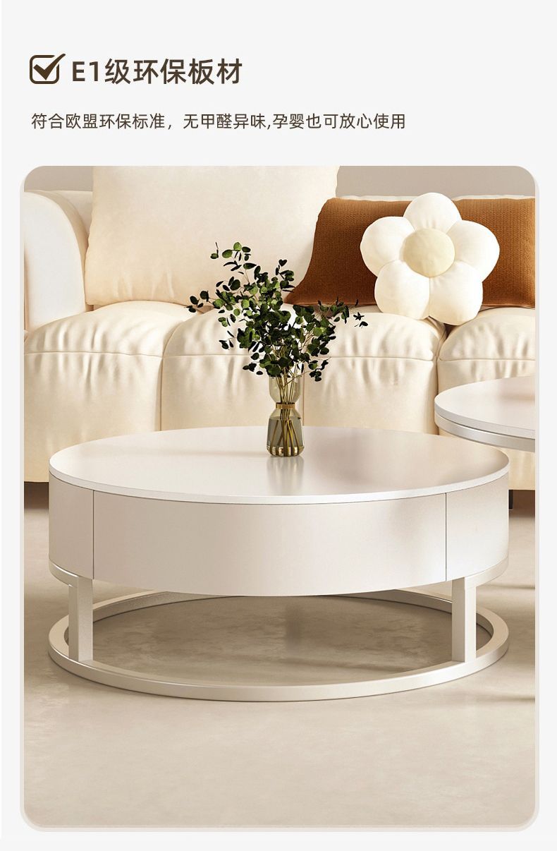 小户型客厅网红茶几现代圆形仿大理石铁艺茶桌北欧简易边桌一体