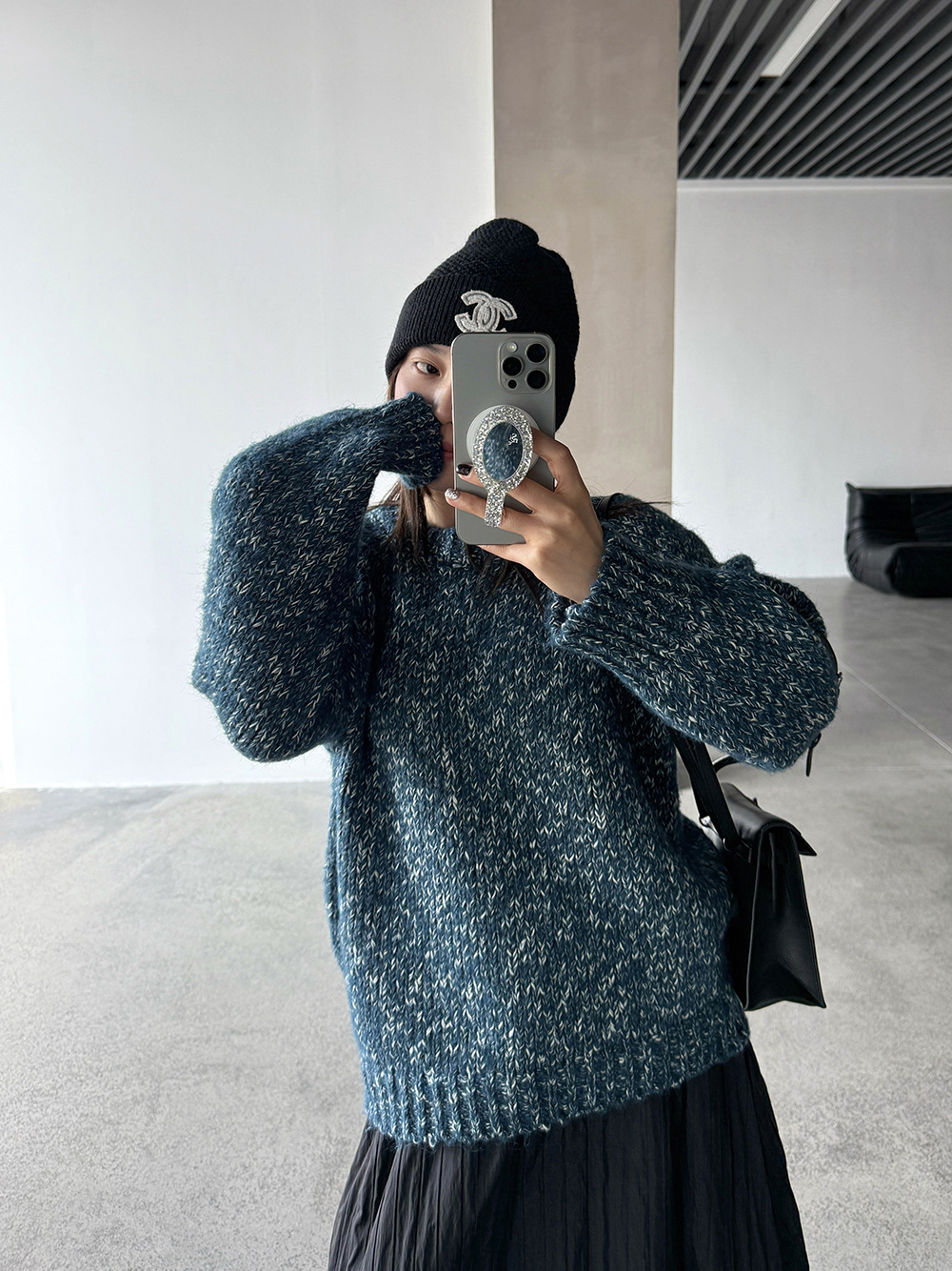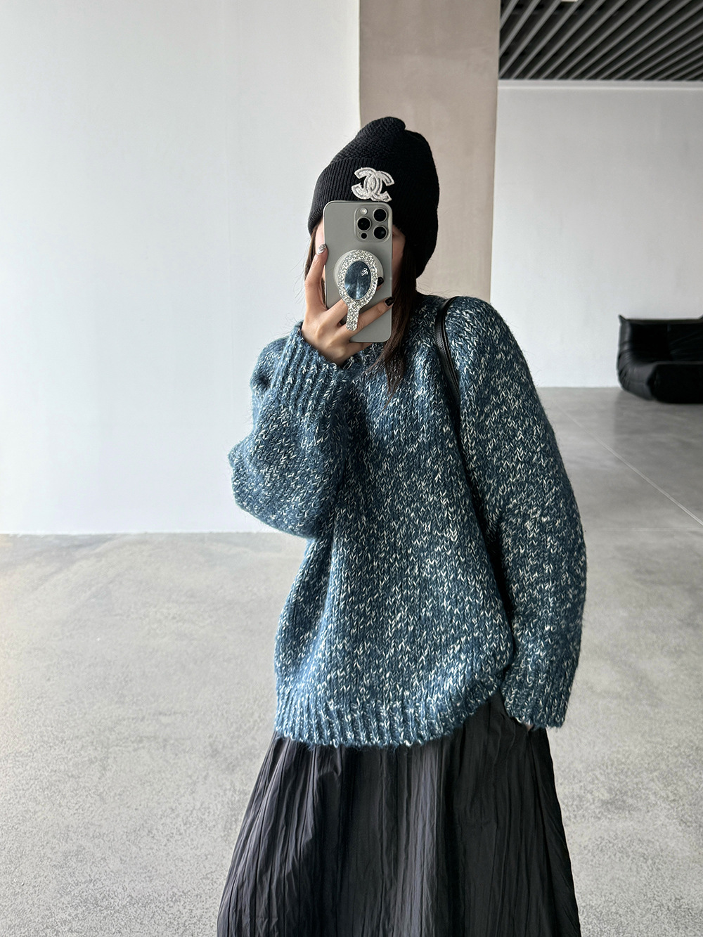 【王琪芝】羊毛圆领粗线花线插肩毛衣女保暖粗线套头针织衫WQ080
