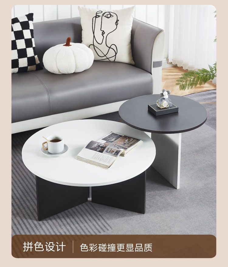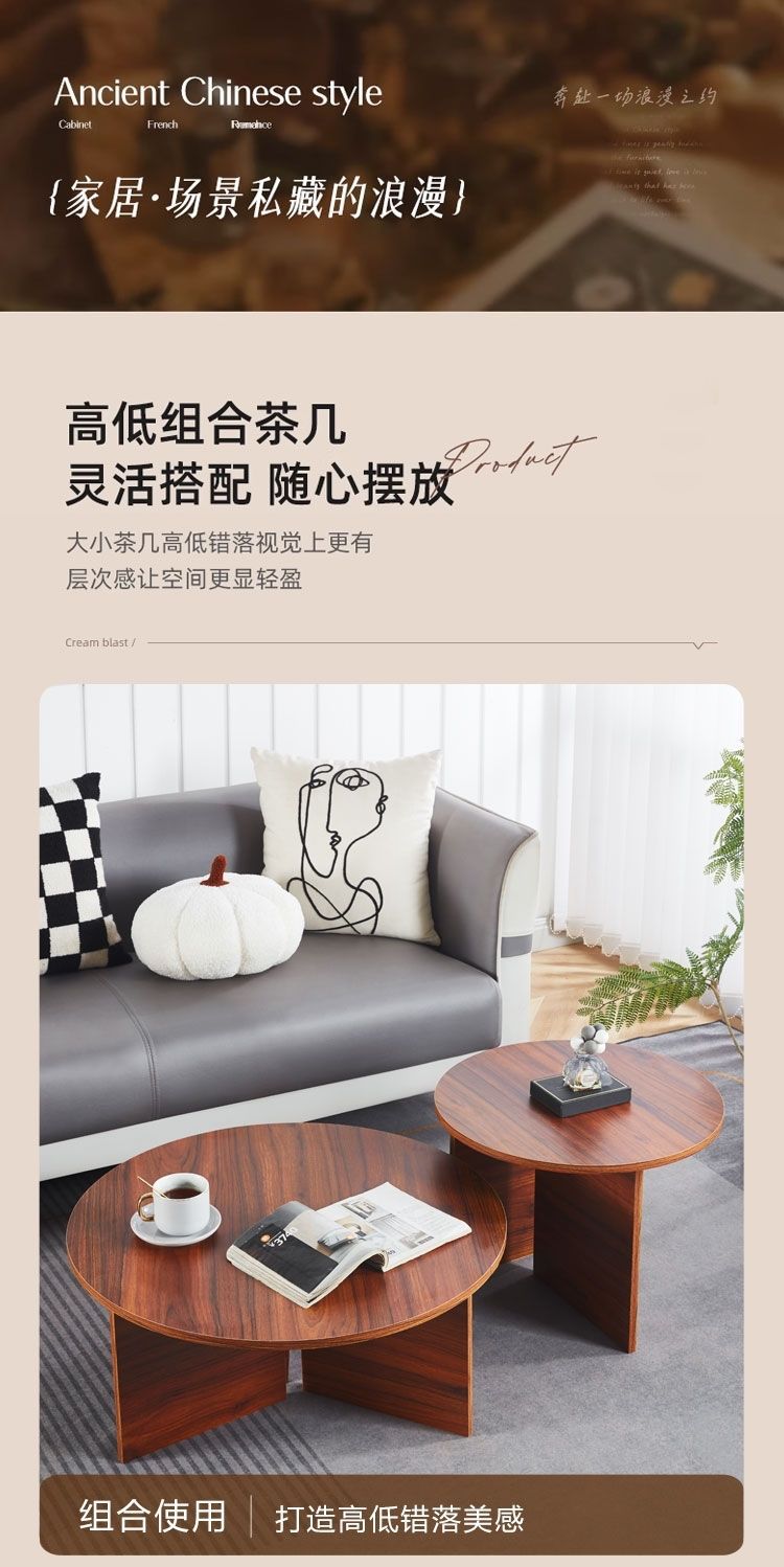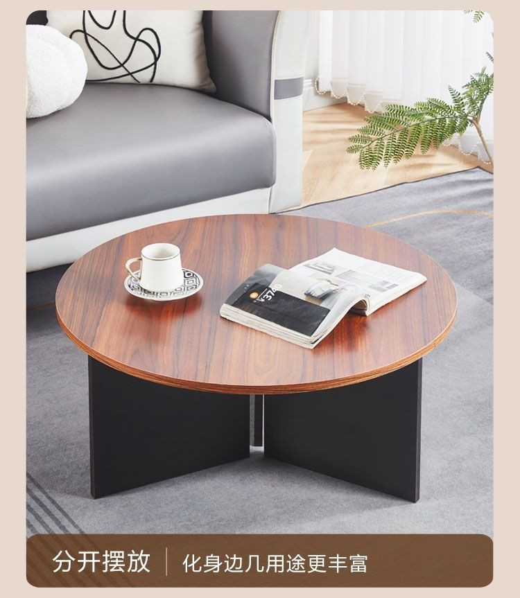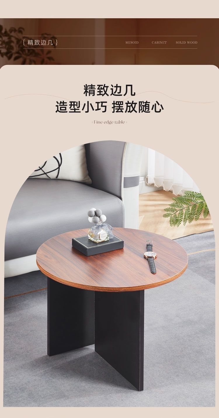 奶油风实木茶几极简家用客厅小户型现代简约高级感圆形可移动边几