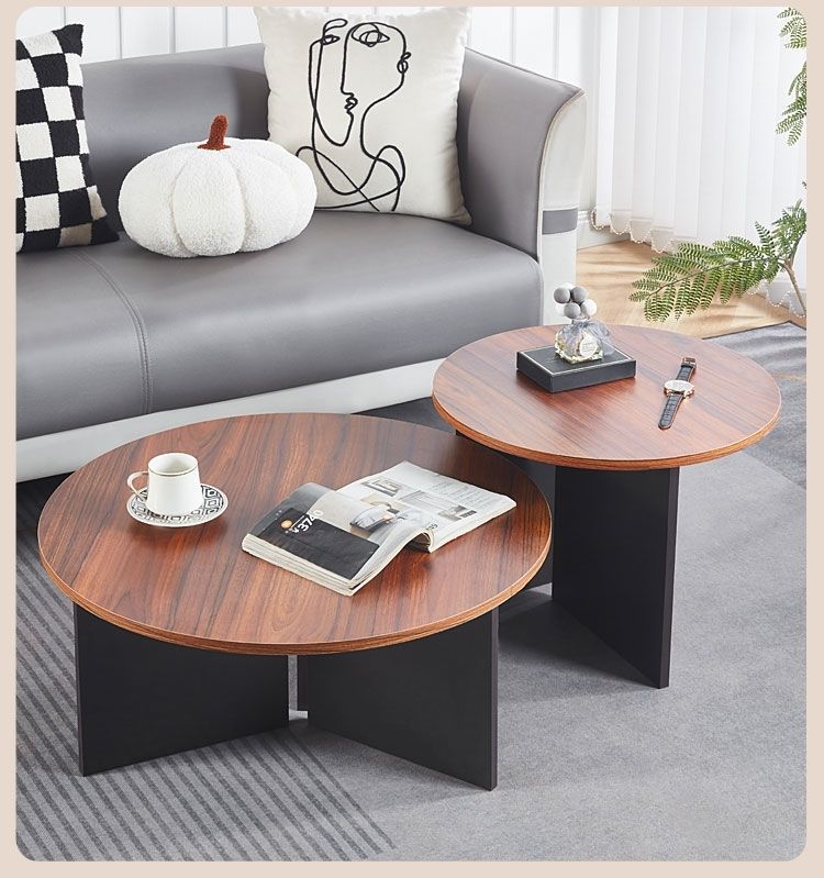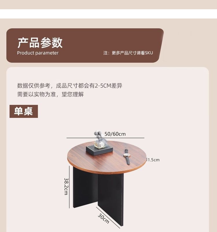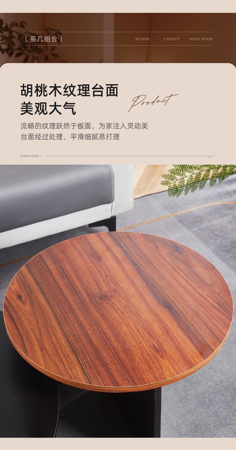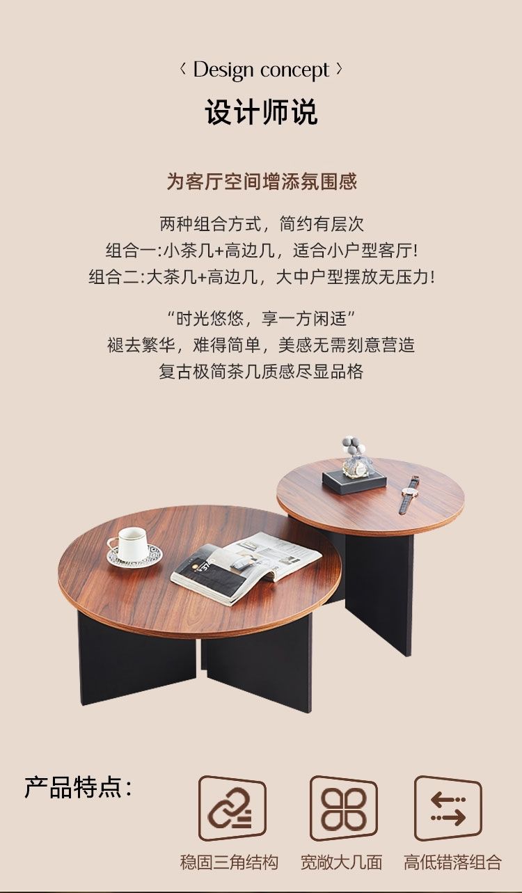 奶油风实木茶几极简家用客厅小户型现代简约高级感圆形可移动边几