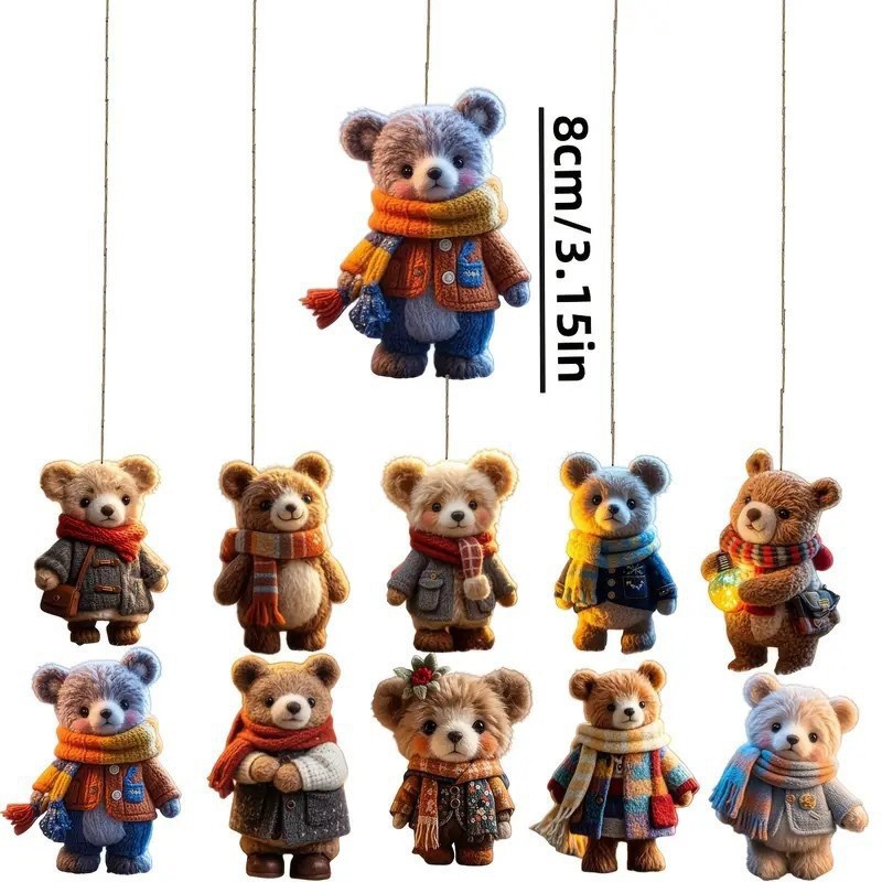 跨境新品可爱毛衣小熊2d平面木质装饰挂件圣诞树装饰节日派对装饰