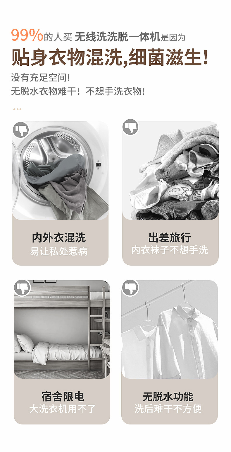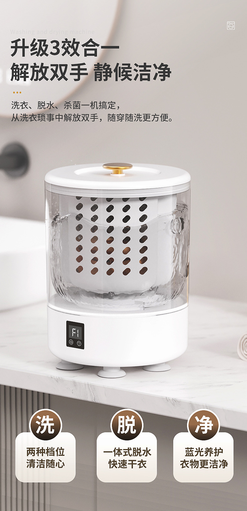 全自动 洗脱一体 迷你洗衣机 内衣裤清洗 蓝光杀菌 仿手洗