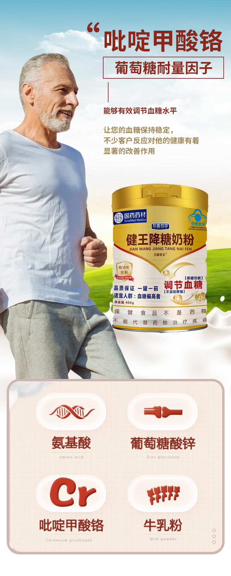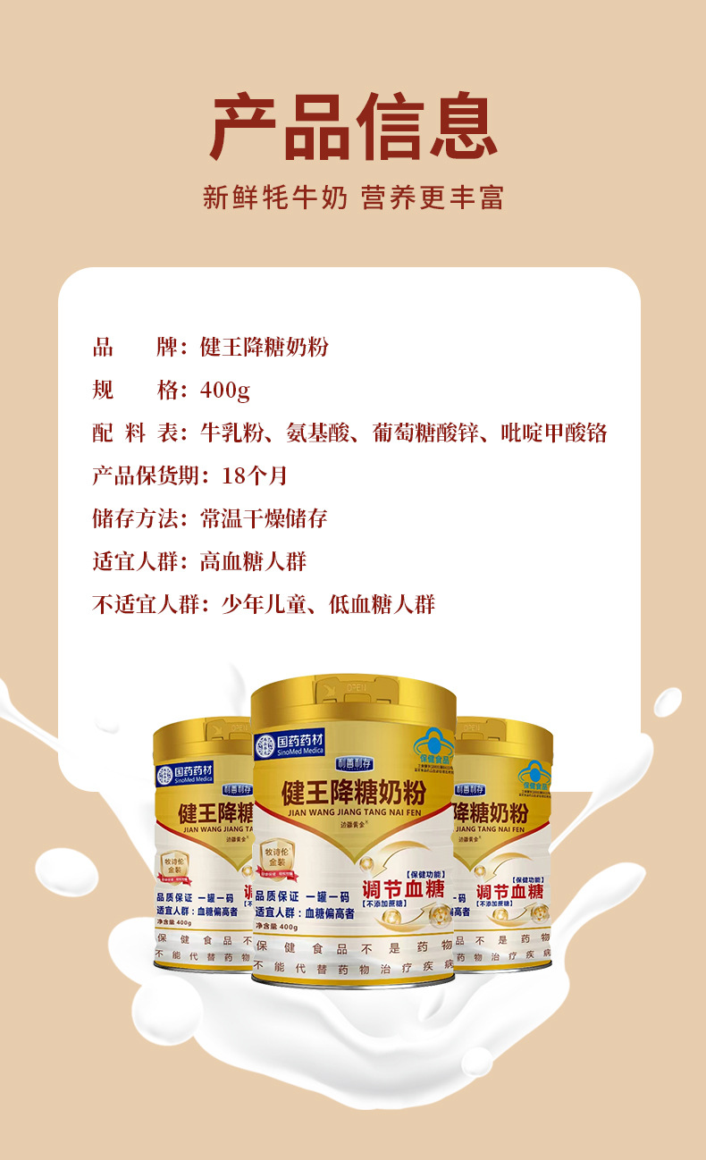 招商代理批发健王降糖奶粉蓝帽中老年高血糖人调节血糖轻松控糖