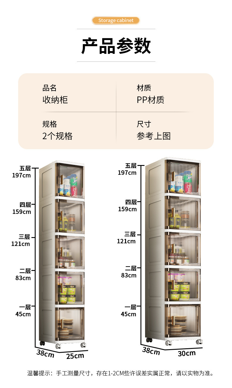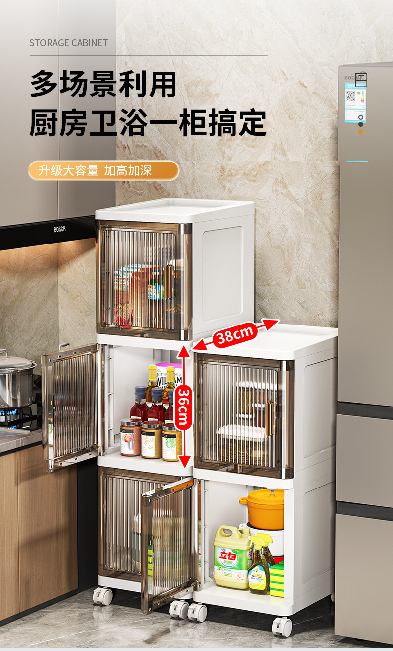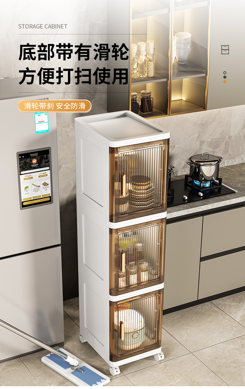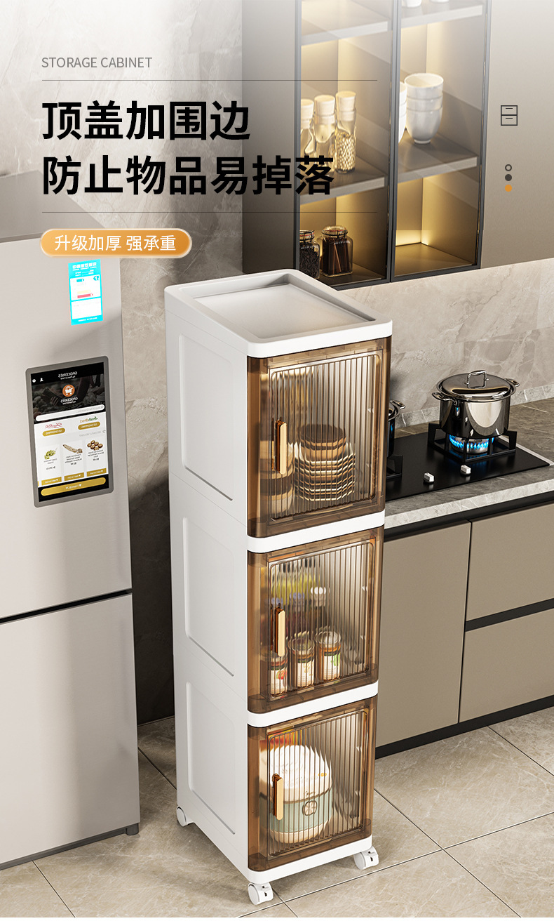 25-35宽开门夹缝收纳柜 家用储物置物架杂物收纳箱透明塑料窄缝柜