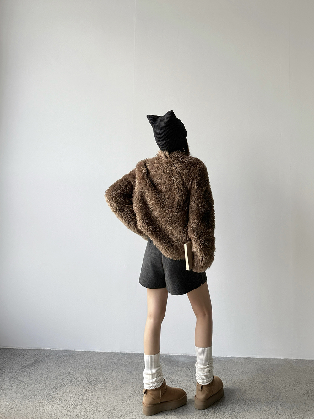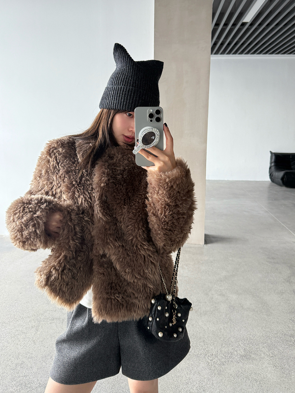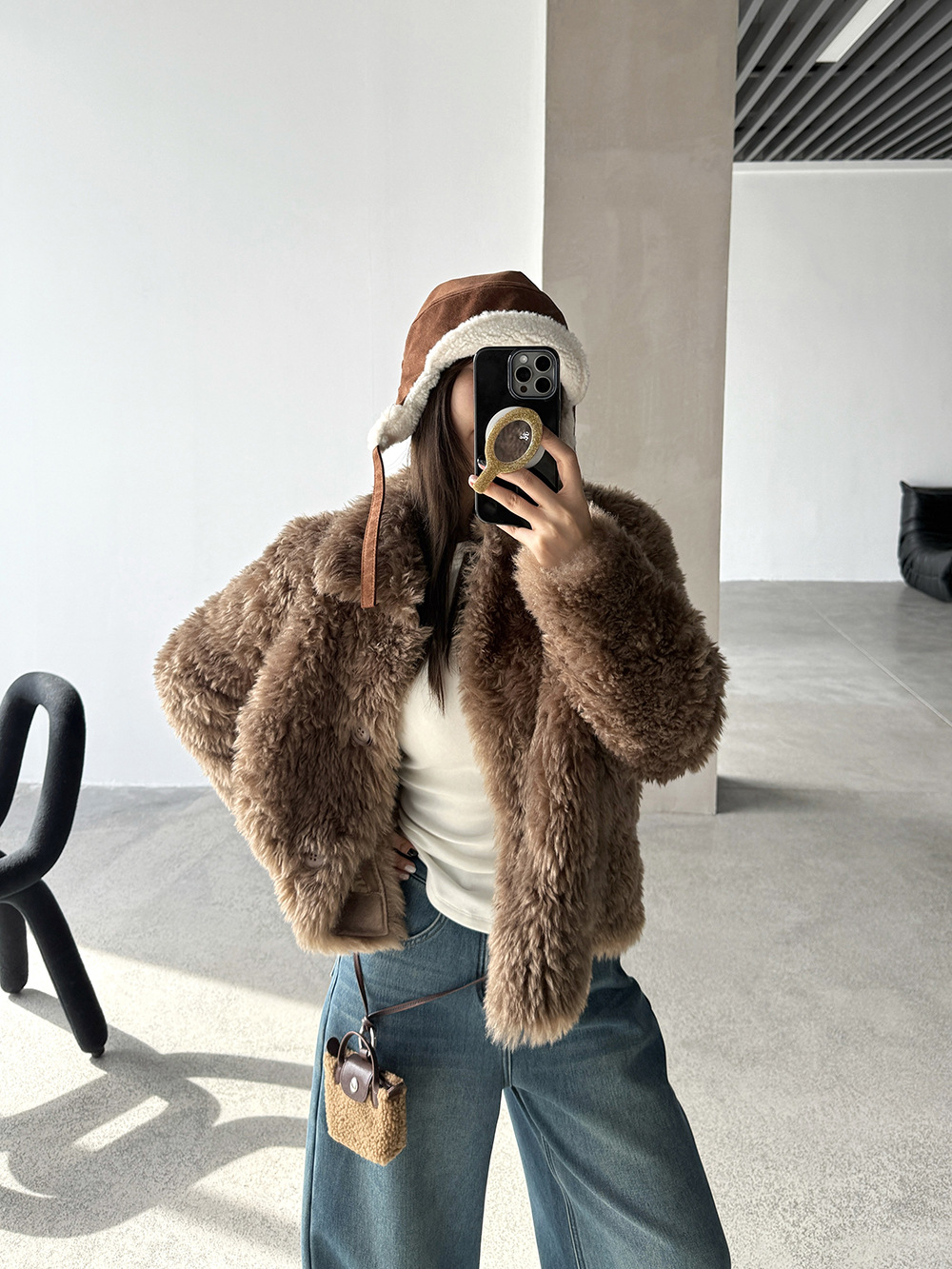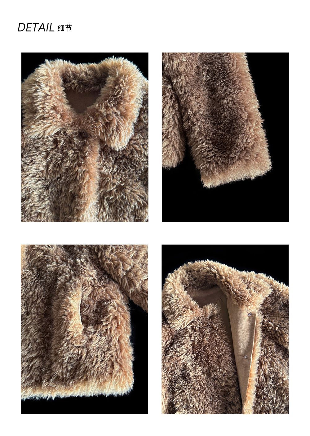 【王琪芝】软糯环保皮草仿皮毛一体外套女冬宽松毛毛保暖上衣5117