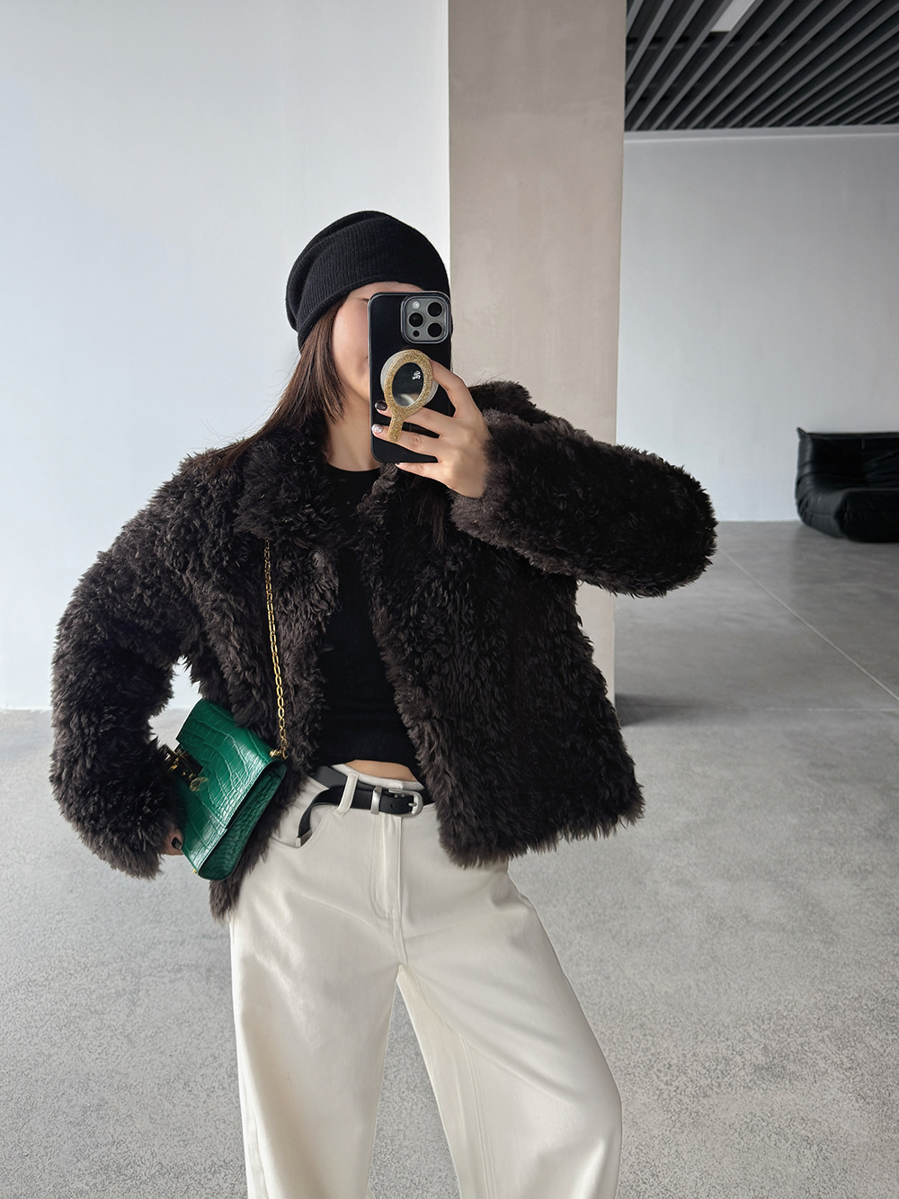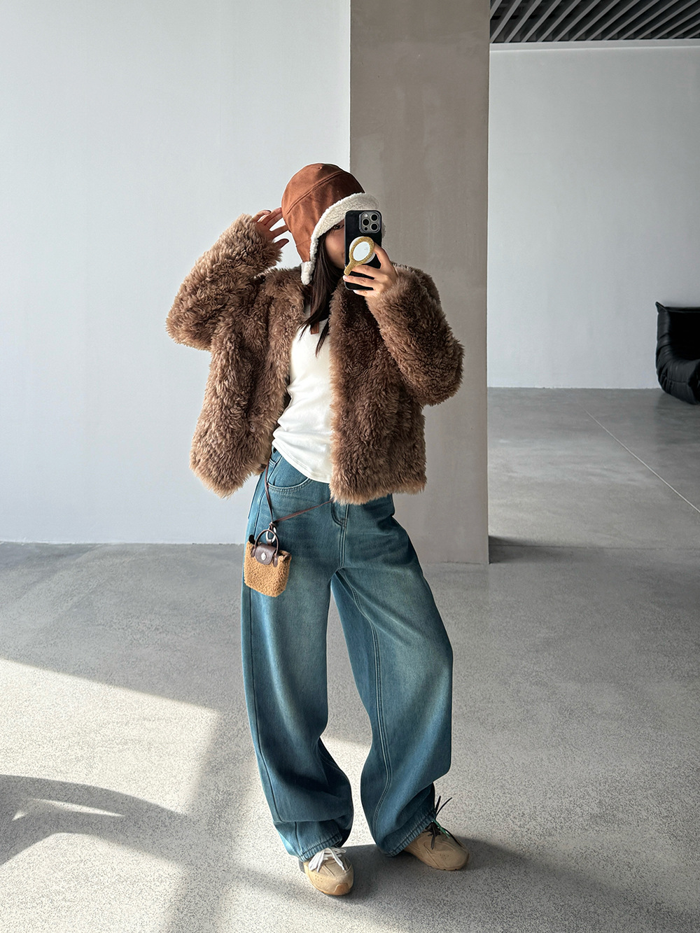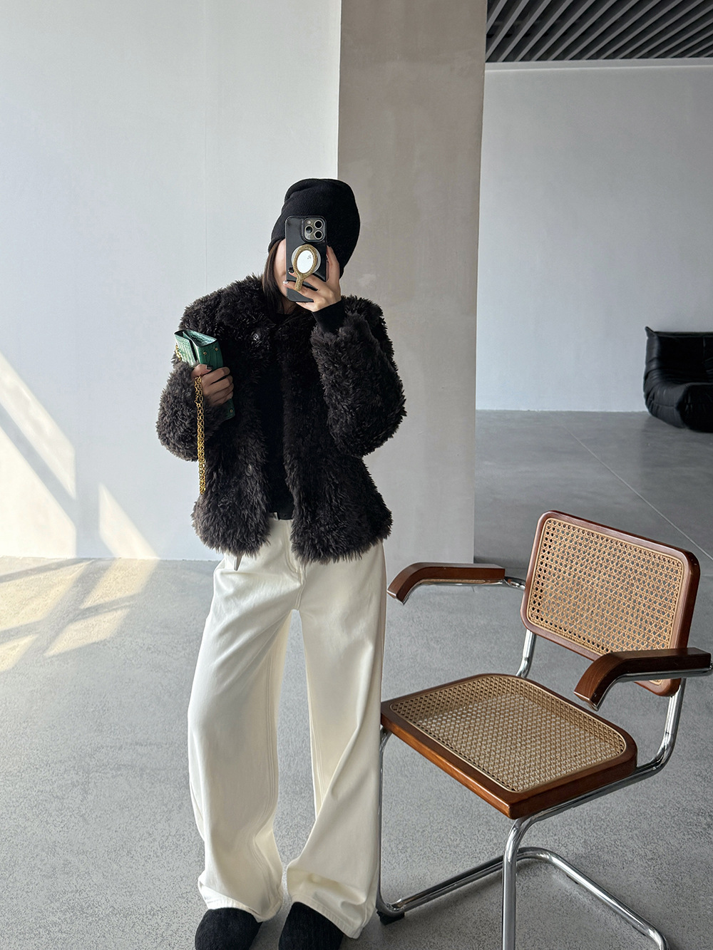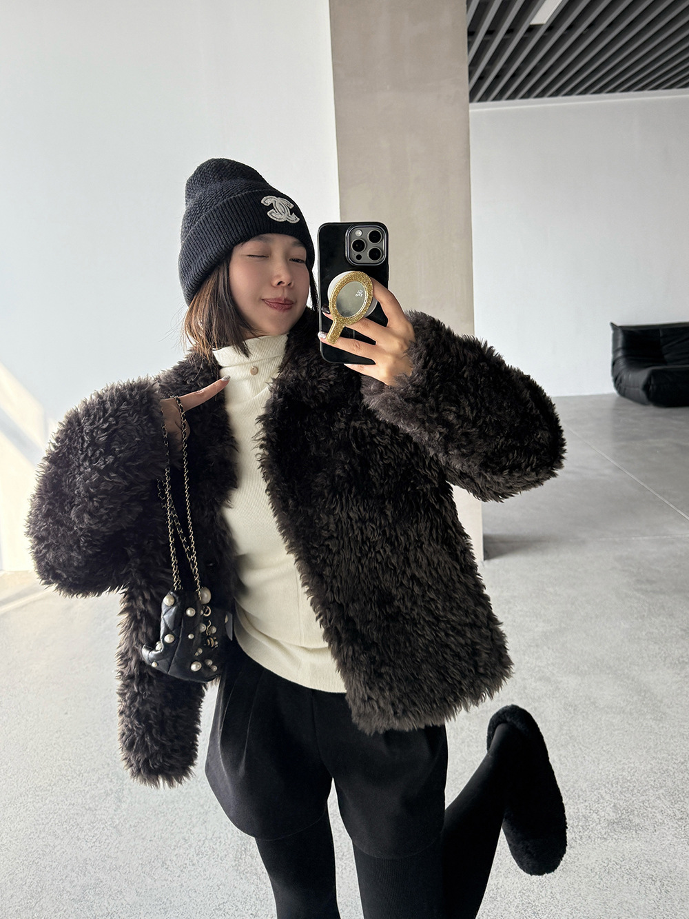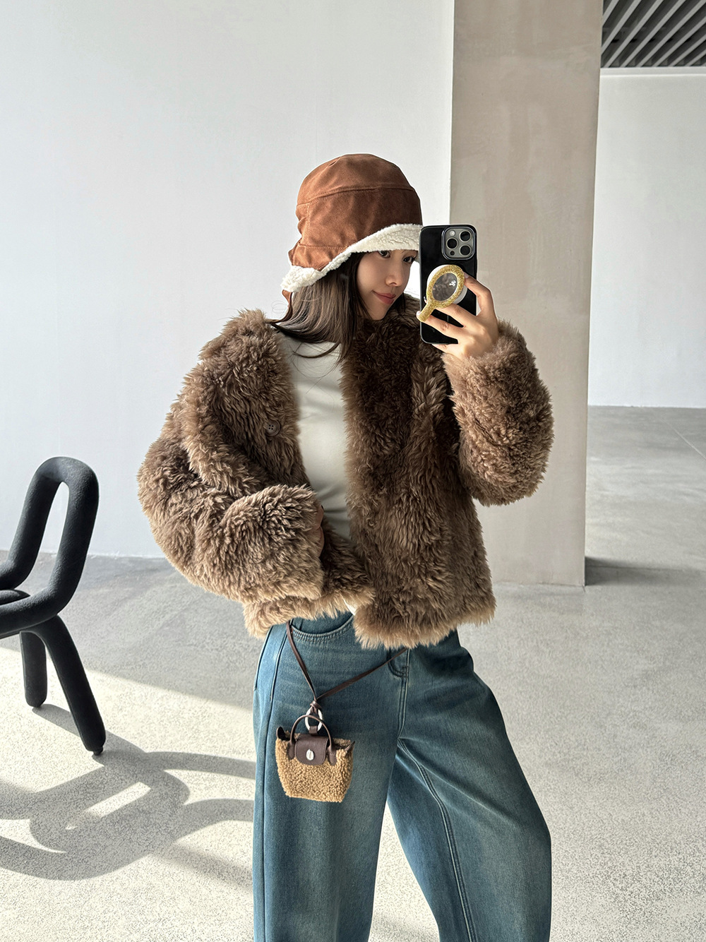 【王琪芝】软糯环保皮草仿皮毛一体外套女冬宽松毛毛保暖上衣5117