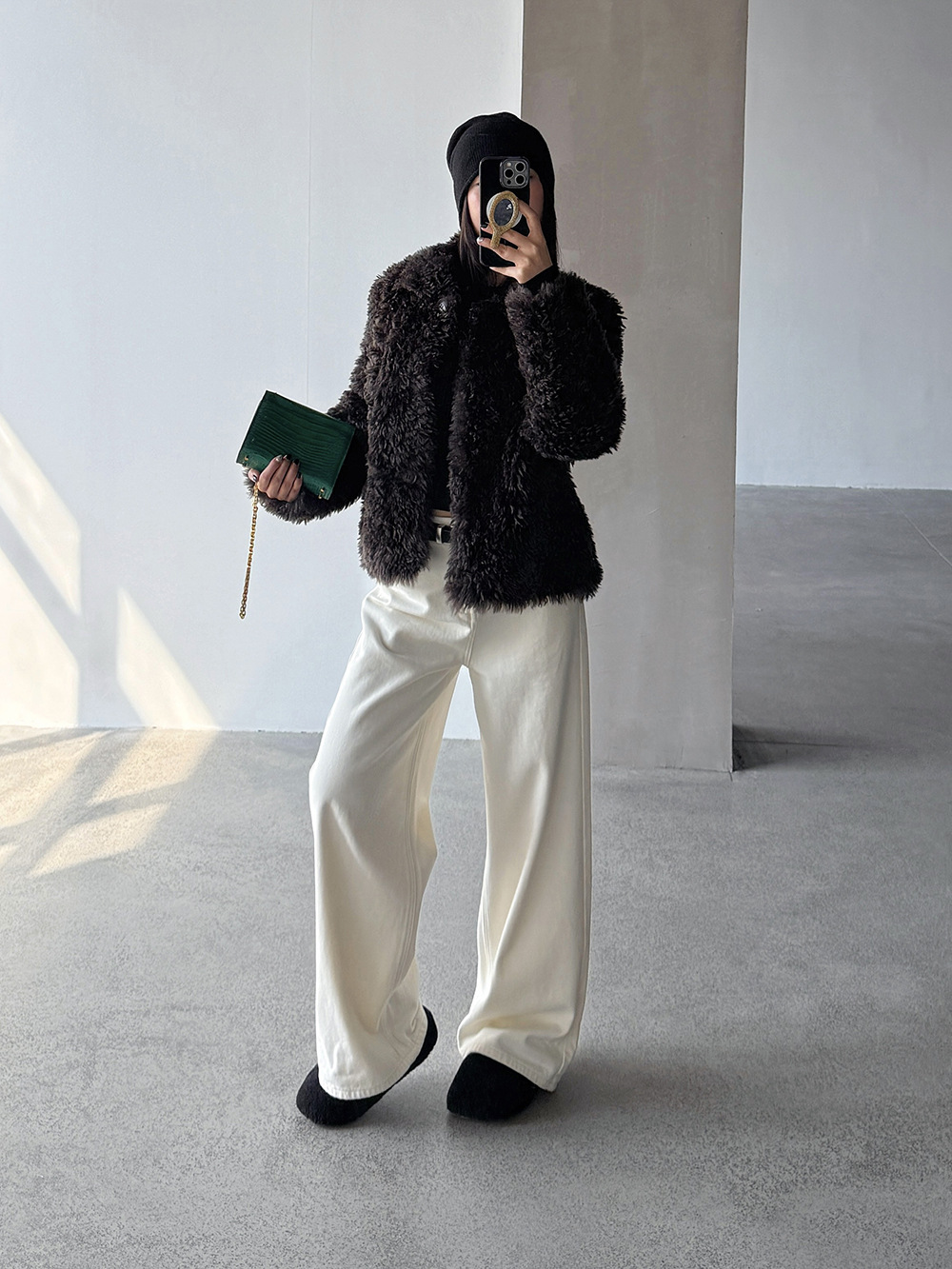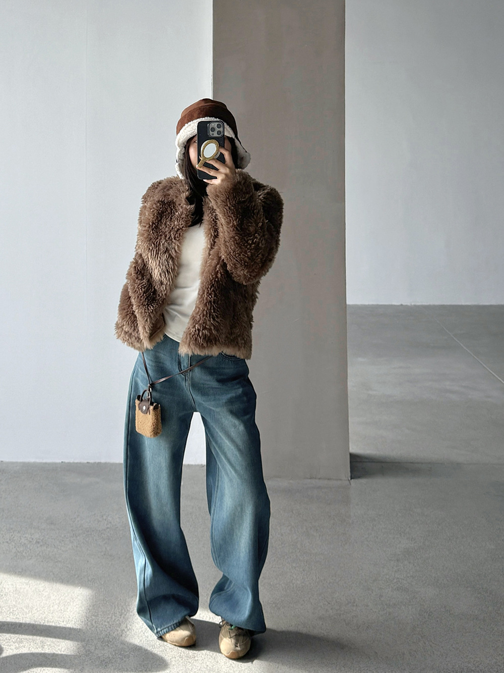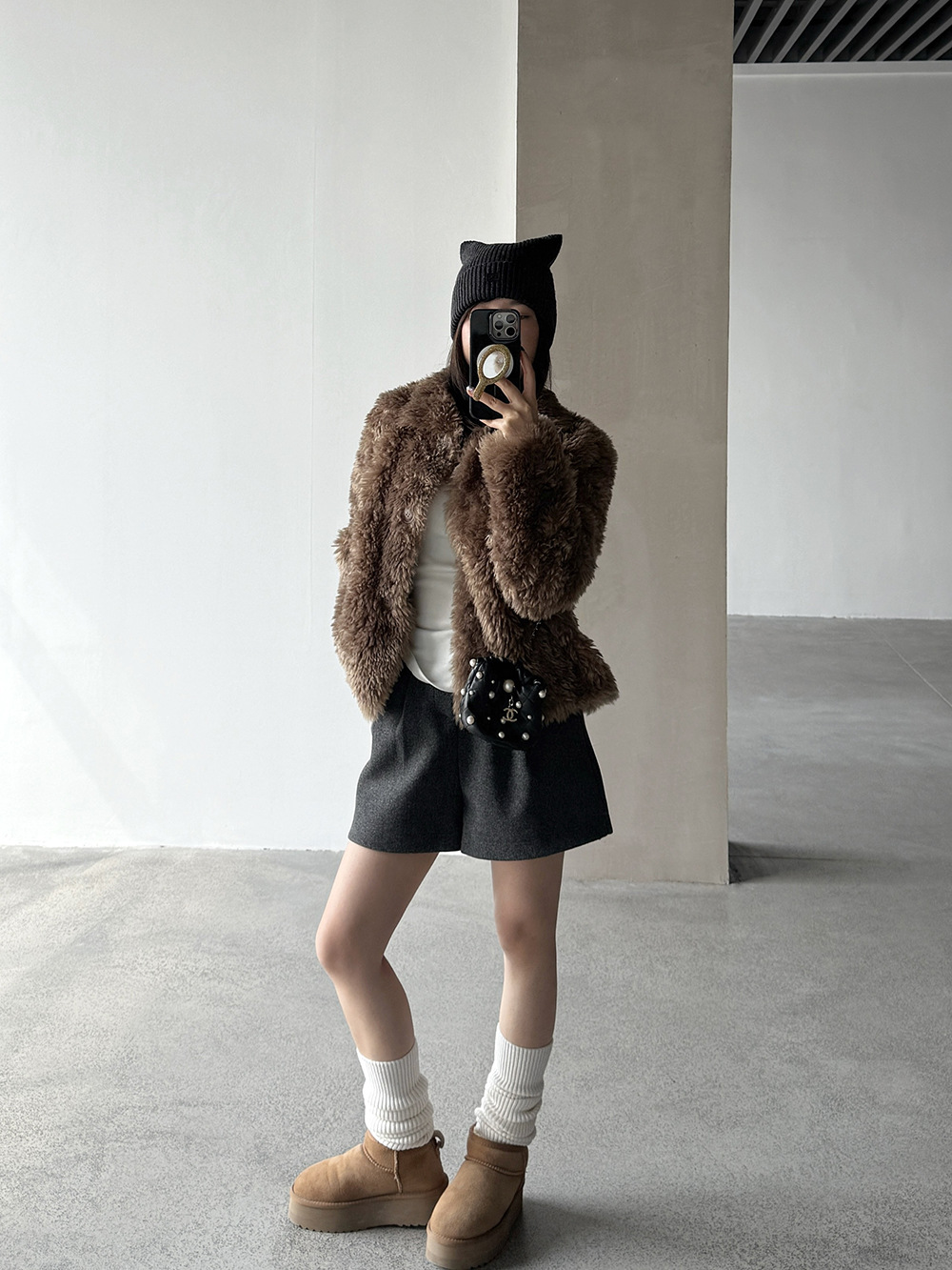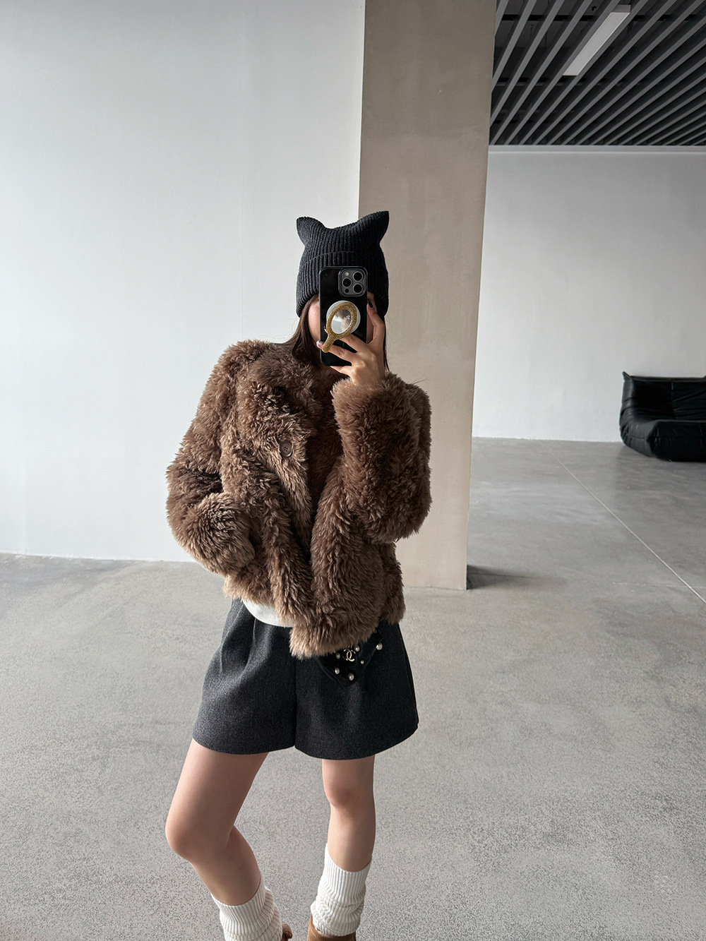 【王琪芝】软糯环保皮草仿皮毛一体外套女冬宽松毛毛保暖上衣5117