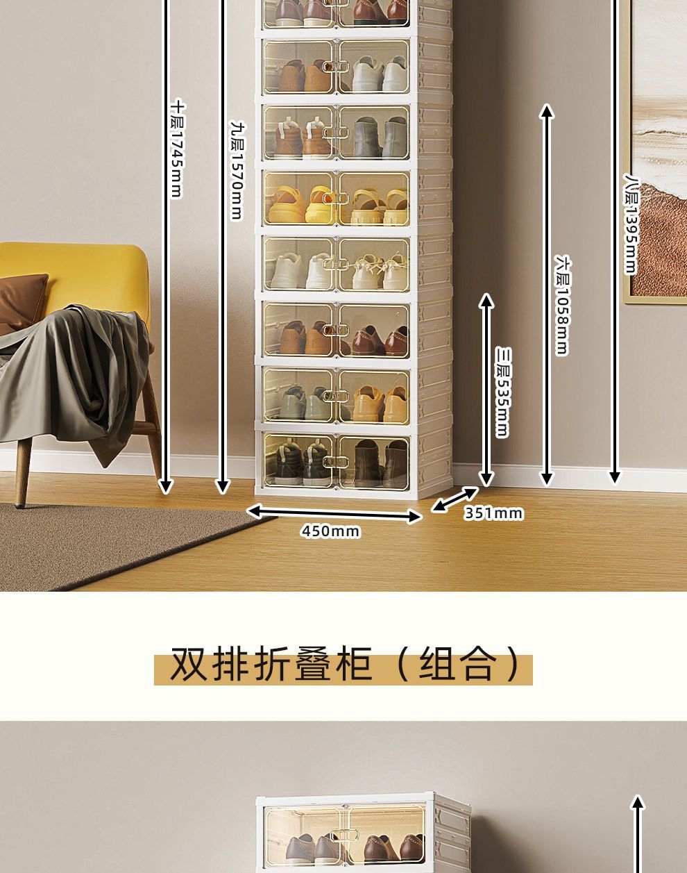 家用入户门鞋柜公寓防尘双开门鞋柜免安装折叠鞋柜多层收纳鞋架