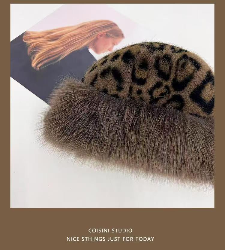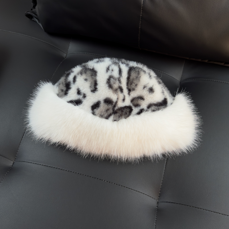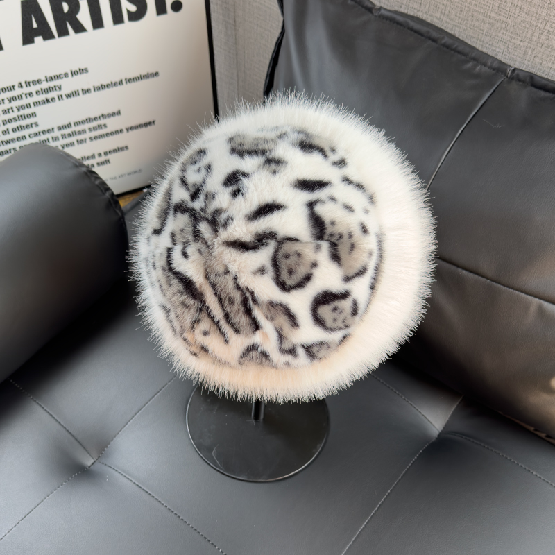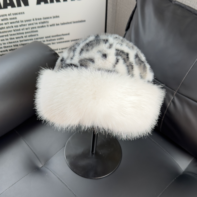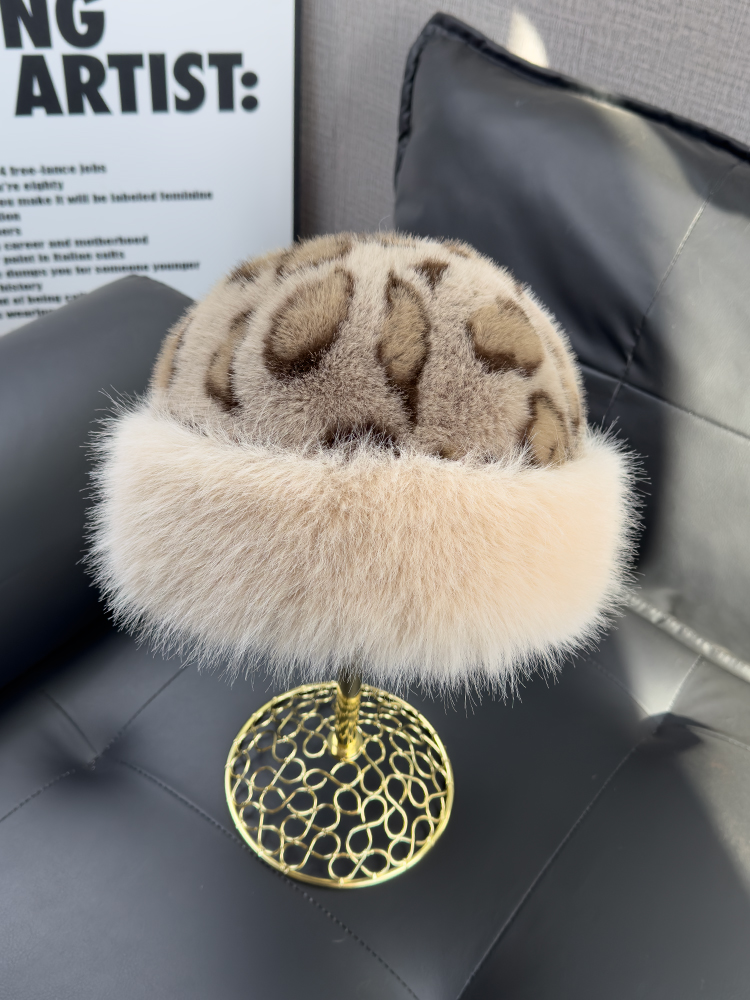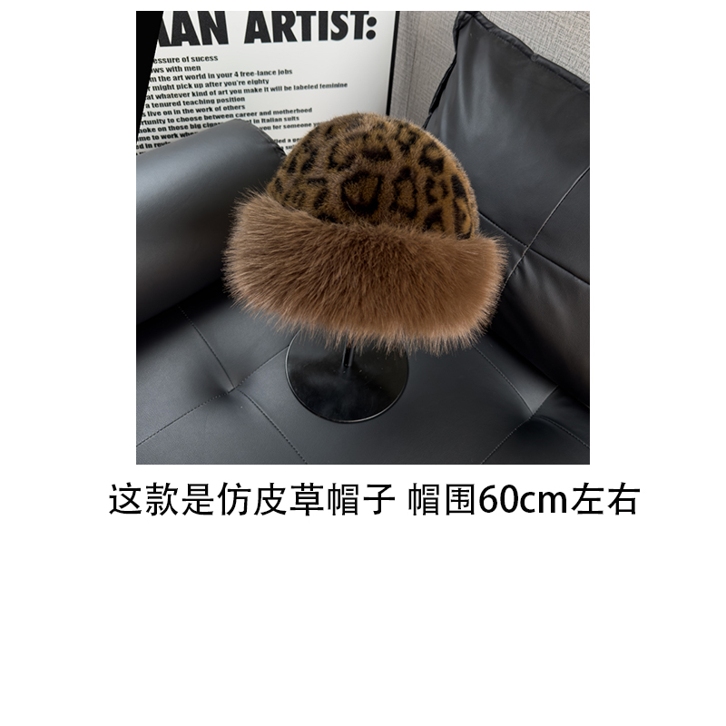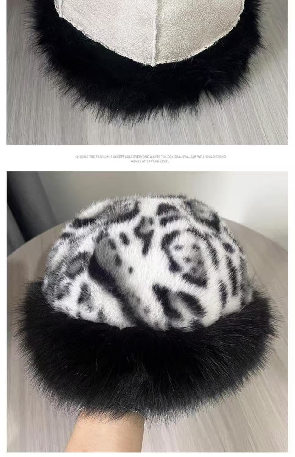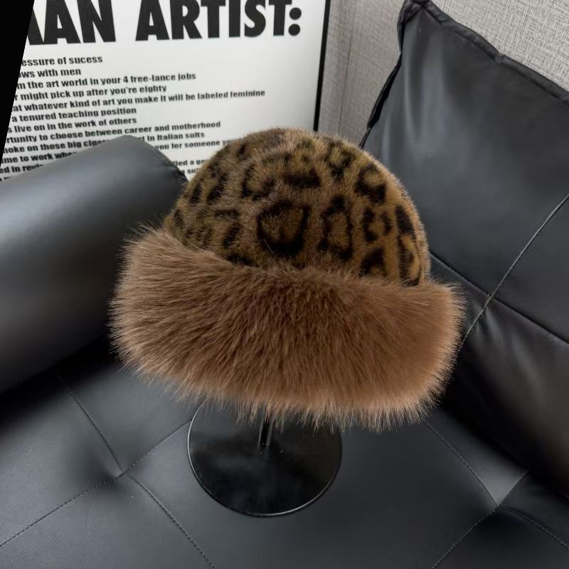 豹纹毛绒蒙古帽子女冬季户外防风保暖渔夫帽显脸小东北防寒地主帽