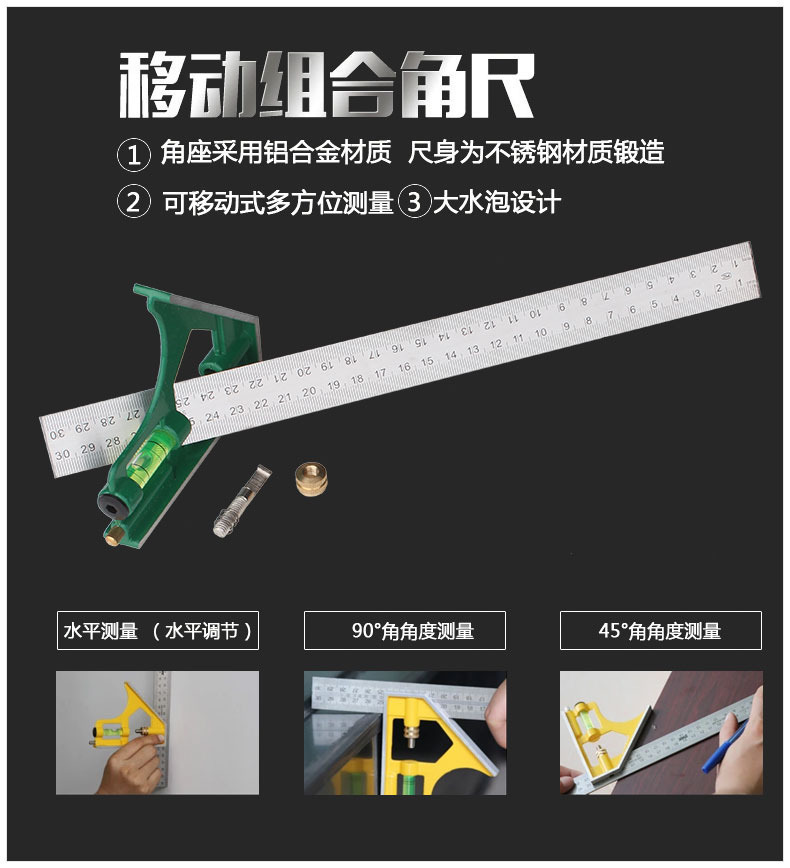 多功能组合角尺测量工具 组合角度尺水平300MM不锈钢工厂直销,批发价,价格:3.35,厂家直销,多功能组合角尺测量工具 组合角度尺水平300MM不锈钢工厂直销,免费拿样。