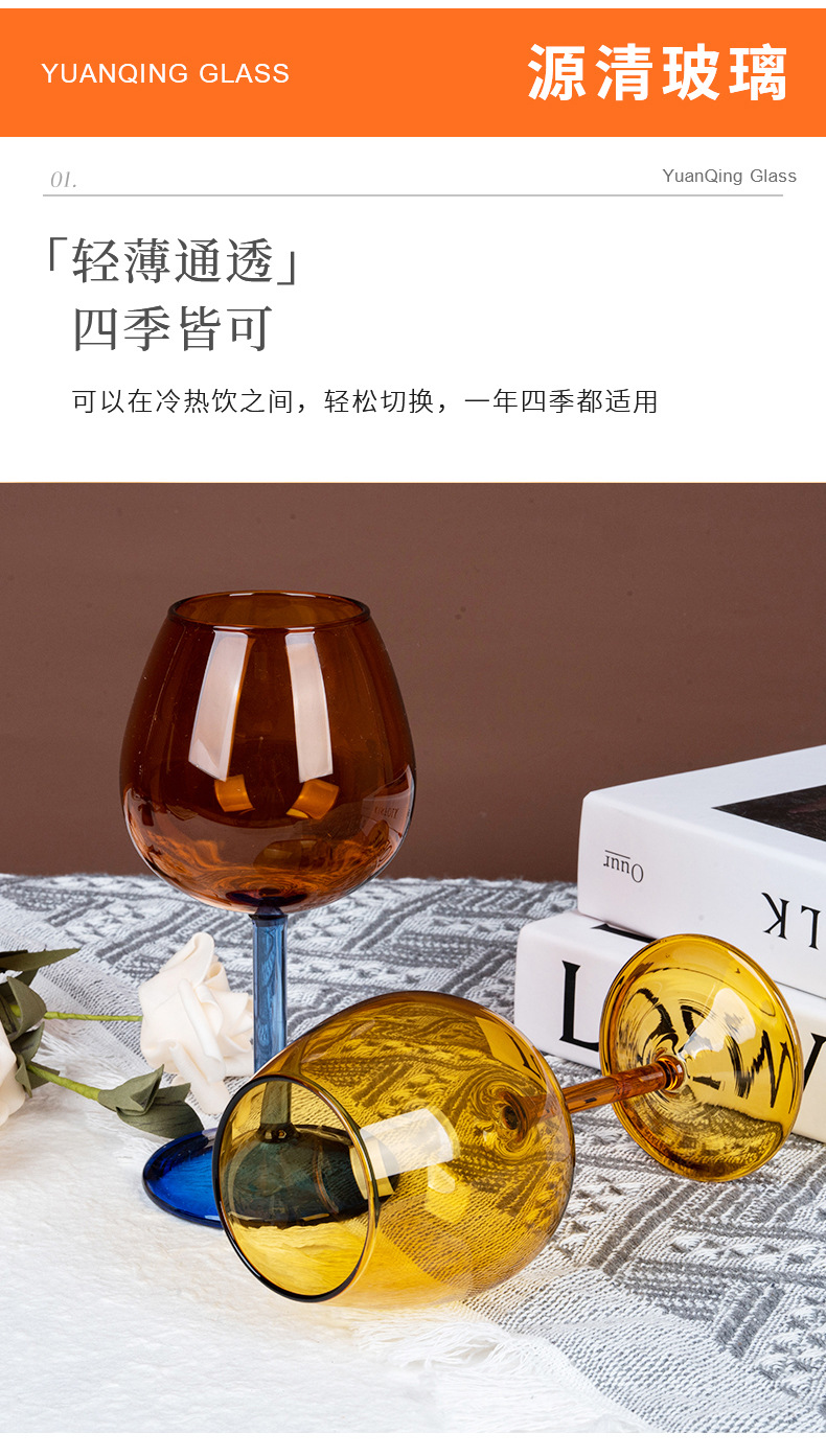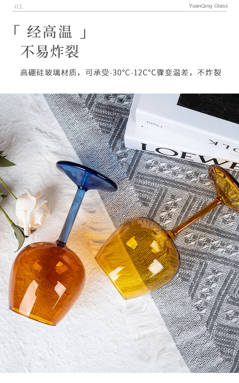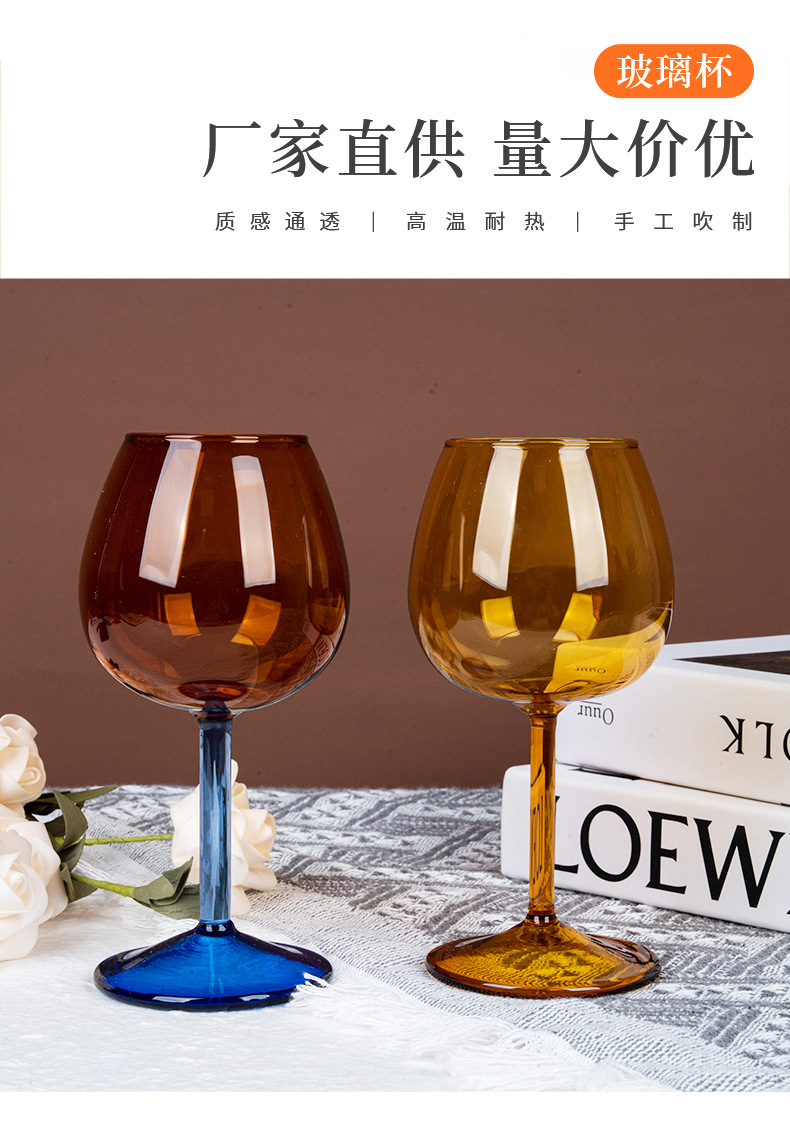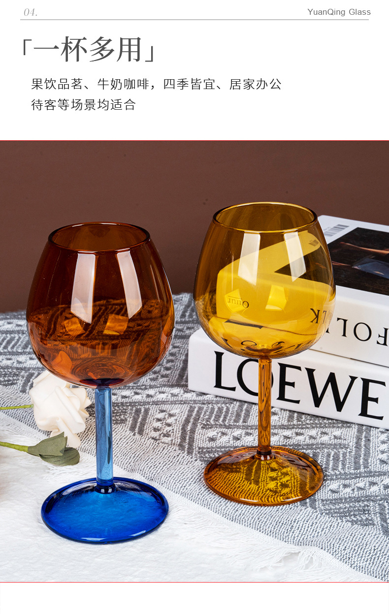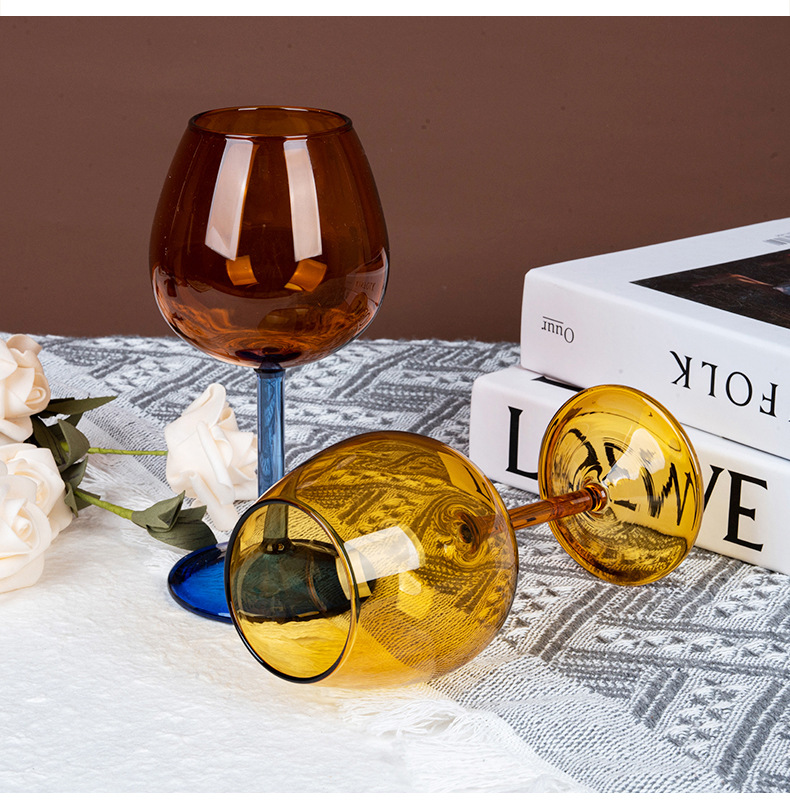 撞色艺术玻璃高脚杯 琥珀蓝调创意酒杯 轻奢家居装饰酒具个性摆件