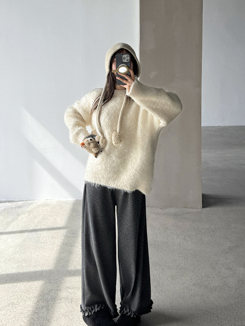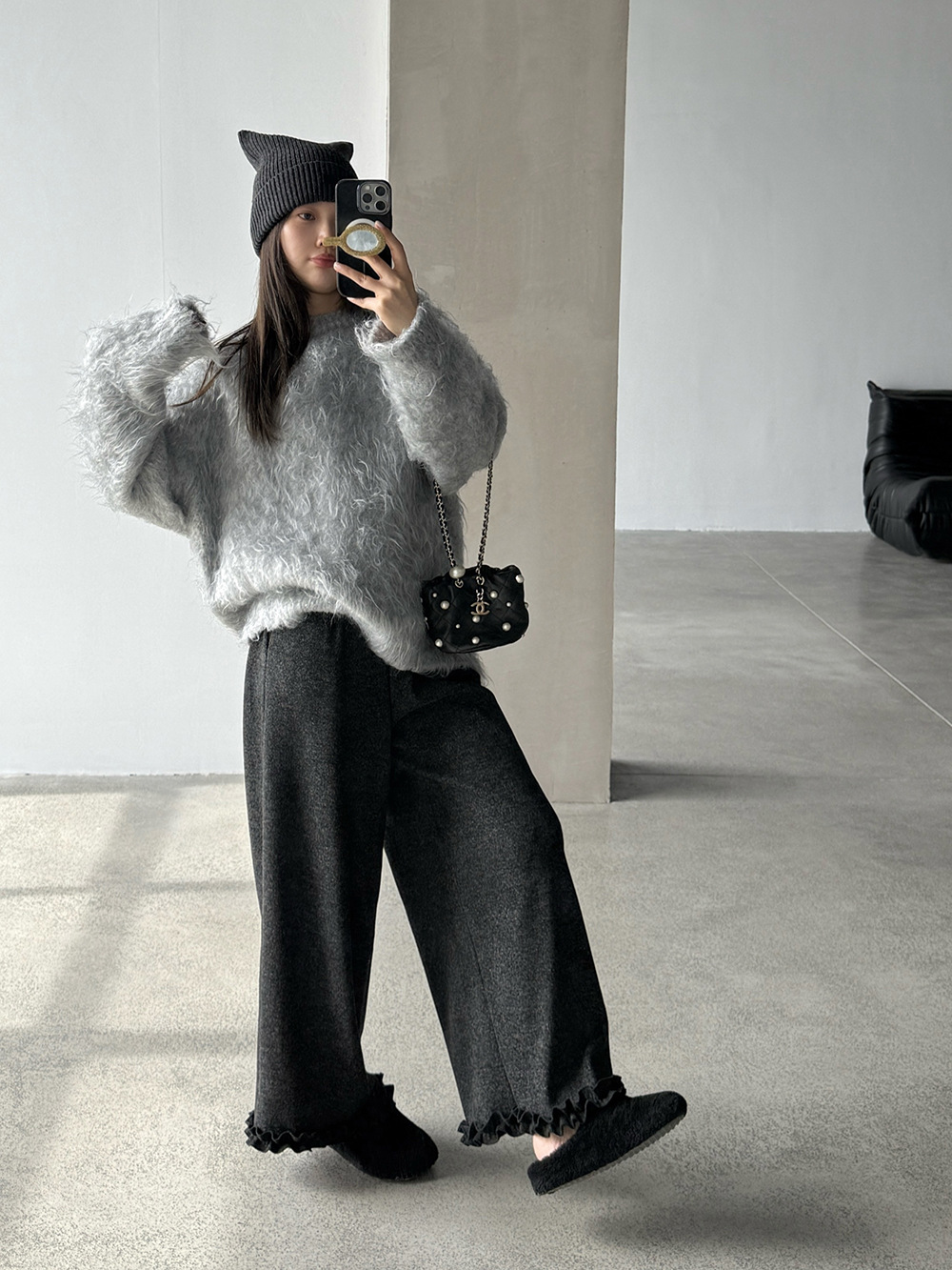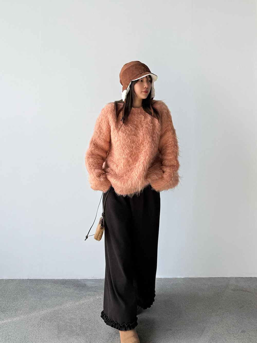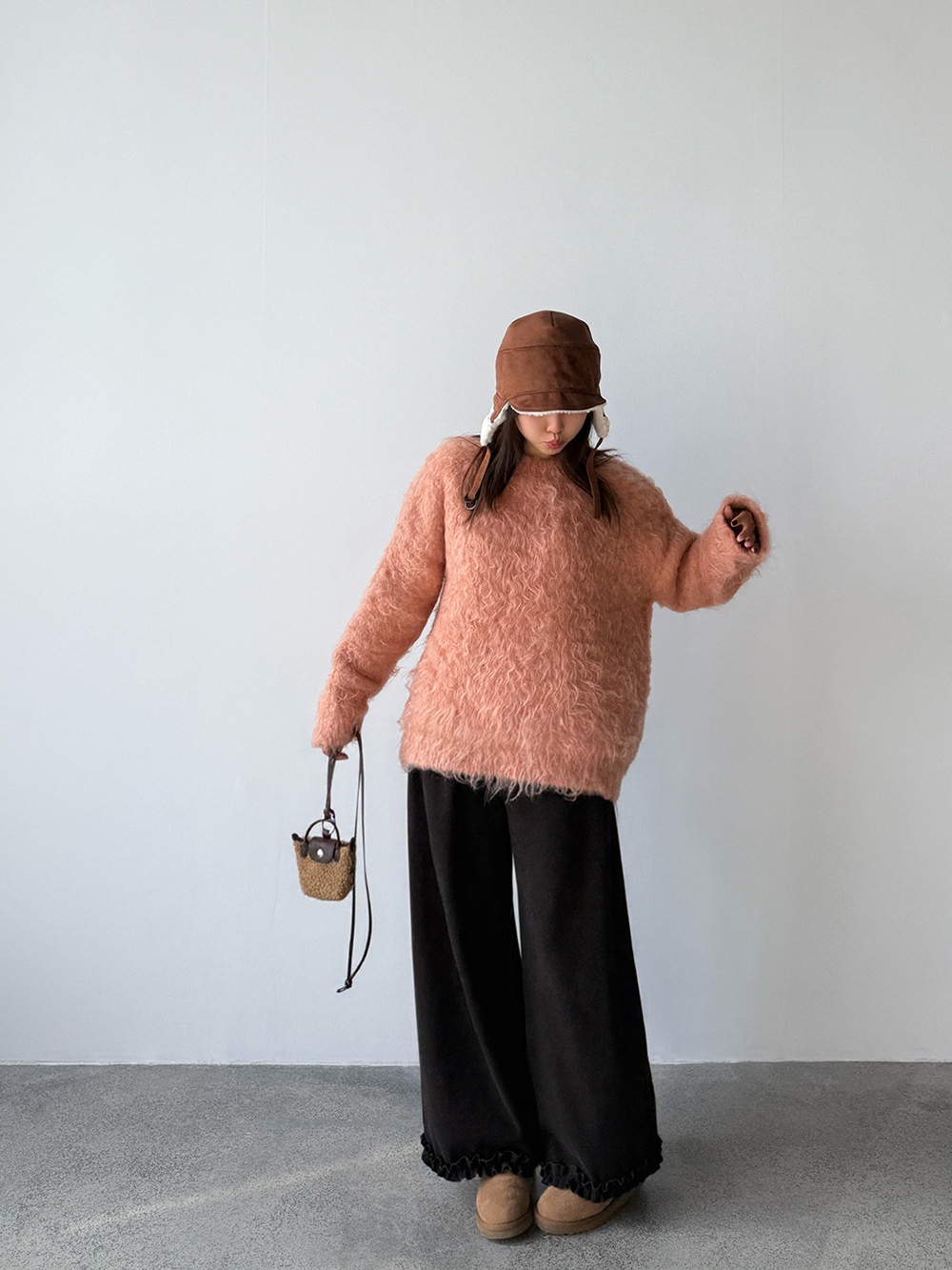 【王琪芝】九分裤木耳边休闲裤加绒垂感宽松显瘦阔腿直筒裤WQ091