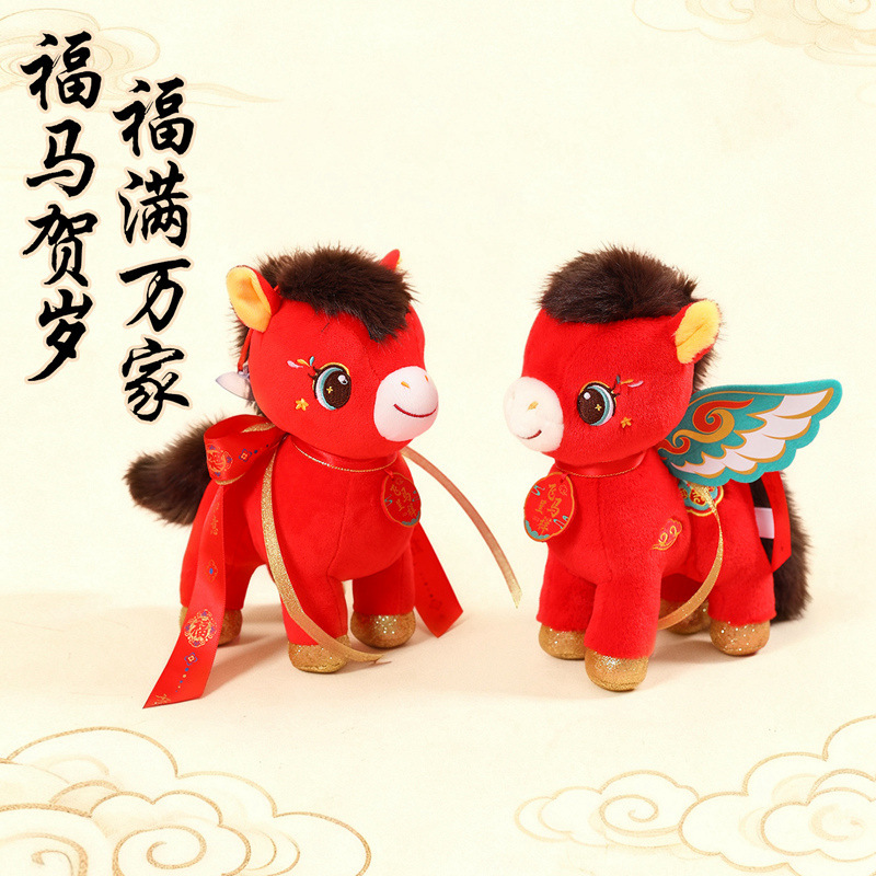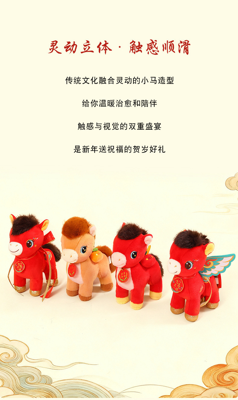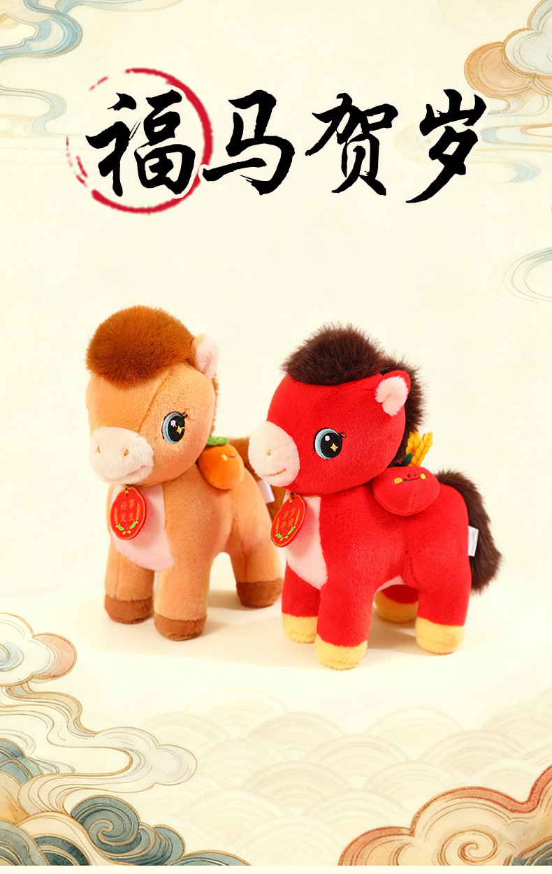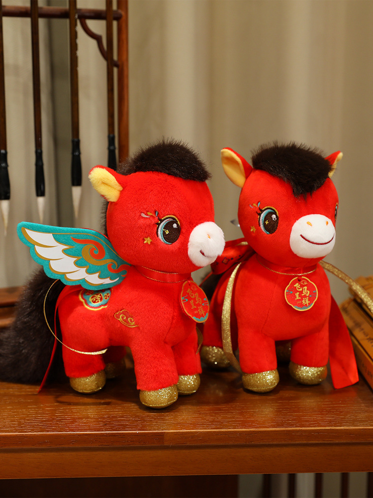 吉祥马载而归生肖马毛绒玩具公仔马年吉祥物小马挂件年会装饰礼品