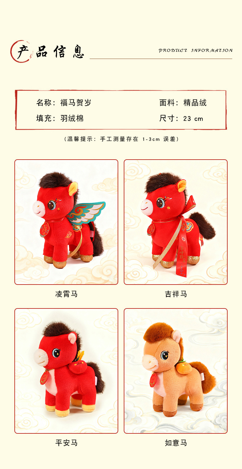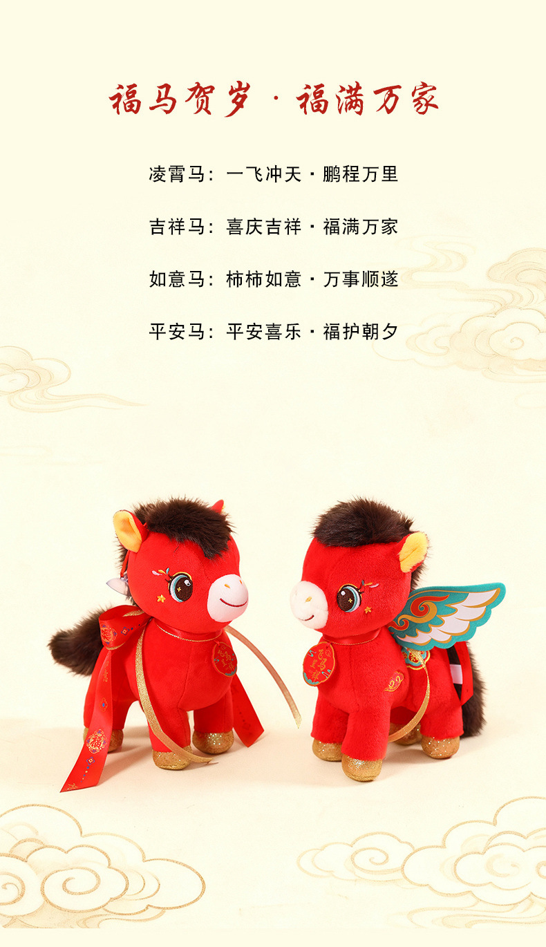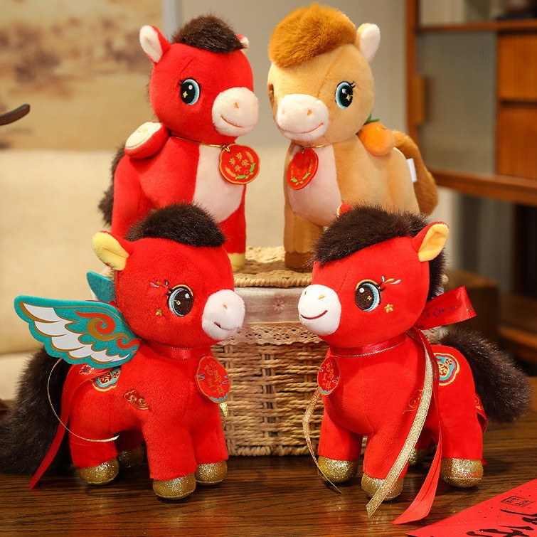 吉祥马载而归生肖马毛绒玩具公仔马年吉祥物小马挂件年会装饰礼品