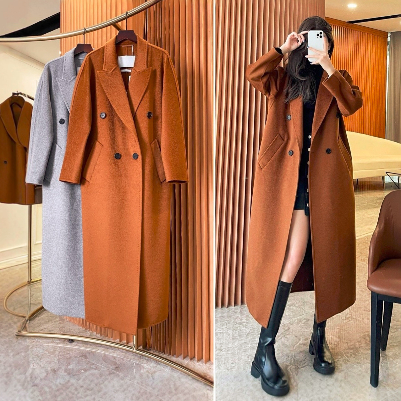 101801 MAX家 labbro羊绒羊毛水波纹双排扣 manuela大衣 泰迪熊