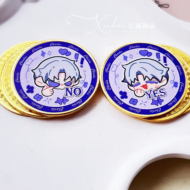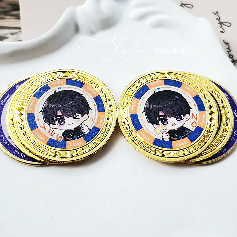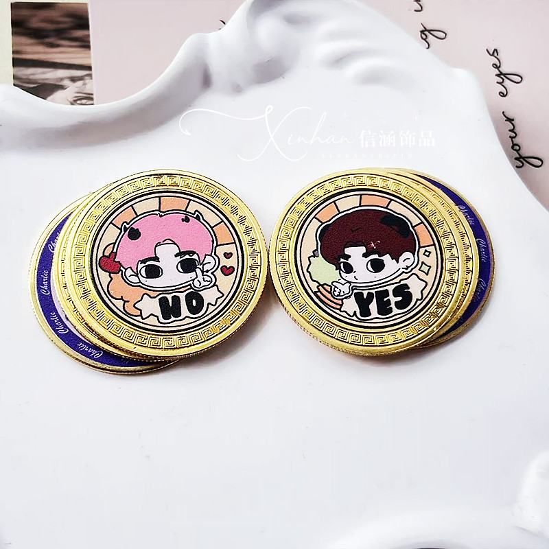 跨境爆款彩印物料4cm金属漫展决策币工厂定制彩色纪念币投币收藏