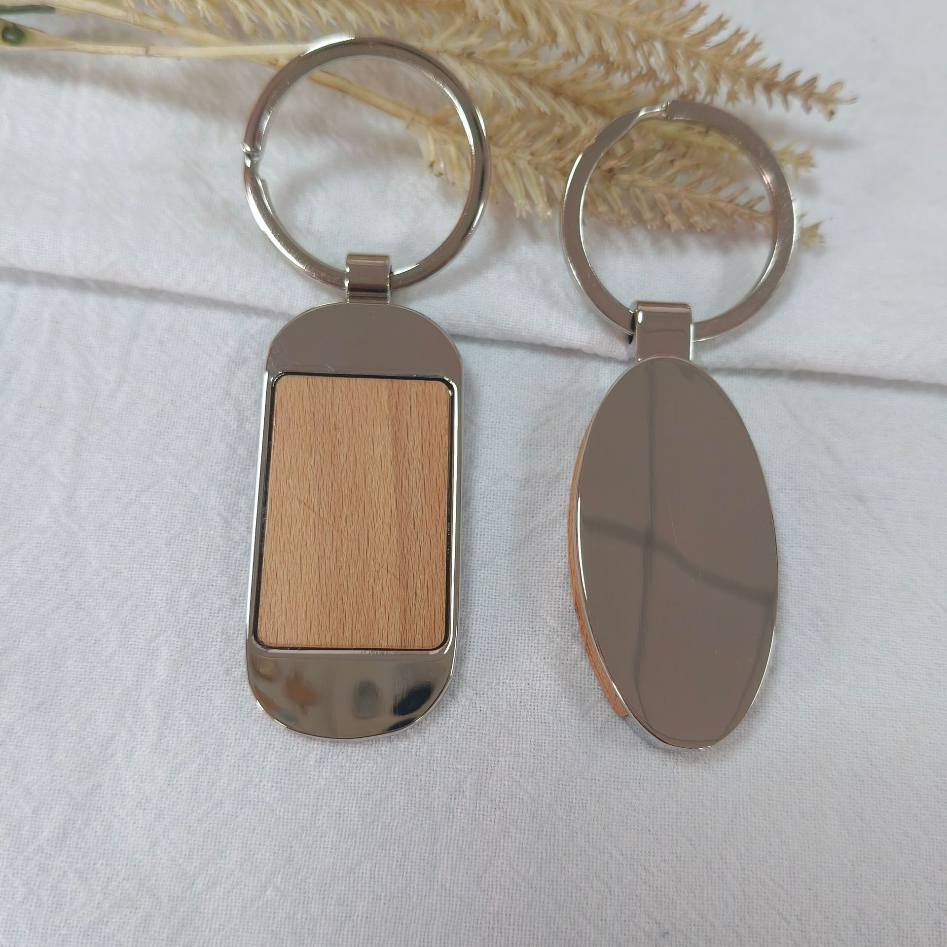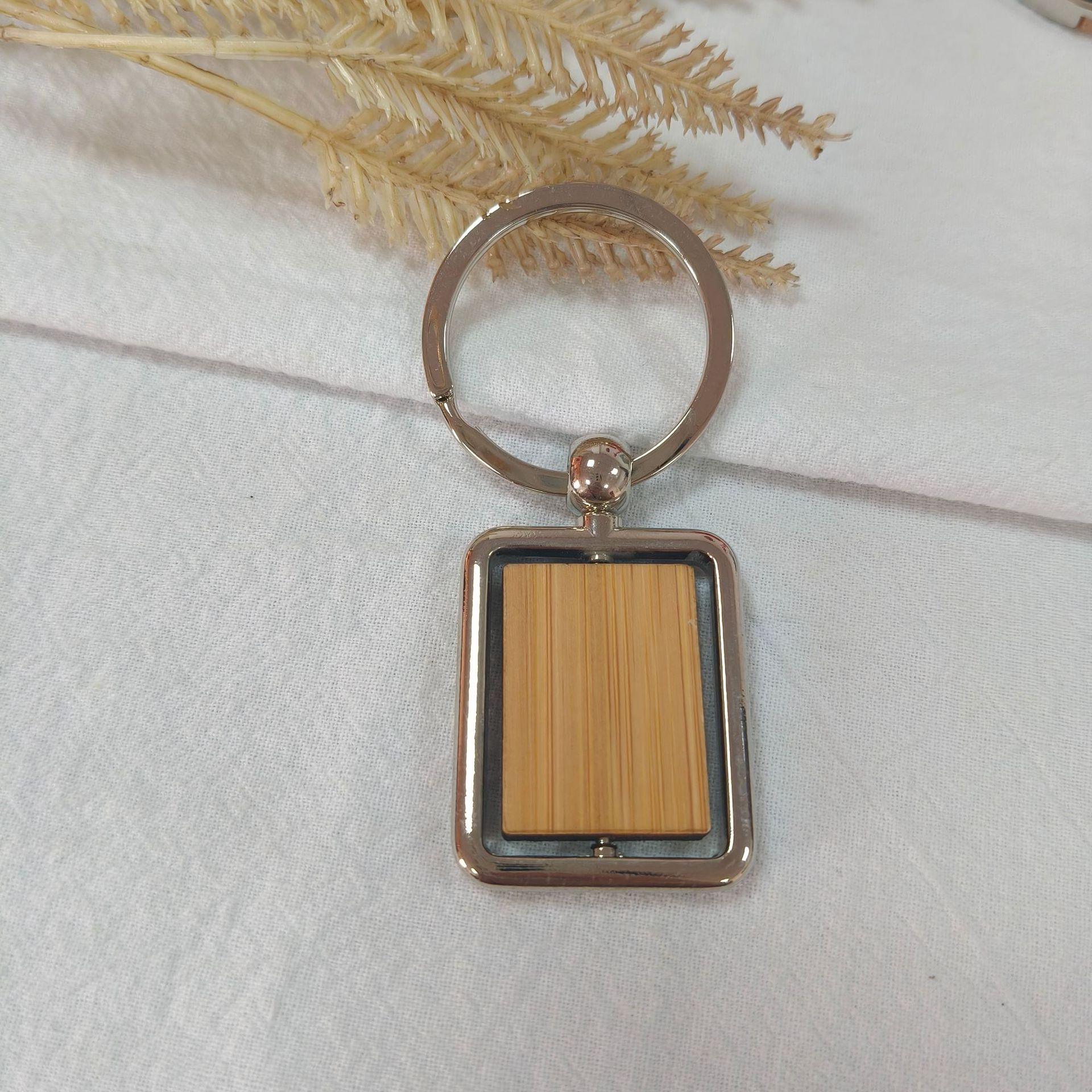 跨境创意金属木头钥匙扣可激光刻字小礼品 现货毛竹片榉木钥匙扣