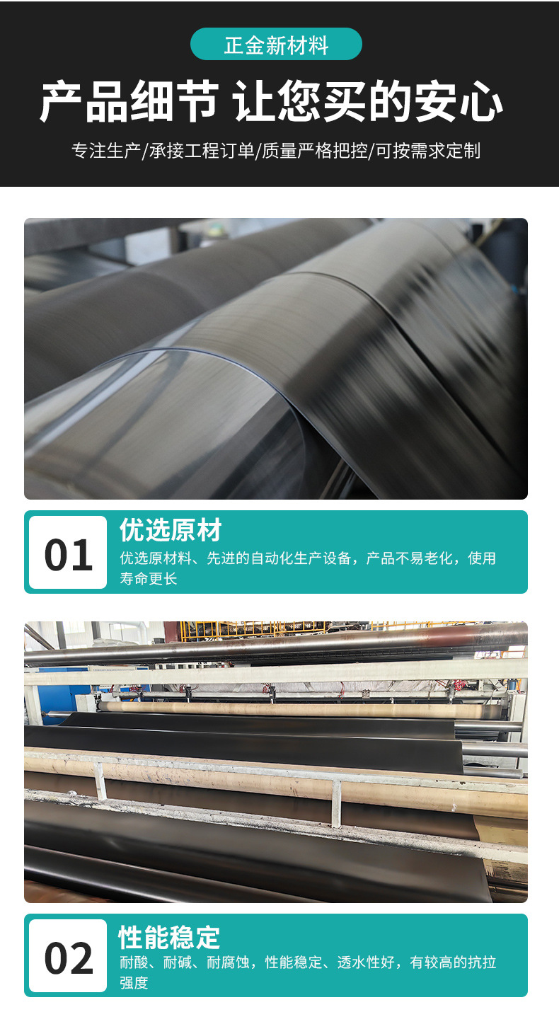 HDPE土工膜人工湖河道水库蓄水池防渗膜沼气池黑膜高密复合土工膜