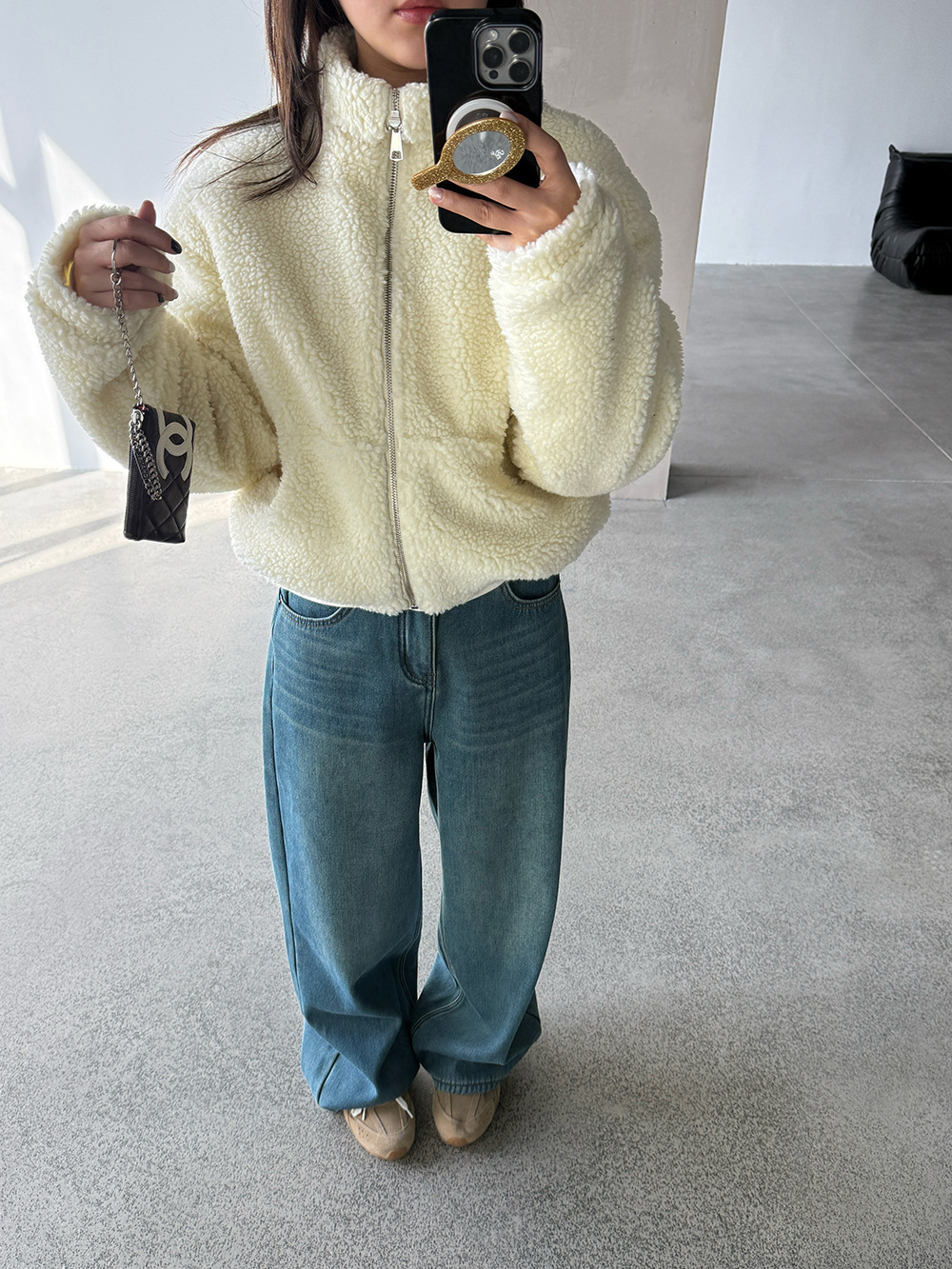 【王琪芝】复古宽松阔腿牛仔裤女显瘦高腰加绒水洗拖地长裤WQ093