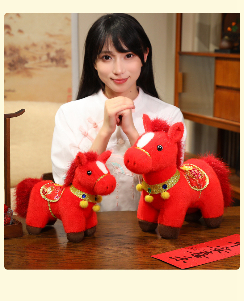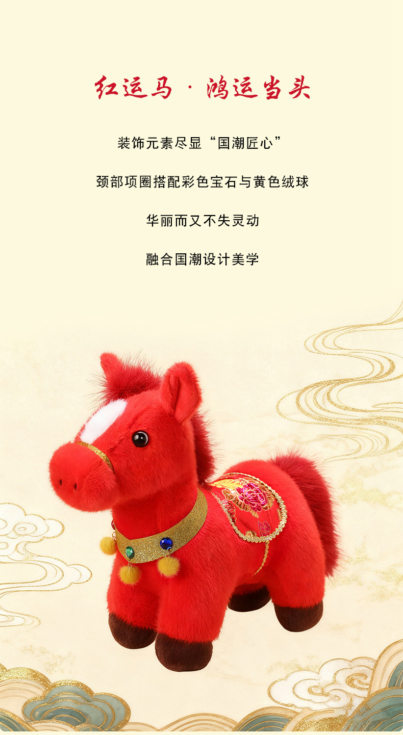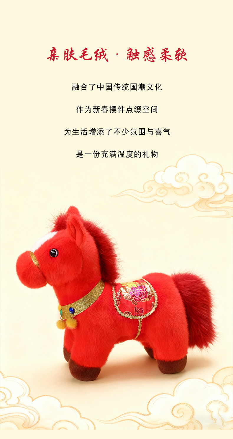 2026年马年吉祥物金貂福牌马毛绒玩具布娃娃小马摆件玩偶送礼品