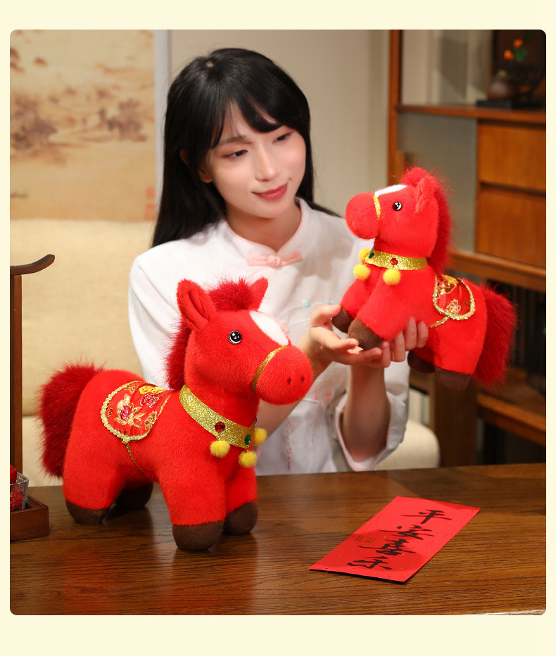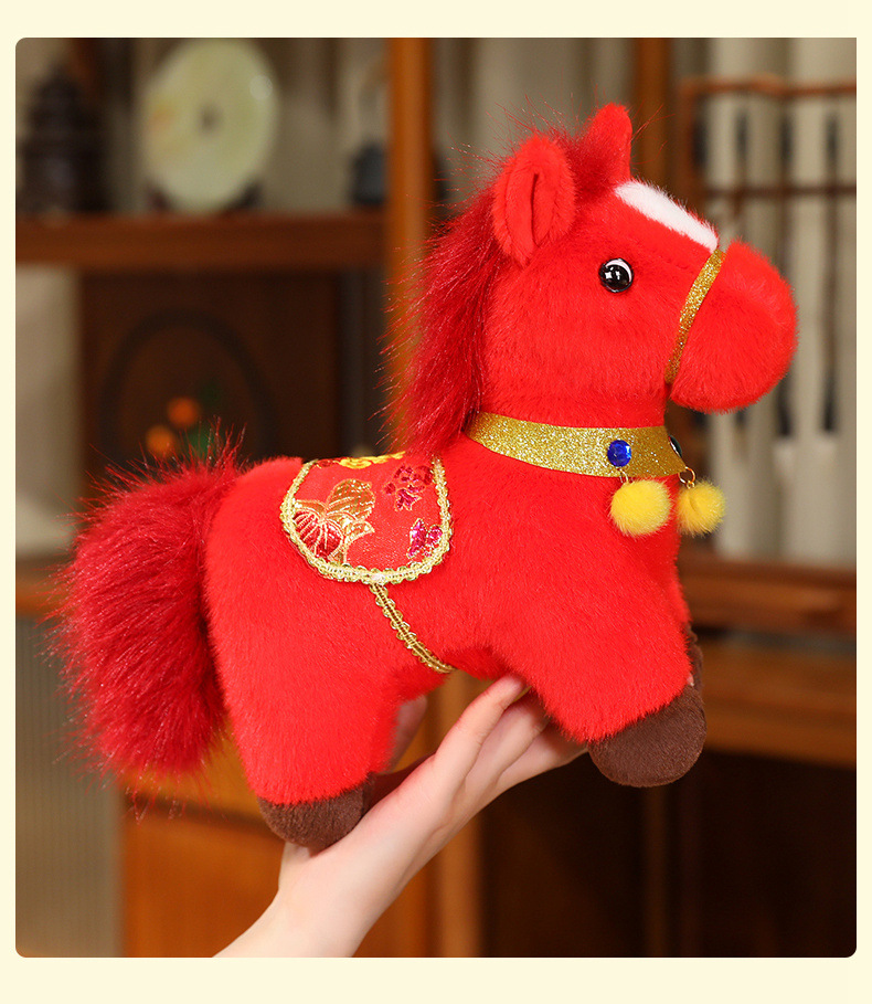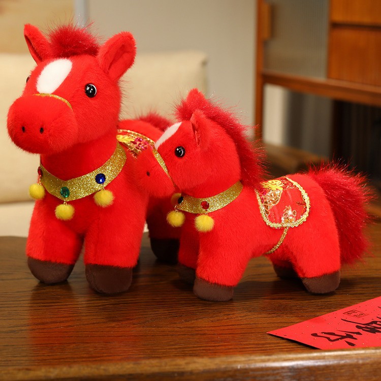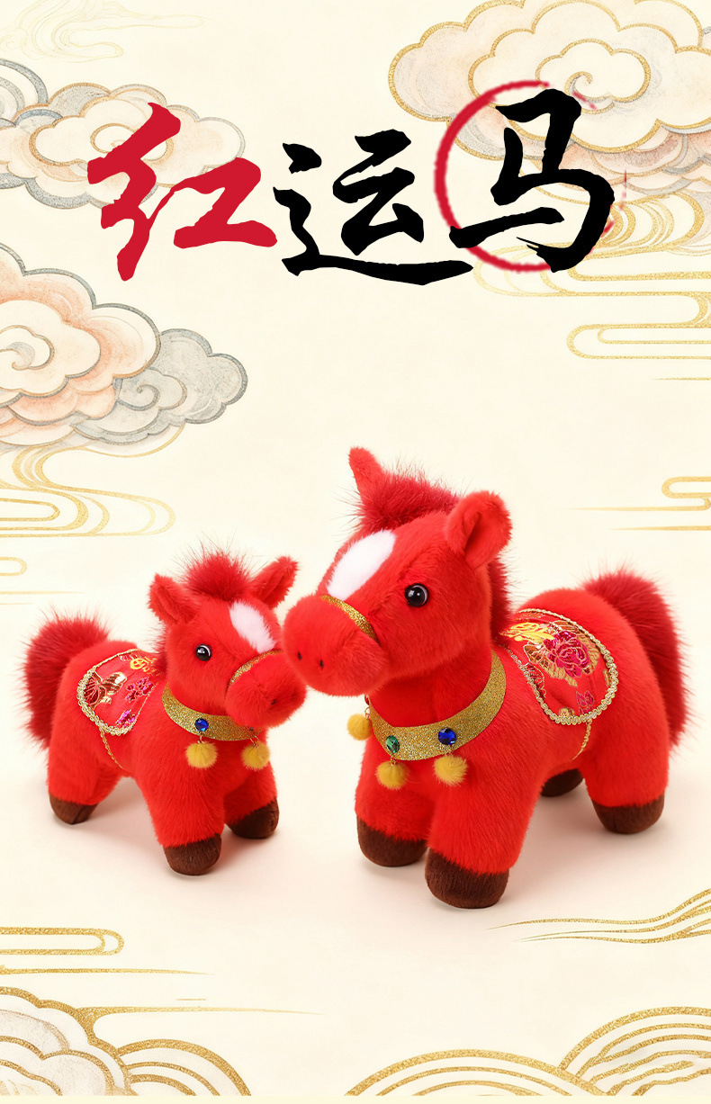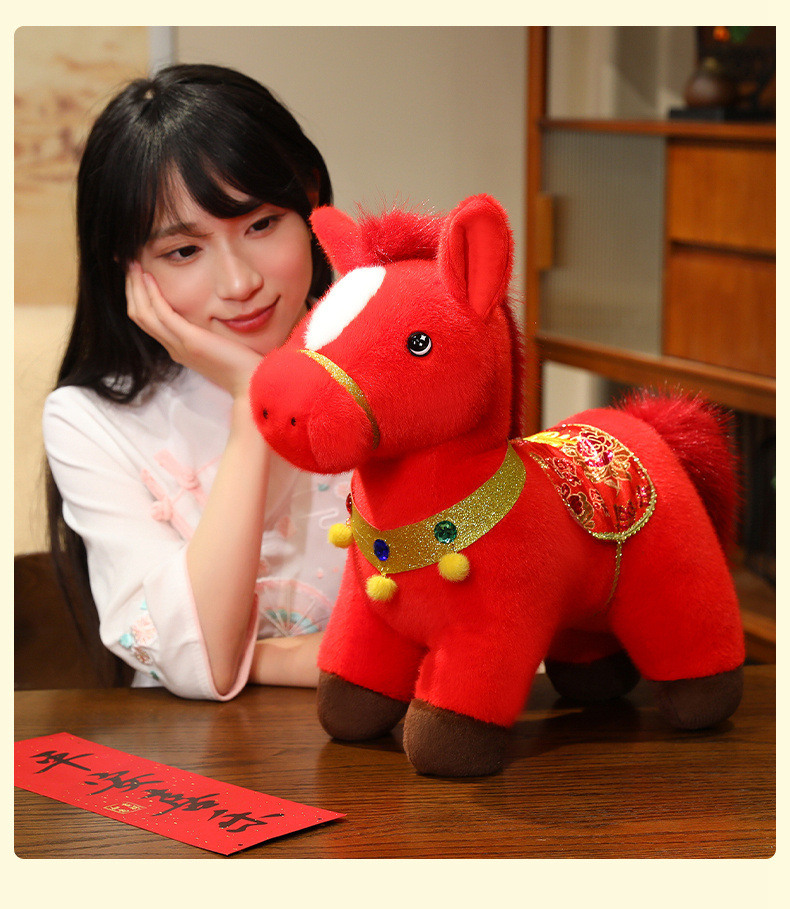 2026年马年吉祥物金貂福牌马毛绒玩具布娃娃小马摆件玩偶送礼品
