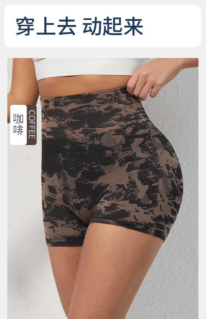 亚马逊TK无缝高腰提臀性感扎染印花运动健身收腹瑜伽短裤女士