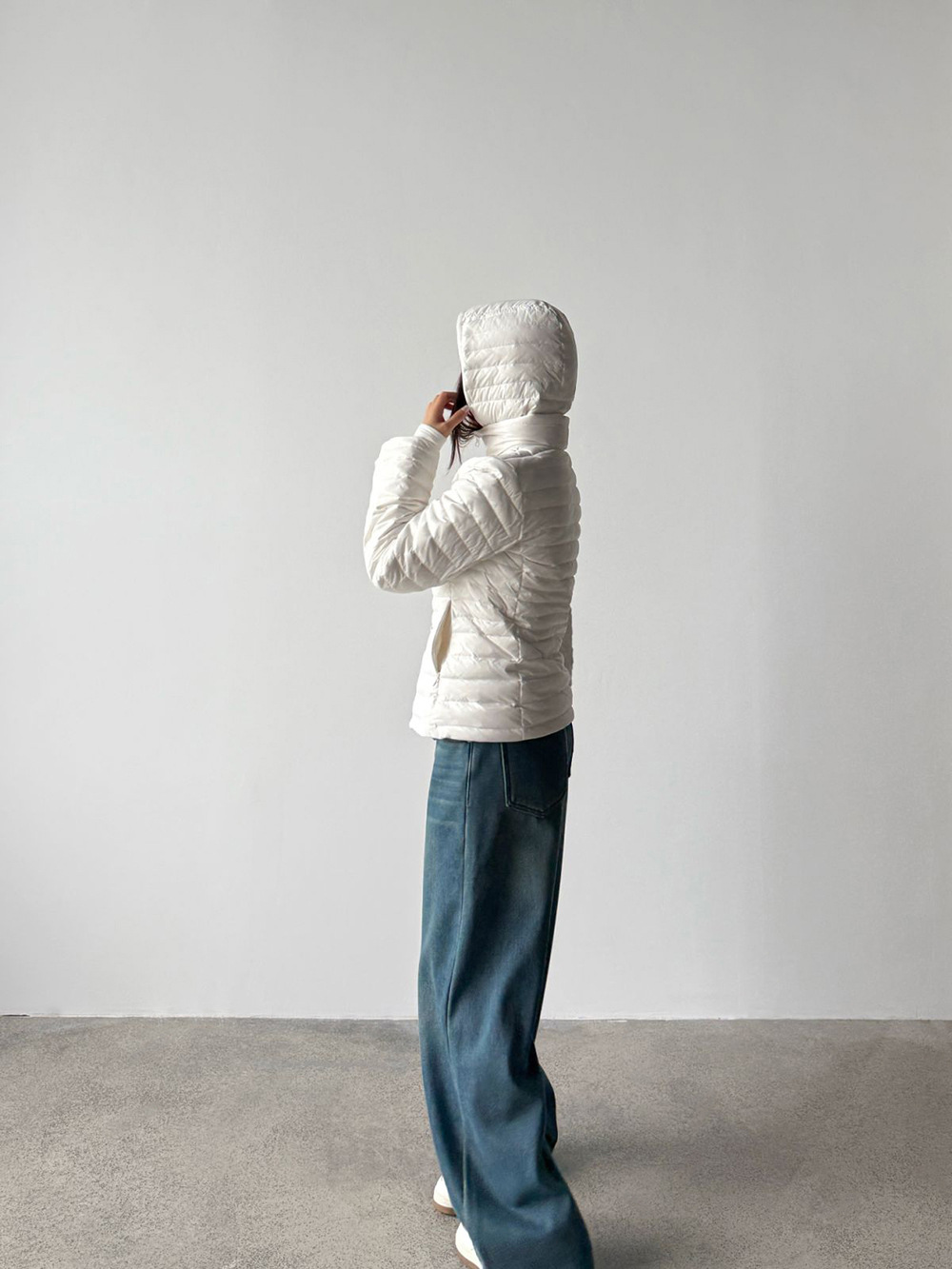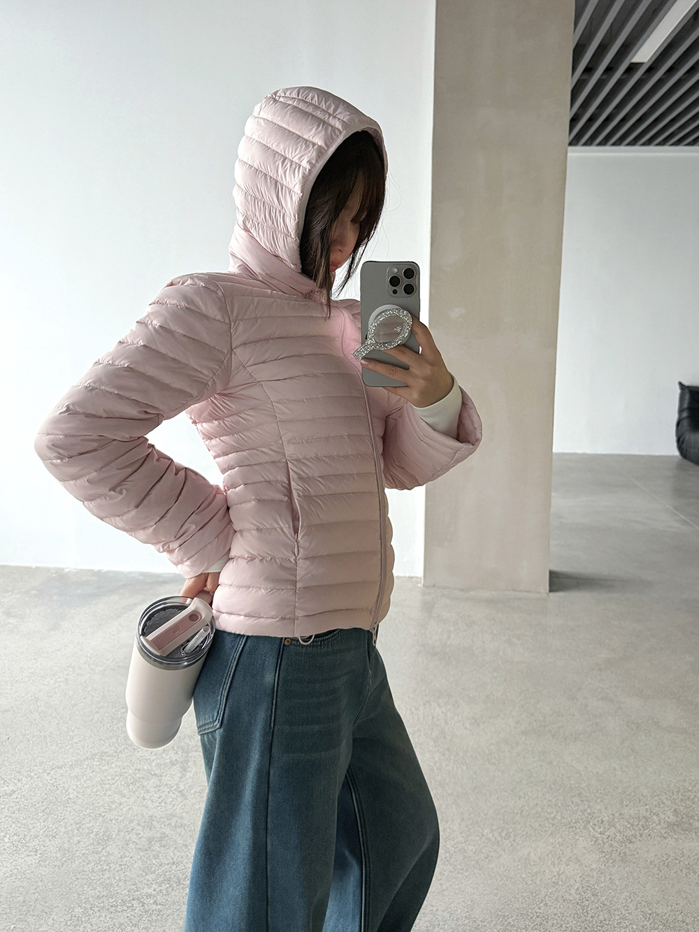【王琪芝】90白鸭绒保暖连帽可拆卸羽绒服女冬收腰修身上衣5120