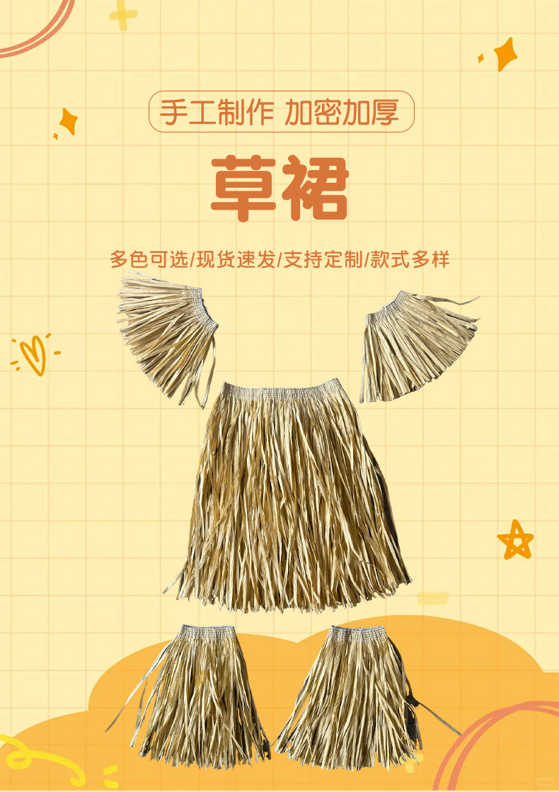 新款夏威夷草裙五件套仿拉菲草纸男女舞台表演装扮流苏道具装饰,批发价,价格:8,厂家直销,新款夏威夷草裙五件套仿拉菲草纸男女舞台表演装扮流苏道具装饰,免费拿样。