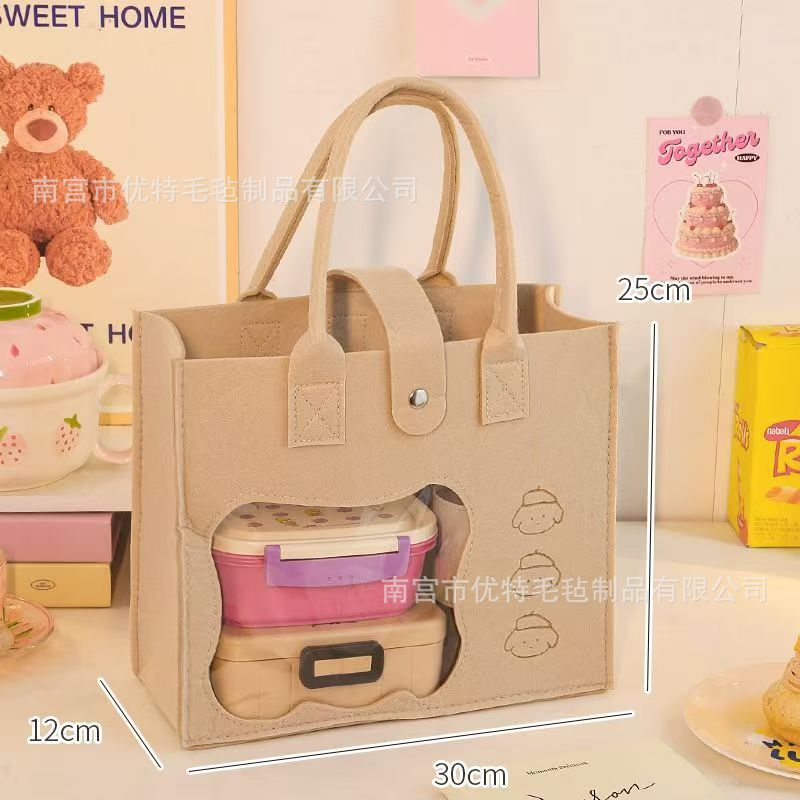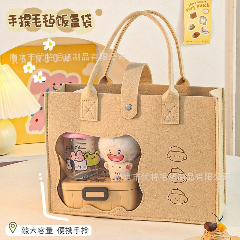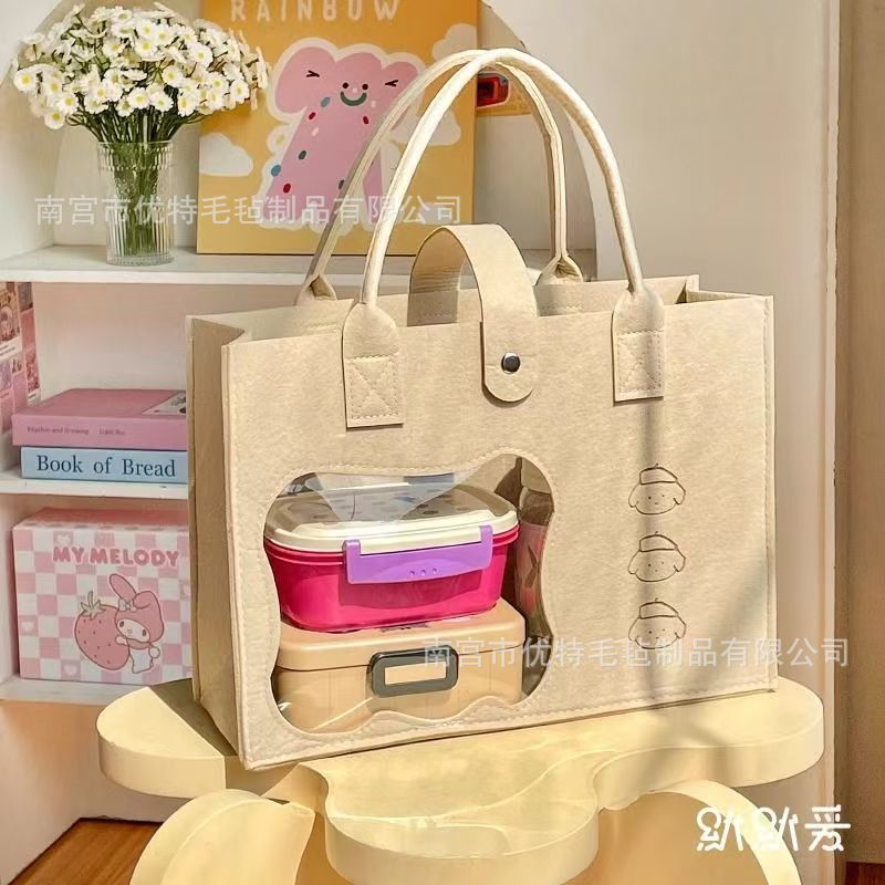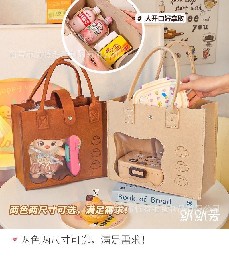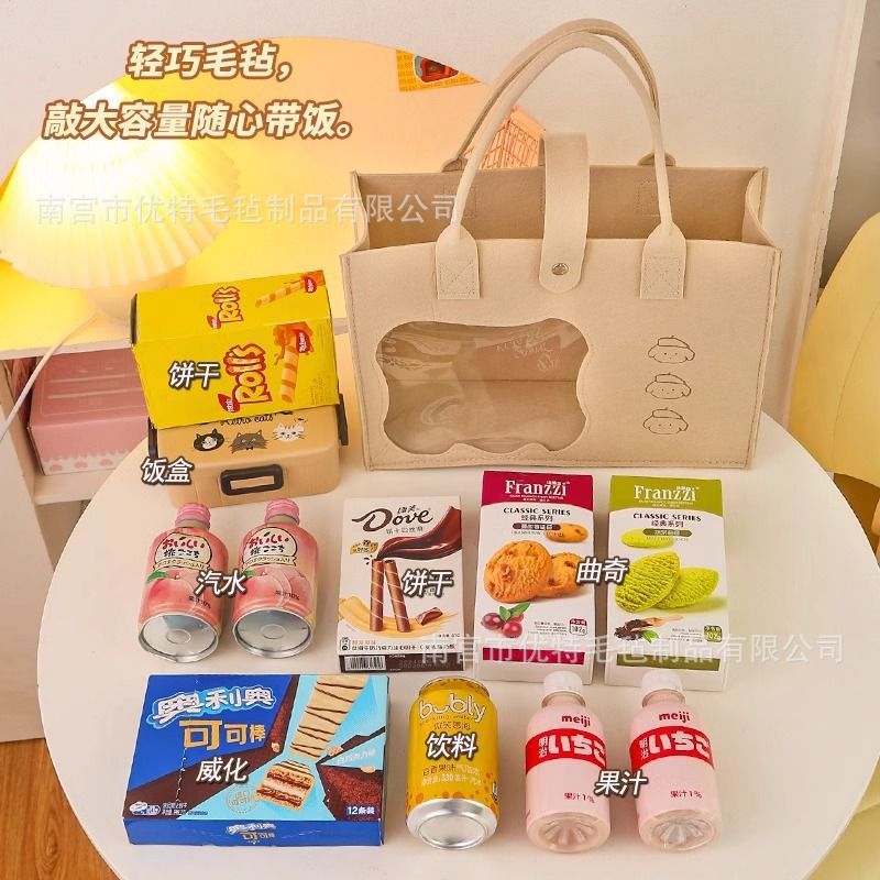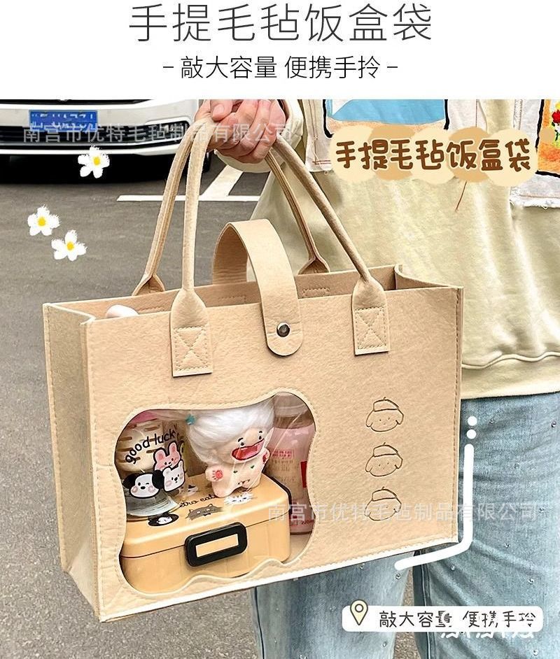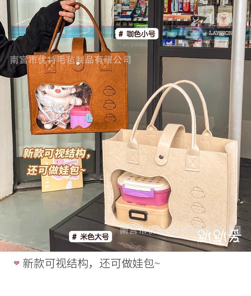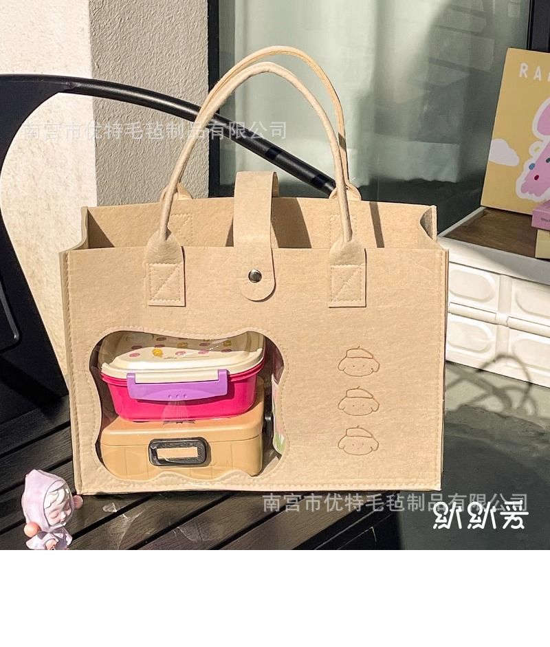 ins风毛毡托特包 毛毡单肩包 简约毛毡手提包 熊猫花花毛毡