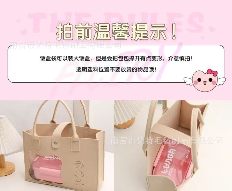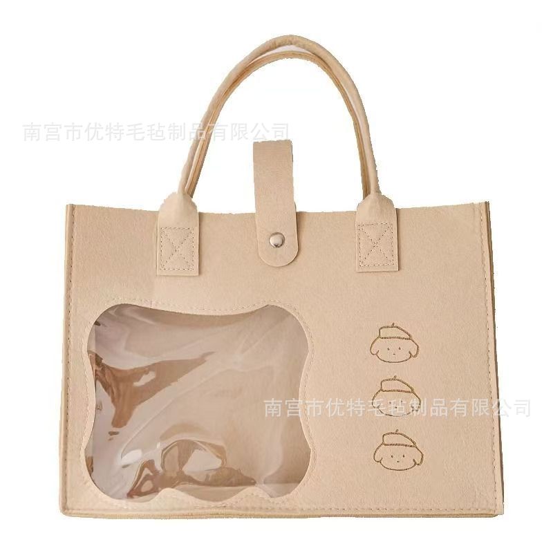 PE透明膜毛毡包购物手提包炸街广告宣传袋手提毛毡包托特包简约款