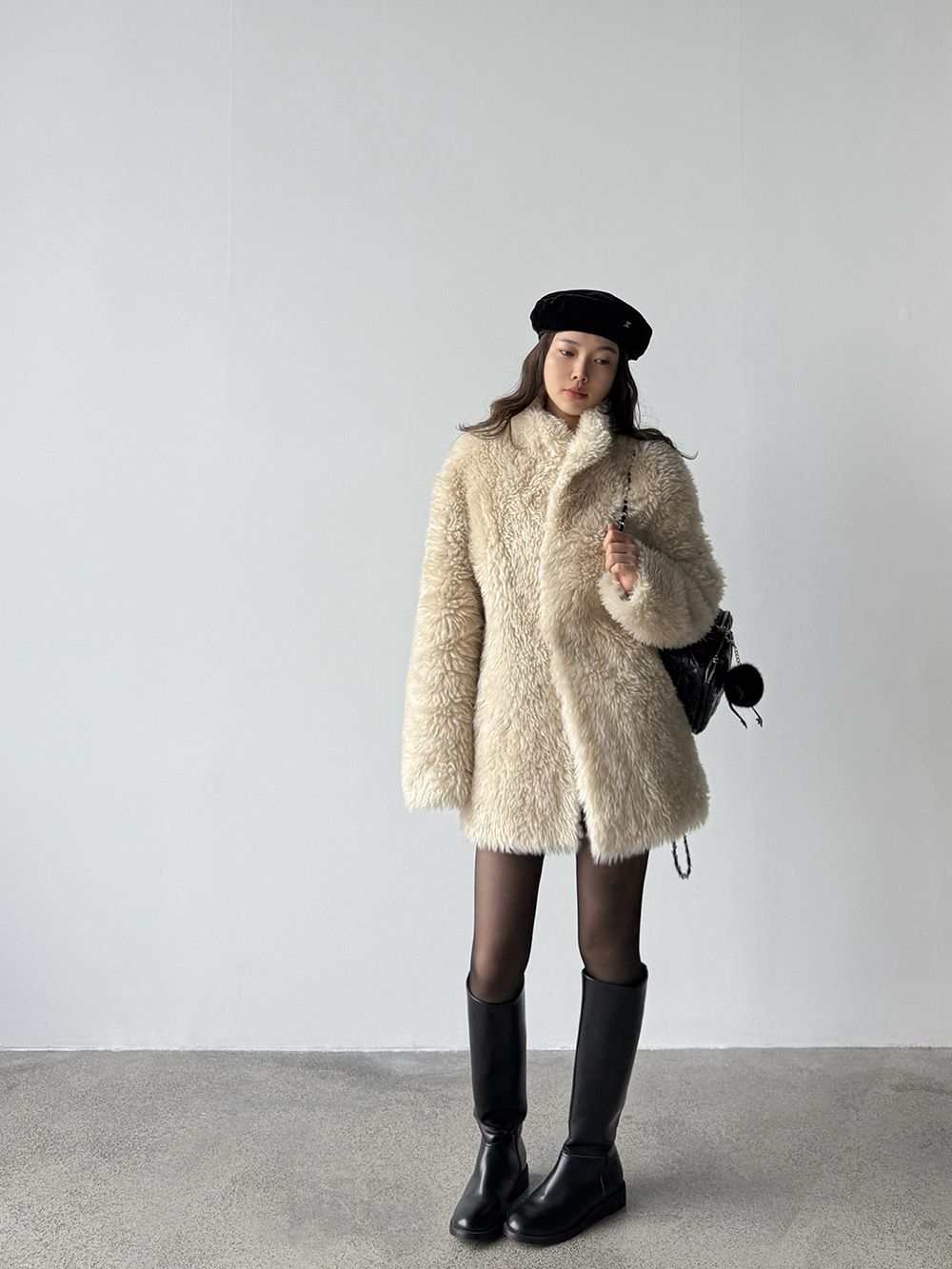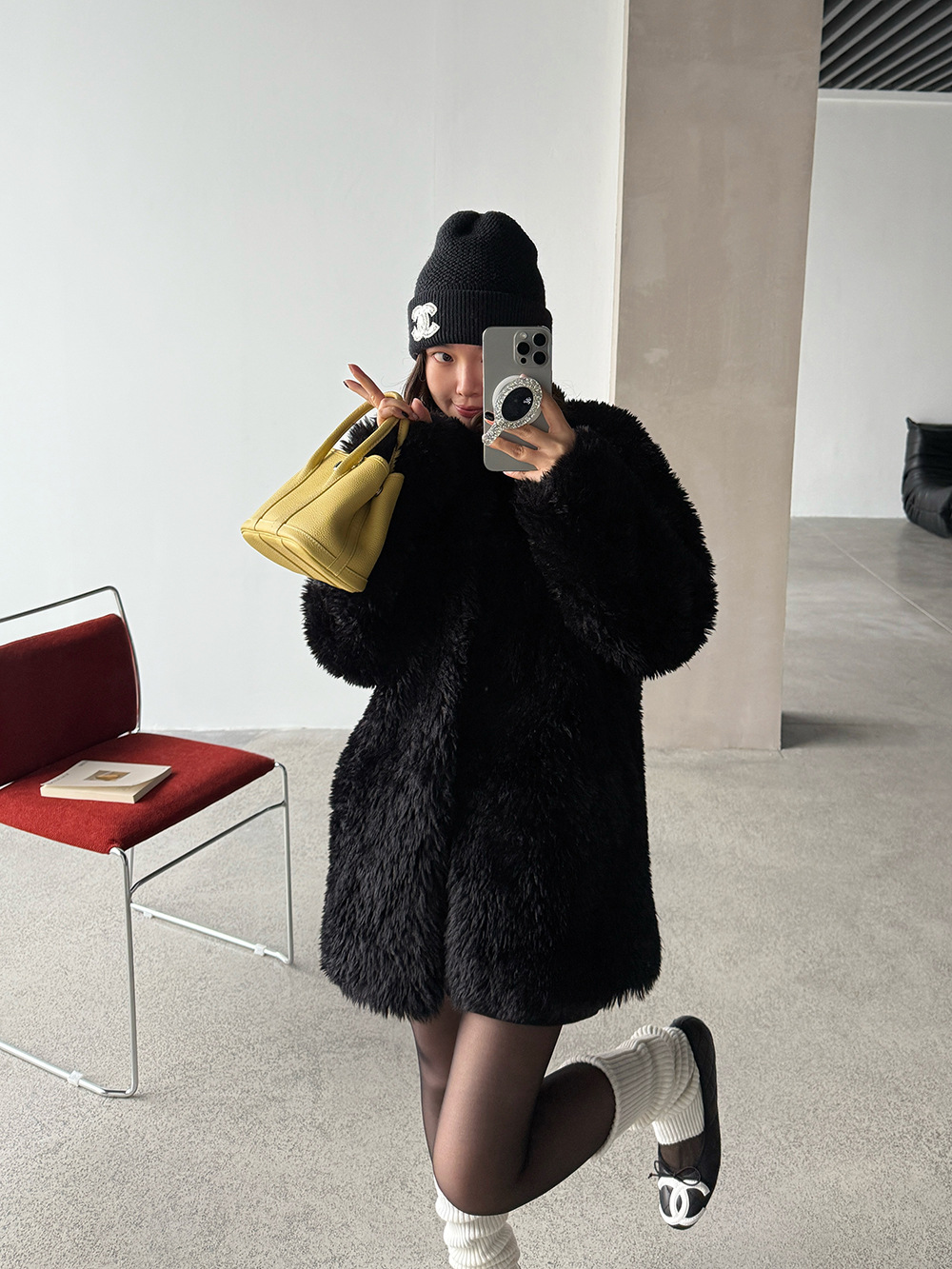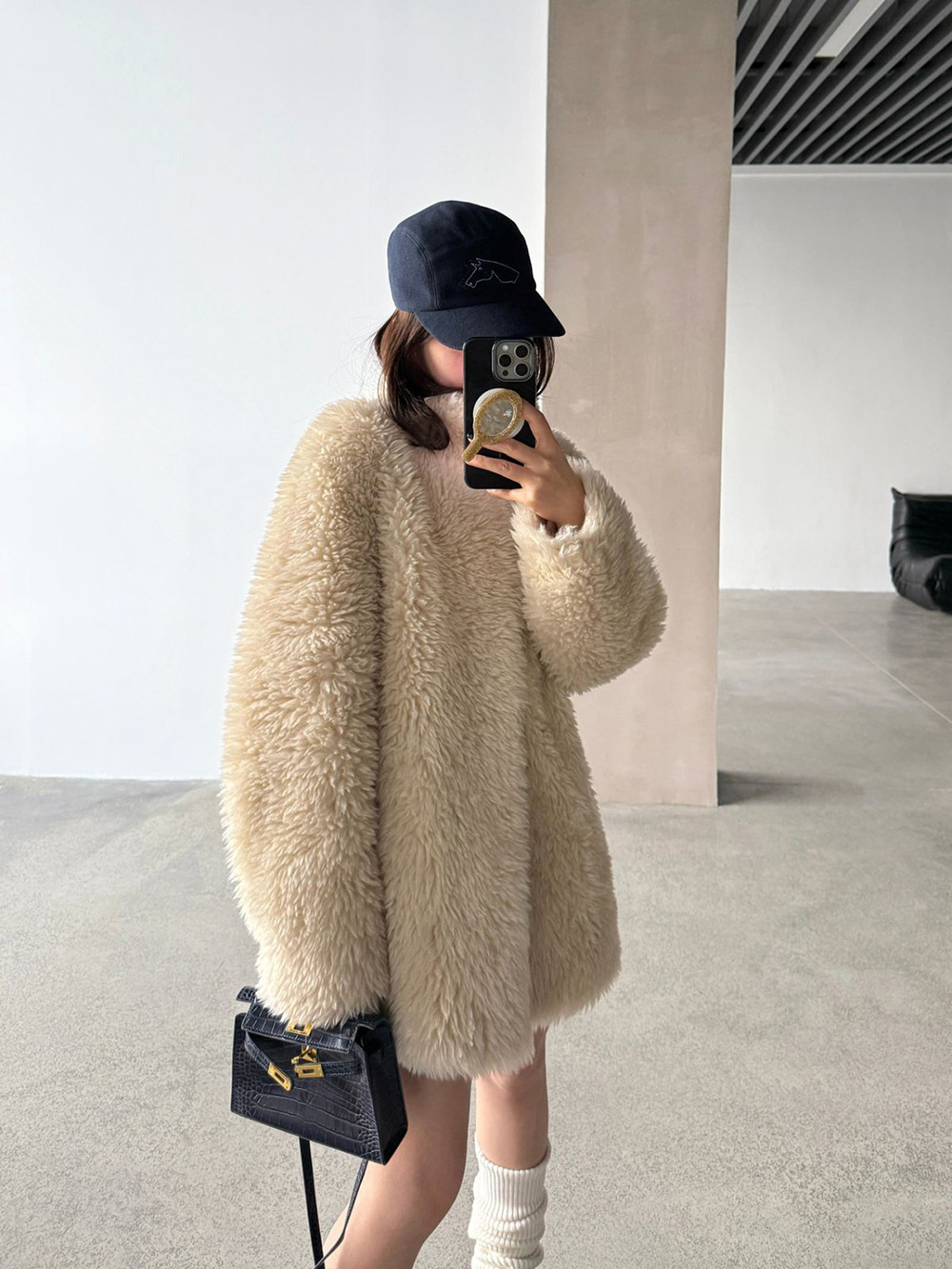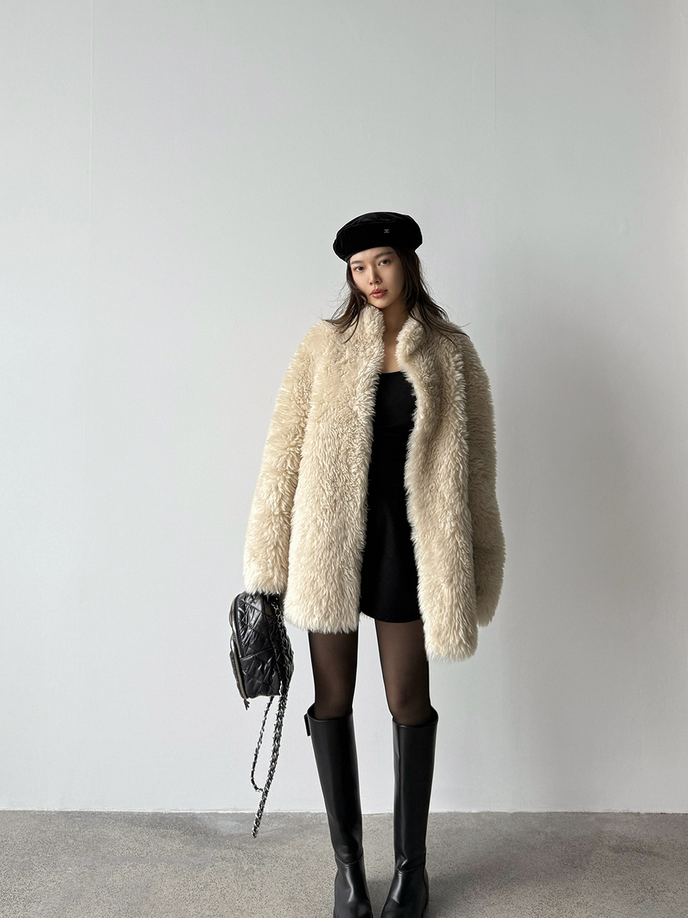 【王琪芝】环保毛仿皮草立领毛毛外套女冬软糯保暖宽松大衣5118