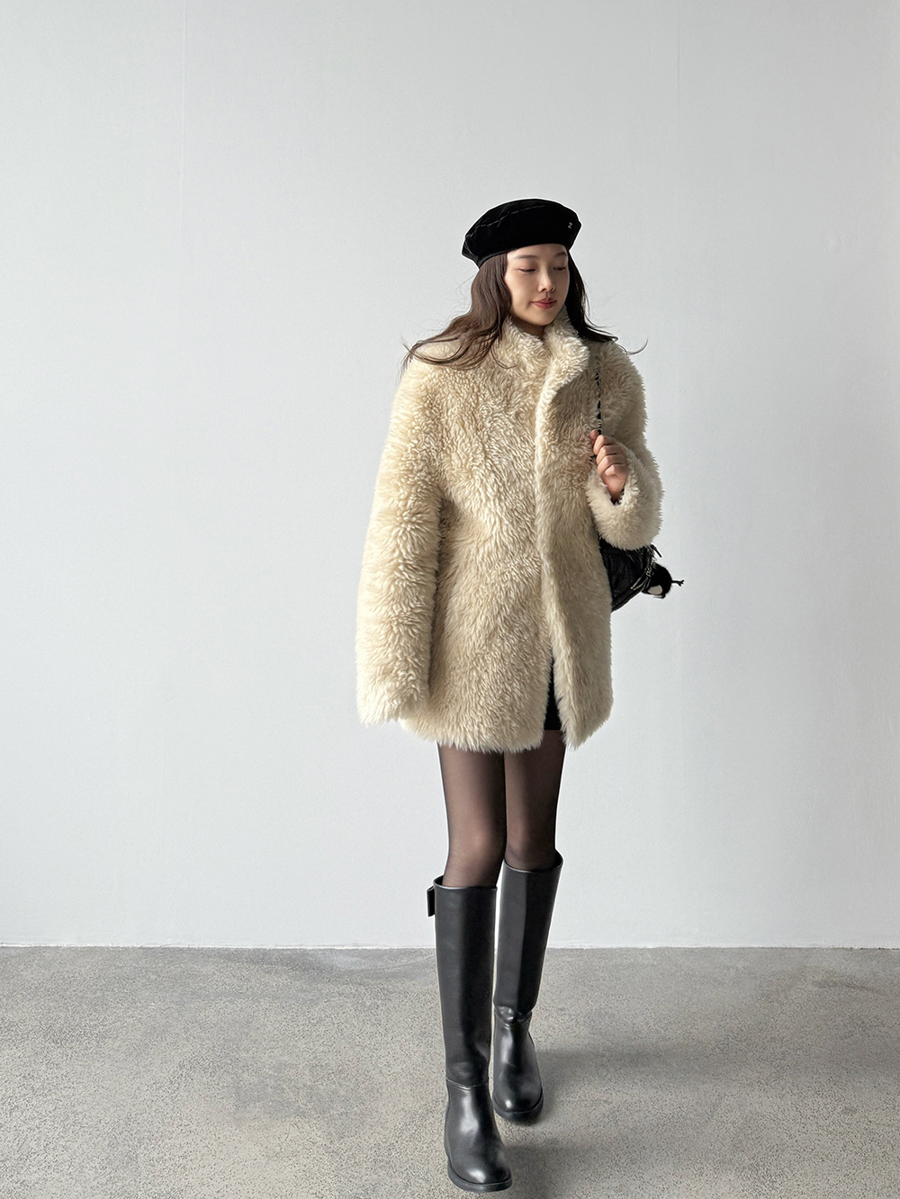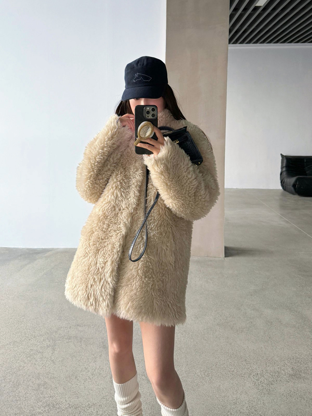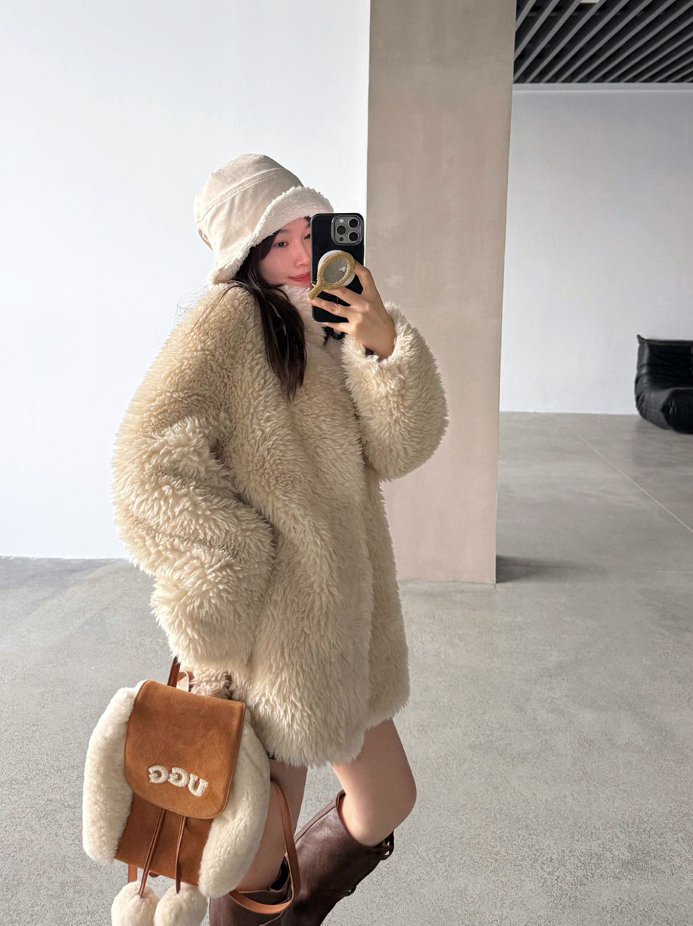 【王琪芝】环保毛仿皮草立领毛毛外套女冬软糯保暖宽松大衣5118