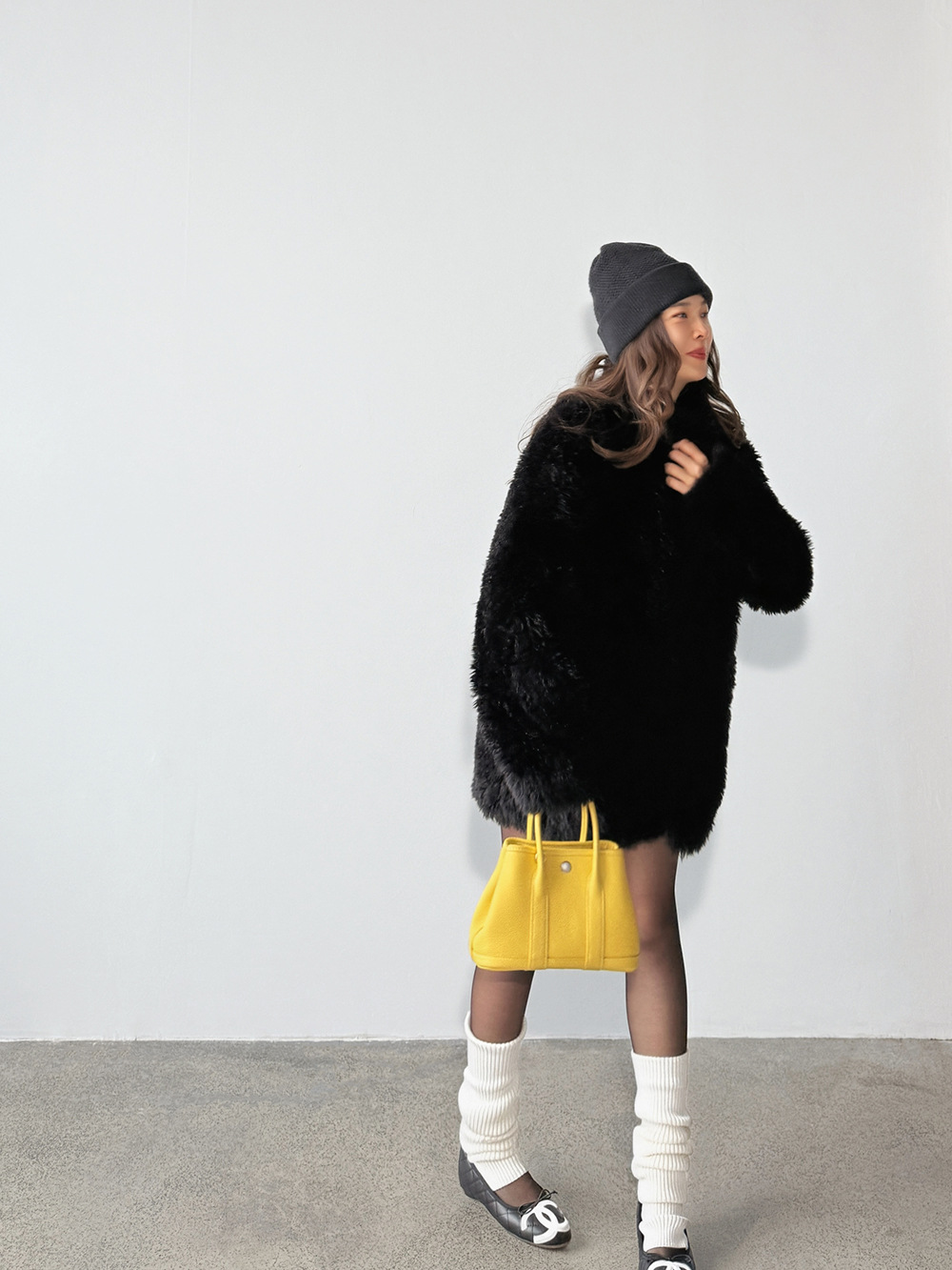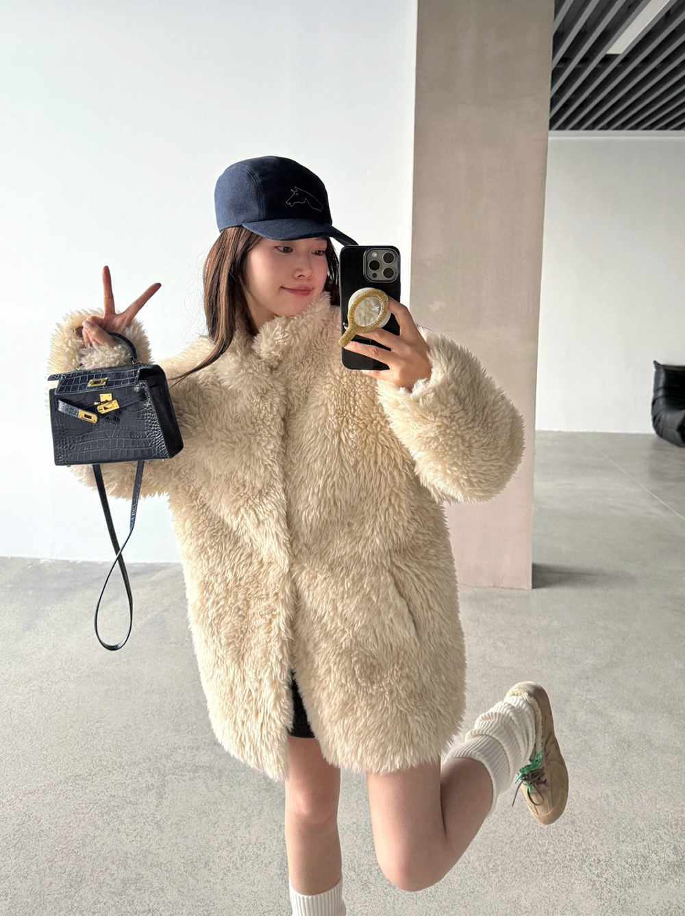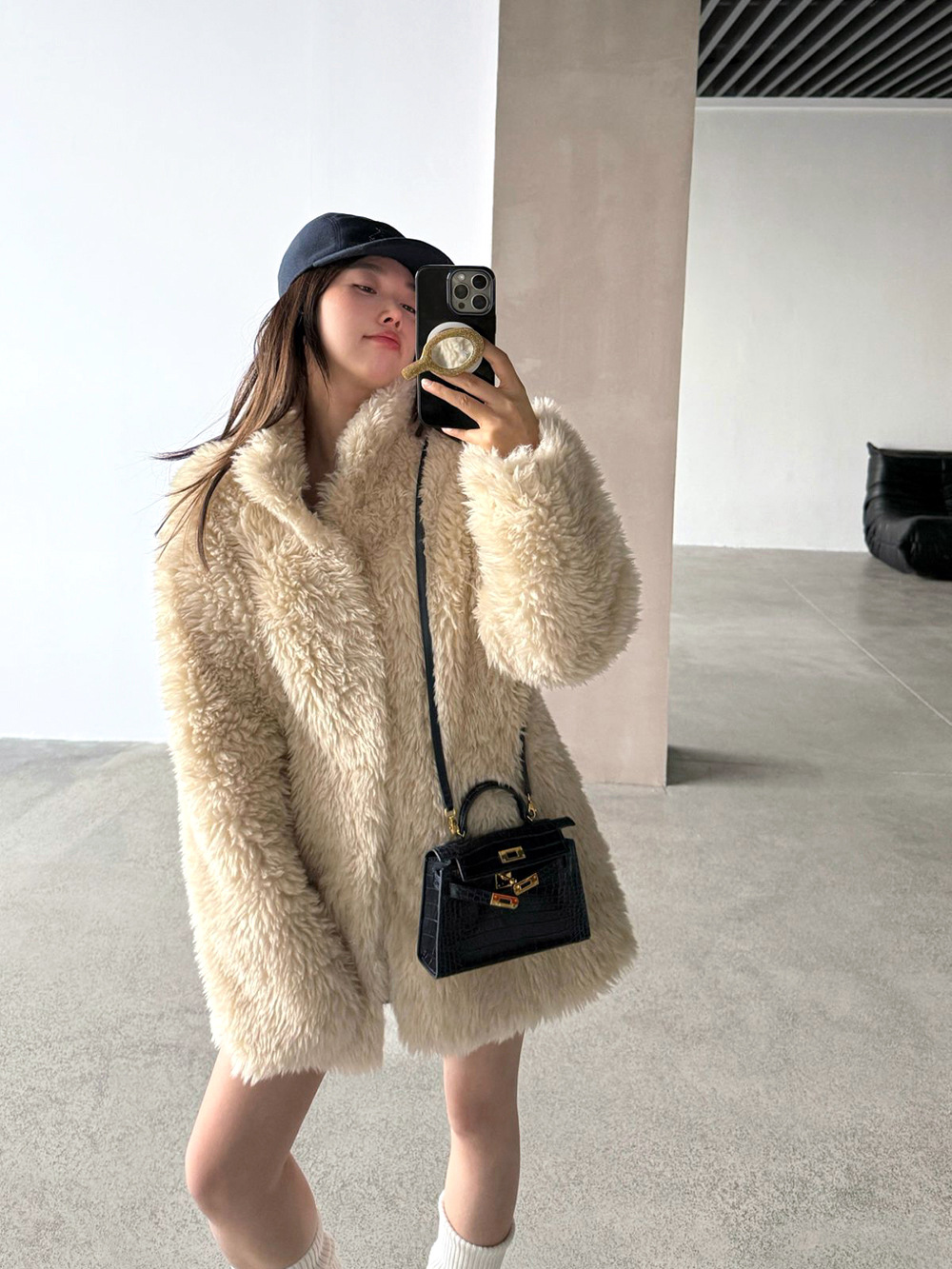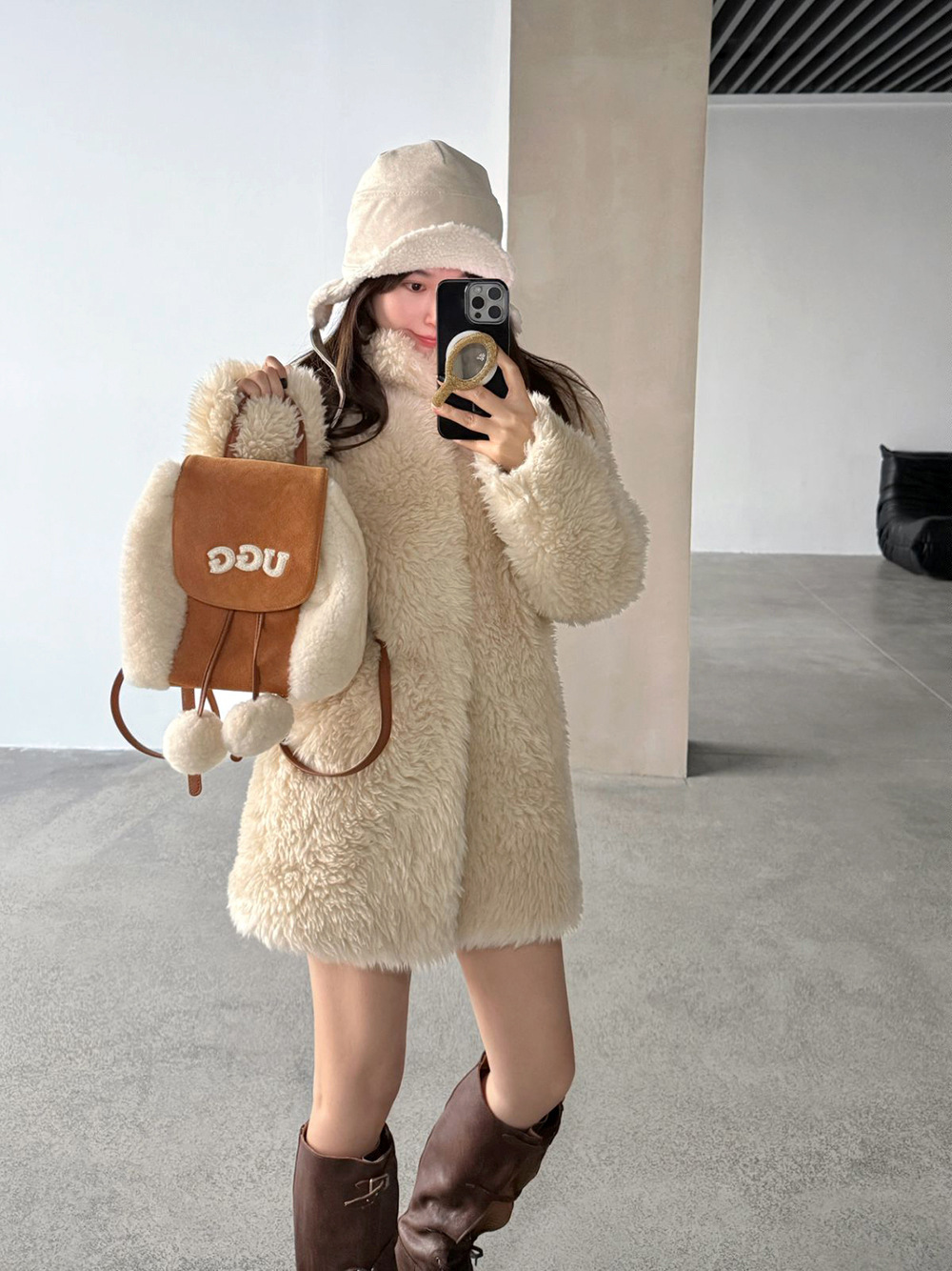 【王琪芝】环保毛仿皮草立领毛毛外套女冬软糯保暖宽松大衣5118