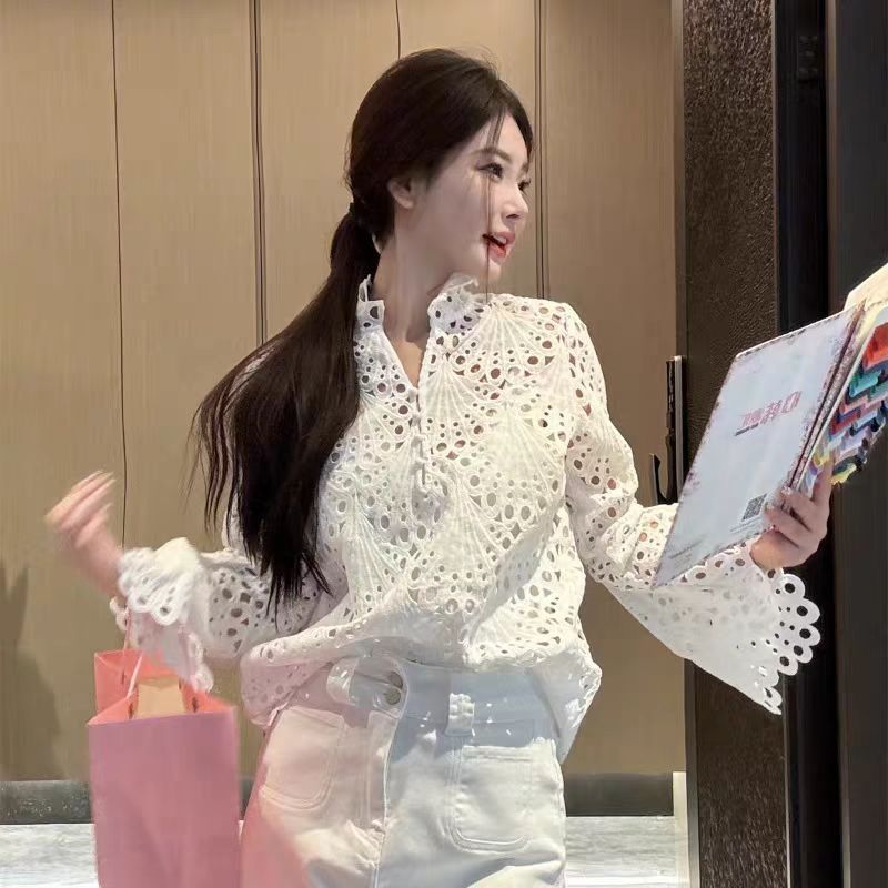 纯欲风独特漂亮白色镂空衬衫外套女高级感轻奢减龄洋气法式两件套