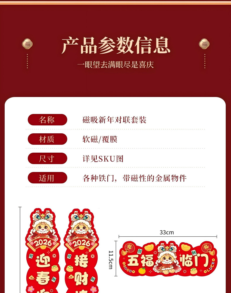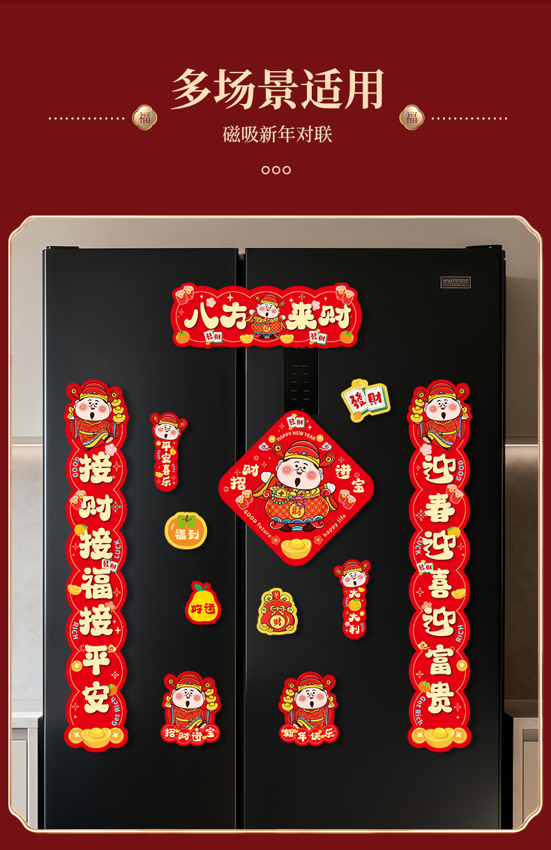 2026马年磁吸新款新年过春节春联对联布置冰箱福字入户大门贴装饰,批发价,价格:6.9,厂家直销,2026马年磁吸新款新年过春节春联对联布置冰箱福字入户大门贴装饰,免费拿样。