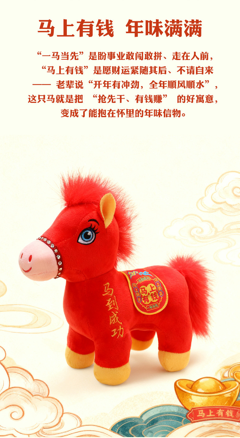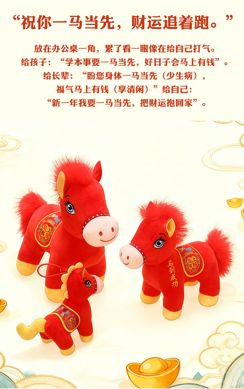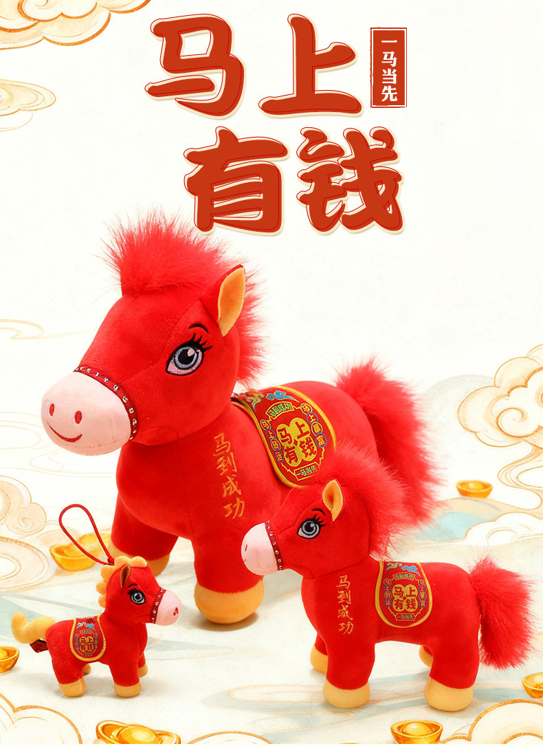 马年吉祥物一马当先马上有钱马到成功毛绒公仔包包挂饰钥匙扣礼品