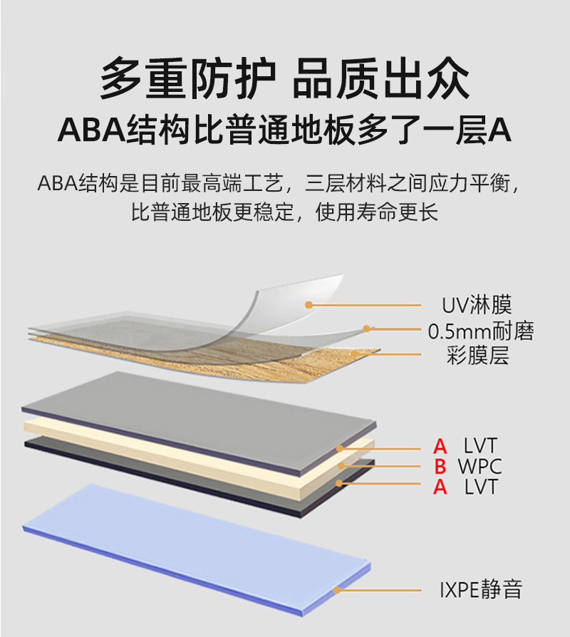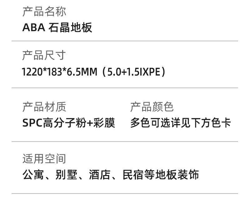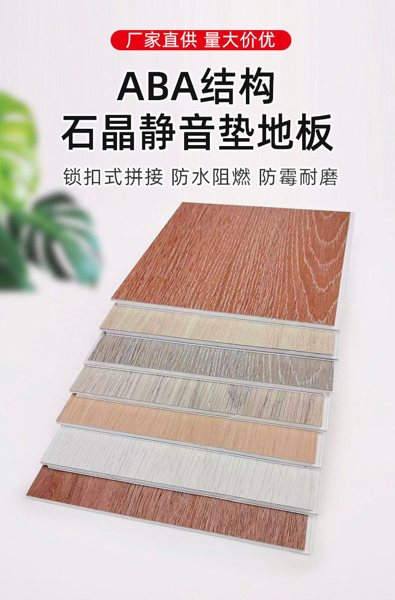 ABA结构石晶地板别墅酒店防水防潮环保6.5mm无缝拼接SPC锁扣地板