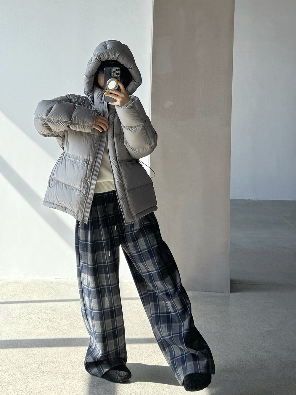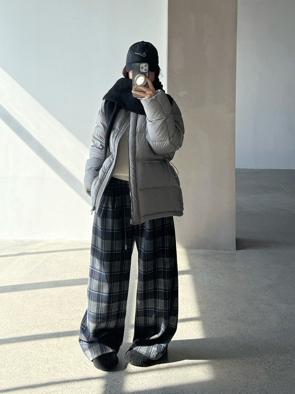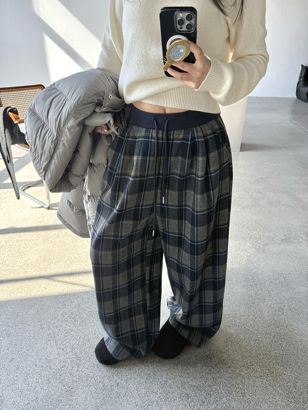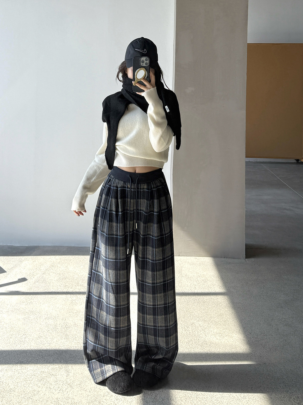 【王琪芝】加绒加厚格子阔腿裤女高腰宽松垂感慵懒风休闲裤WQ111