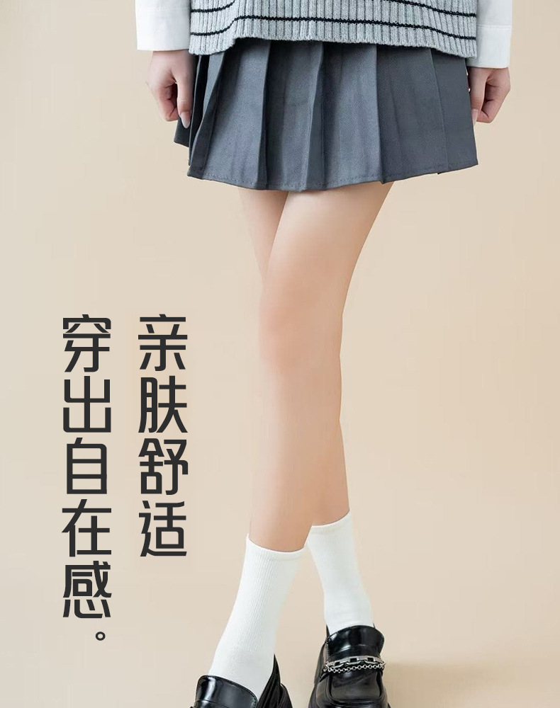 白色袜子春秋款纯色棉袜无骨中筒袜吸汗透气长袜搭配勃肯鞋袜子