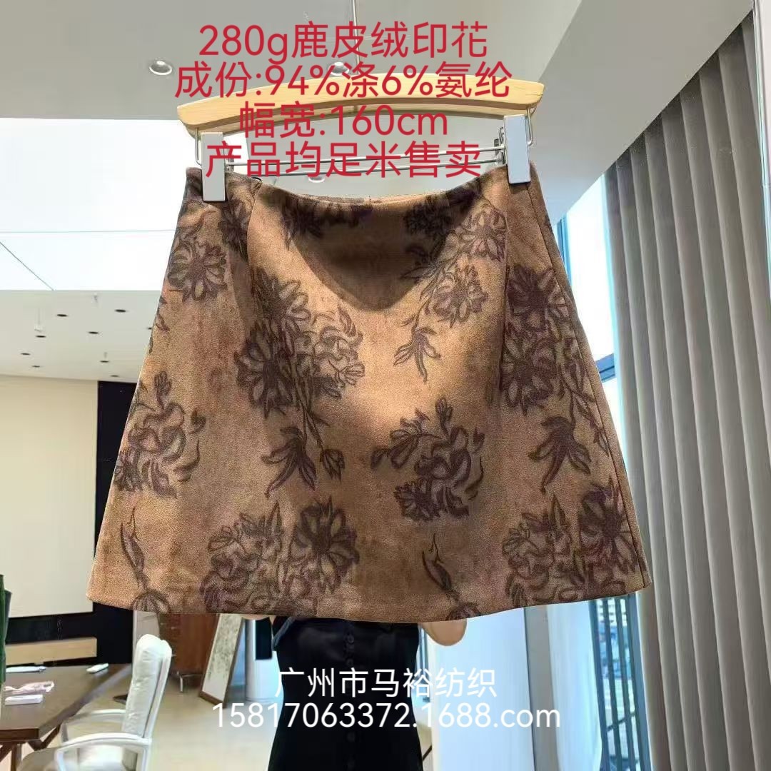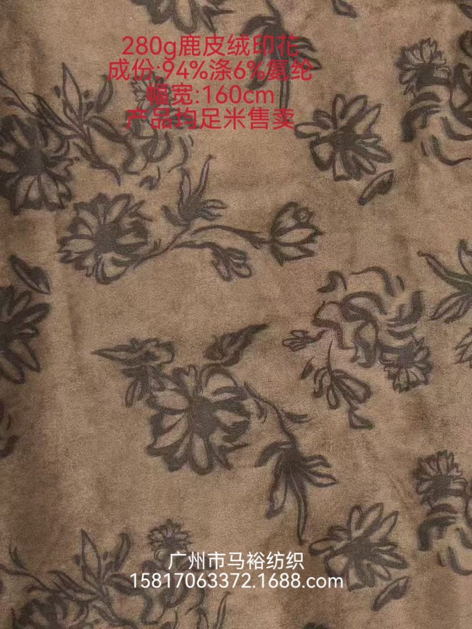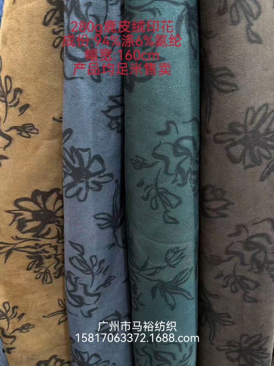 280g弹力鹿皮绒94%涤纶6%氨纶160cm宽幅4色可选立体花卉印花