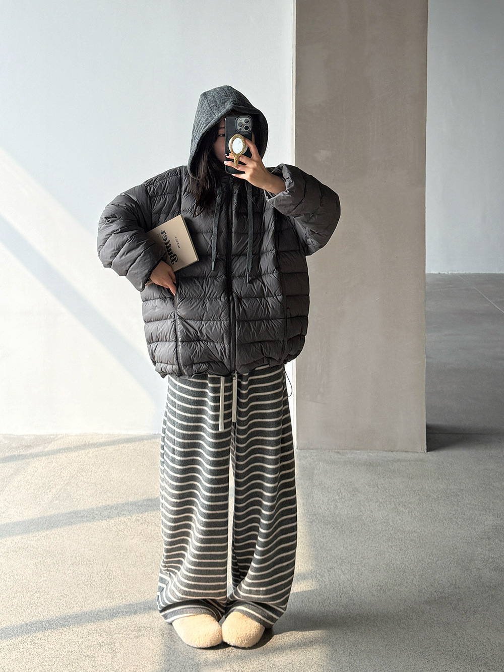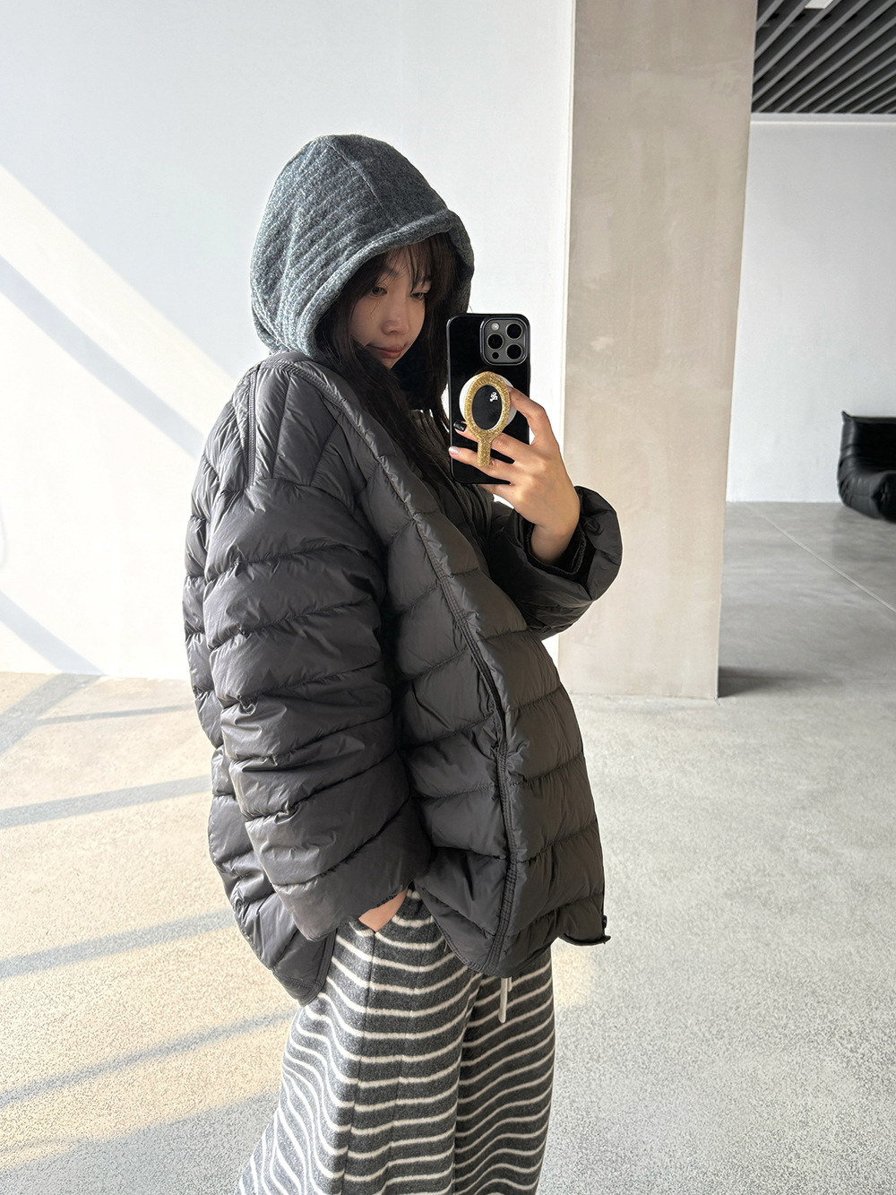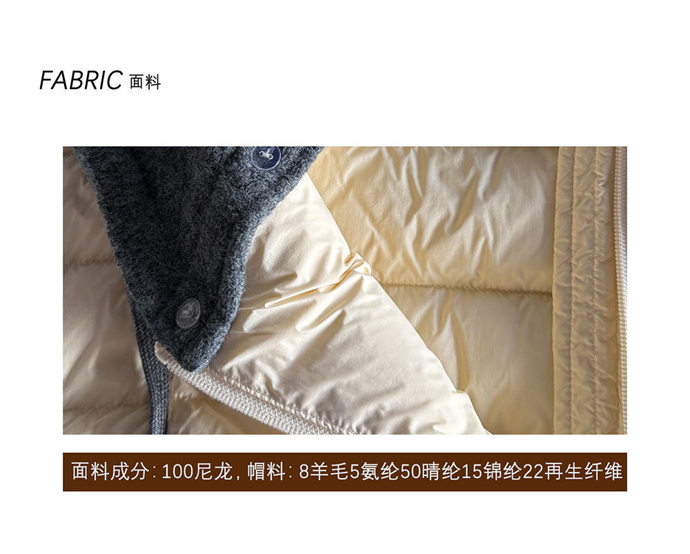 【王琪芝】白鸭绒排骨羽绒服女冬保暖宽松可拆卸针织帽外套WQ106