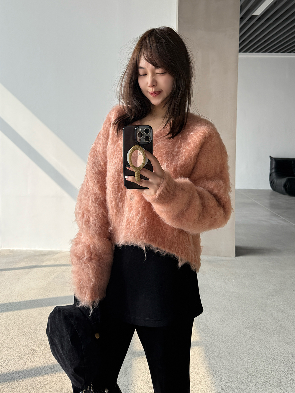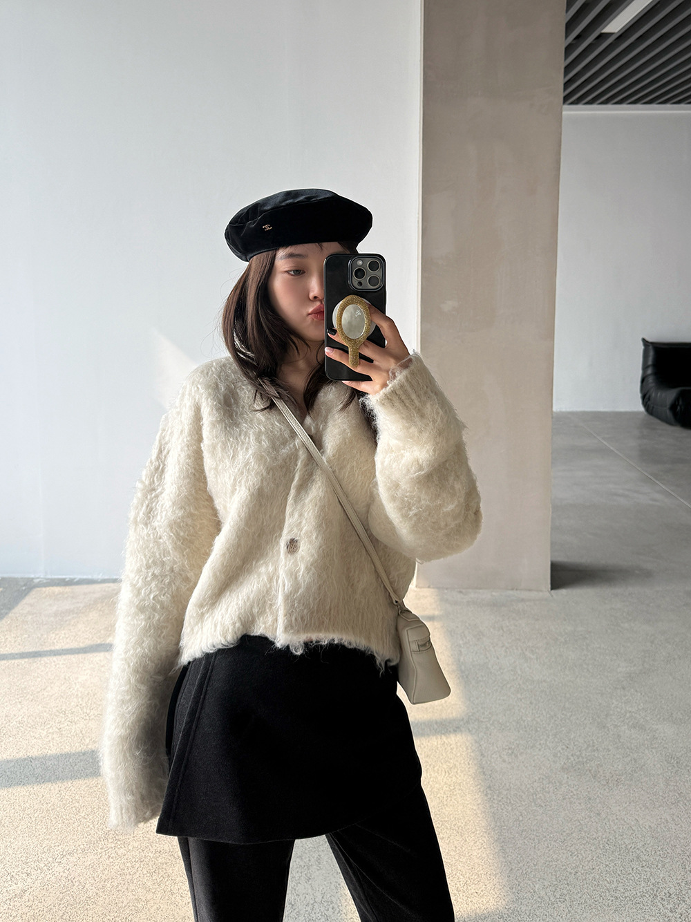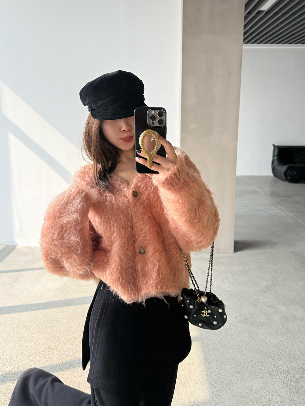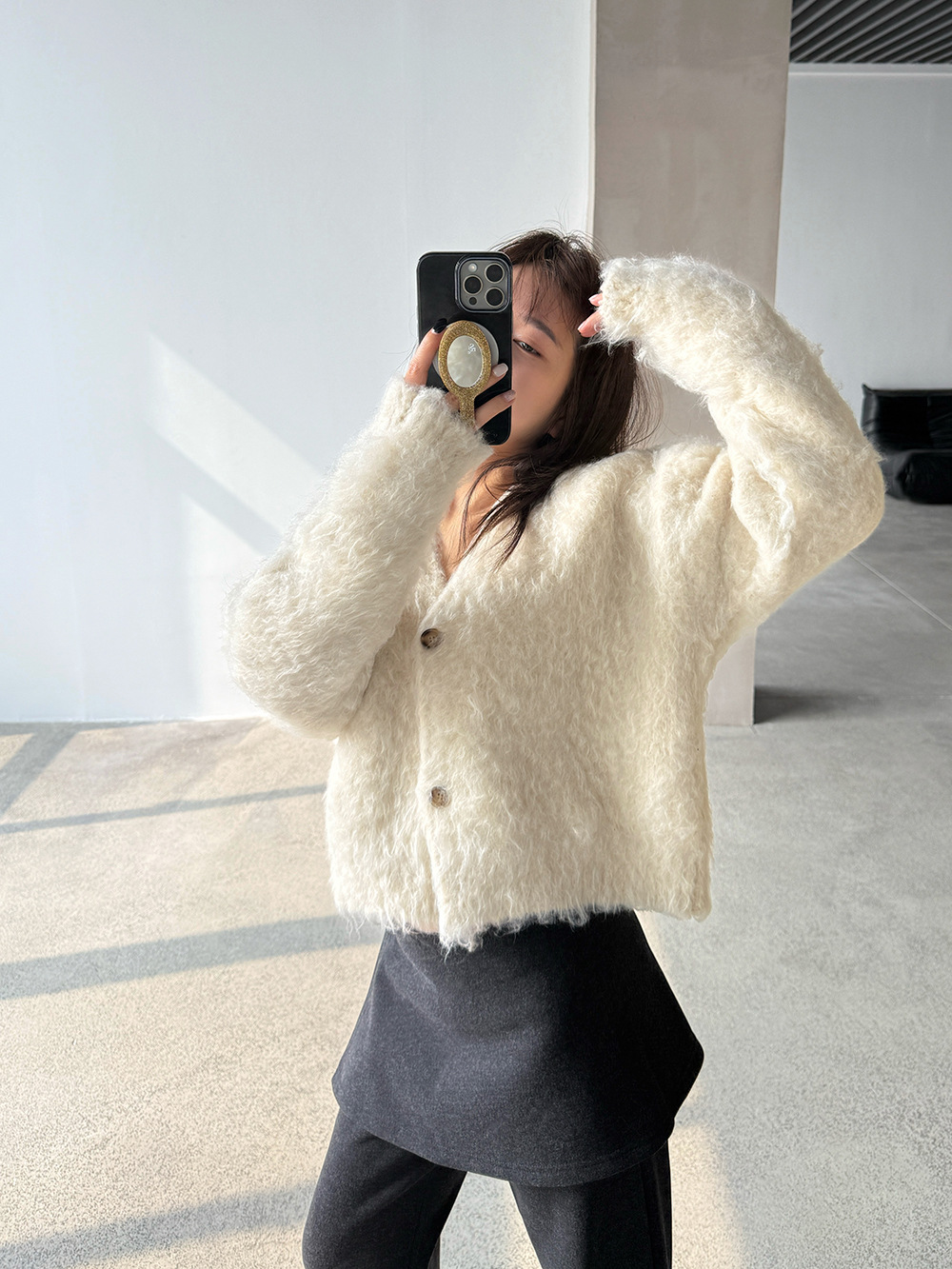 【王琪芝】韩版时髦厚实软糯长毛毛衣女冬慵懒保暖羊毛开衫WQ109