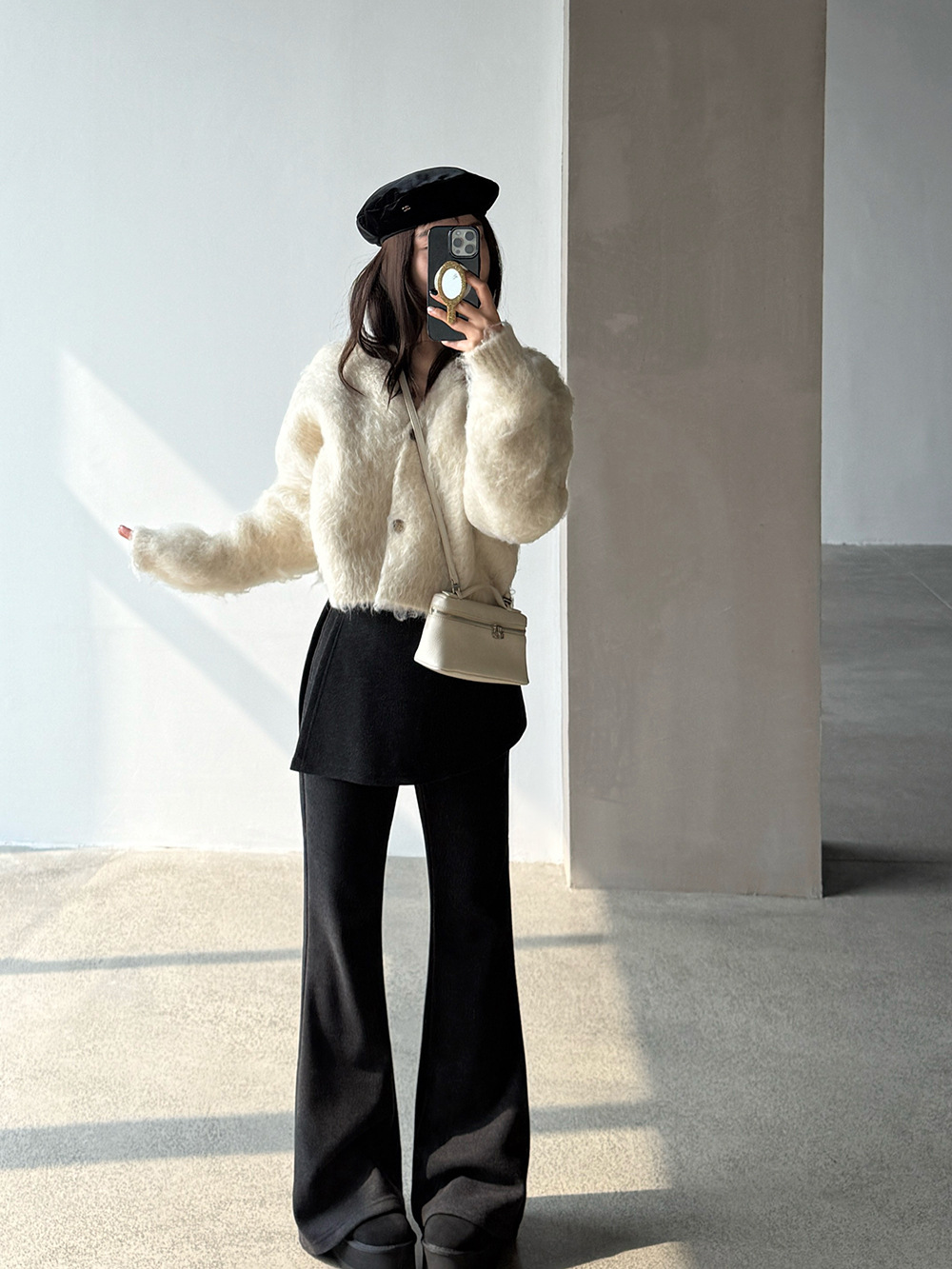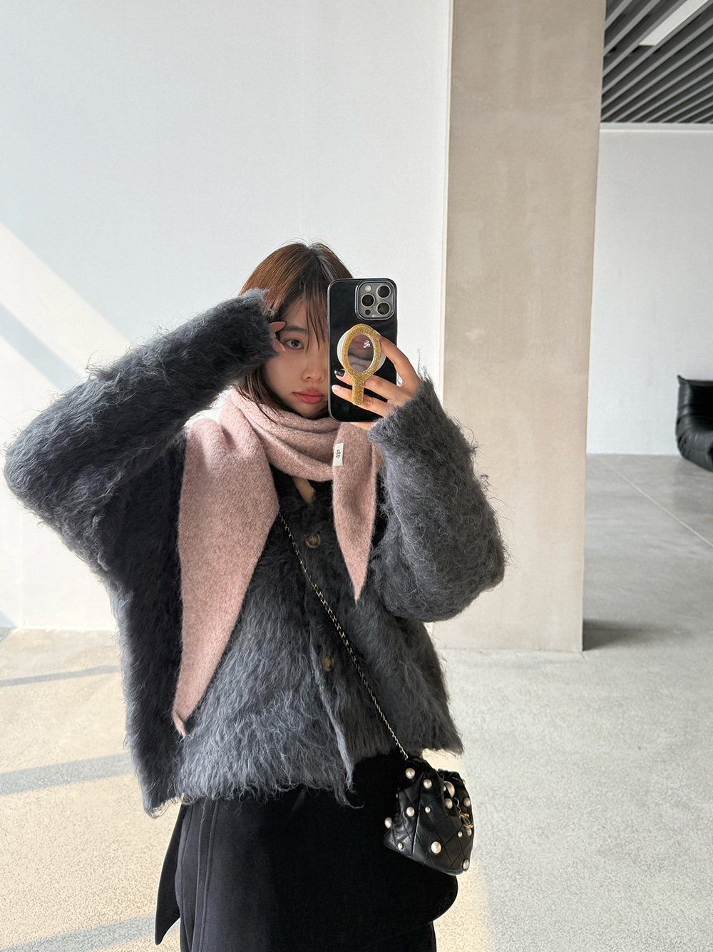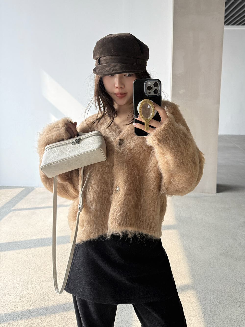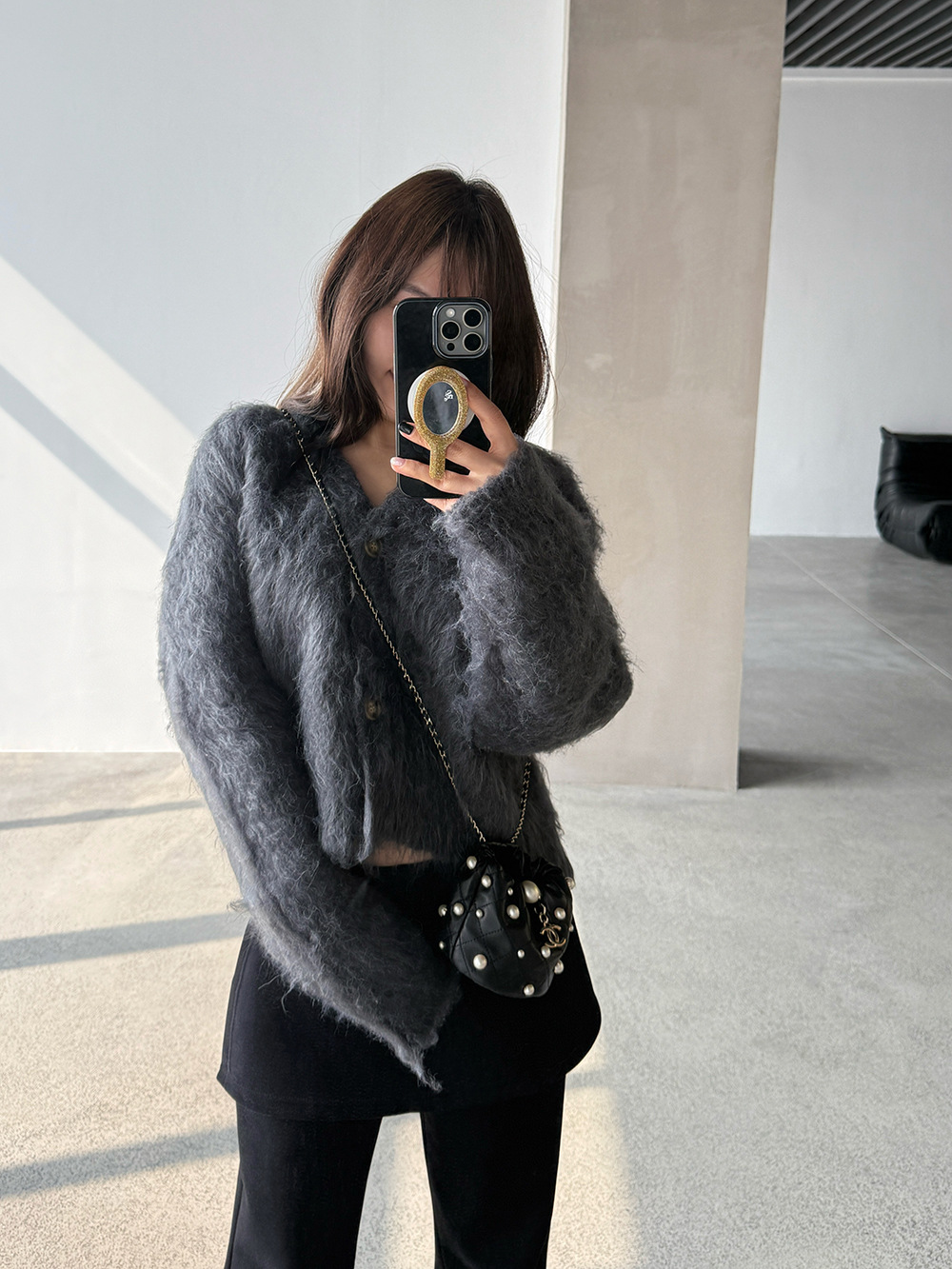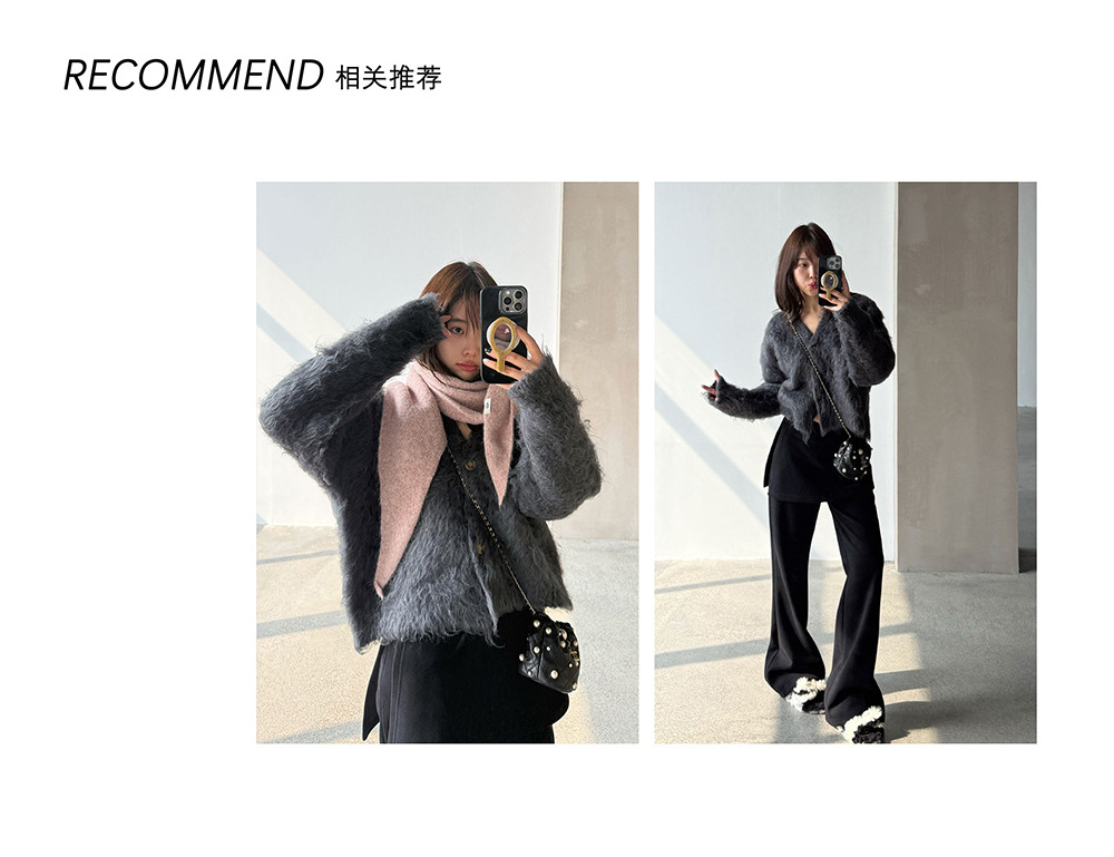 【王琪芝】韩版时髦厚实软糯长毛毛衣女冬慵懒保暖羊毛开衫WQ109