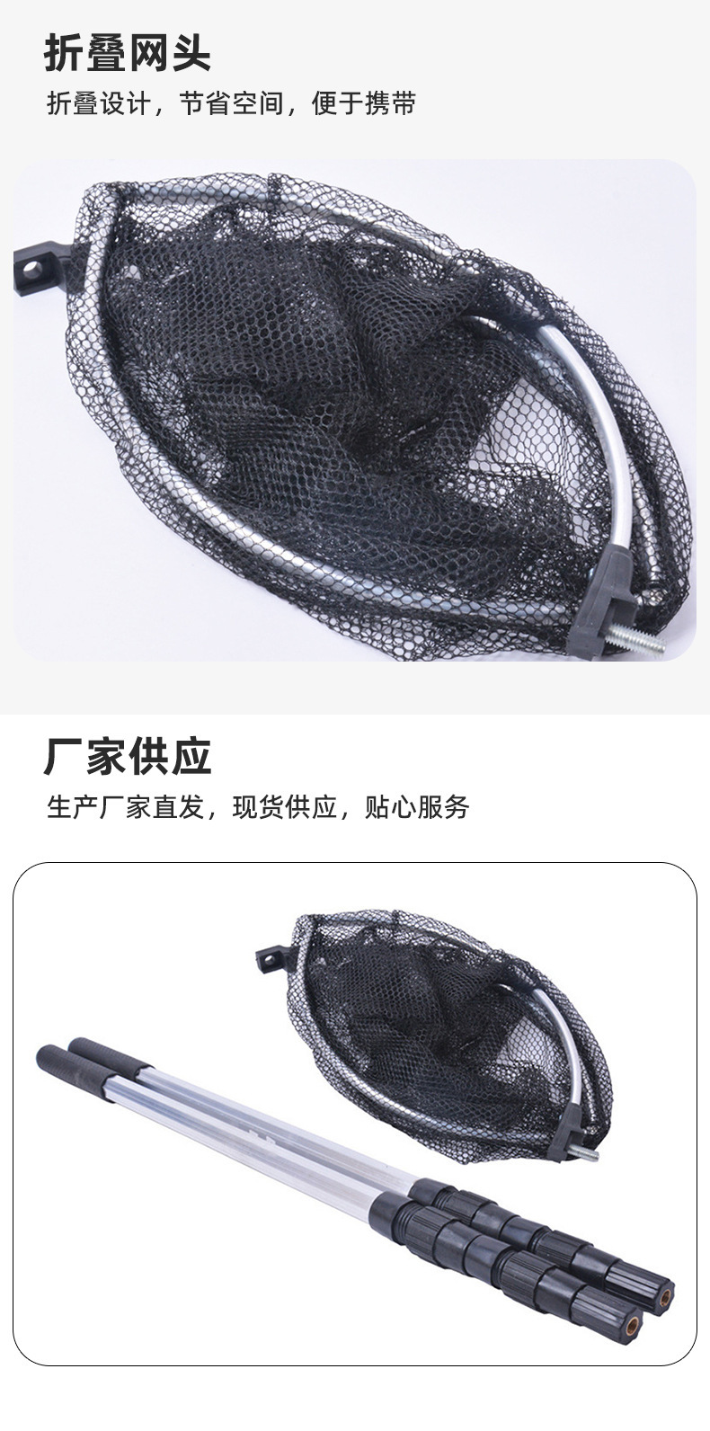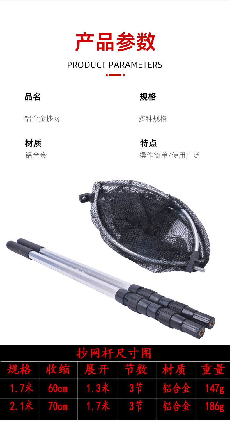 可折叠网头1.7米抄网杆钓鱼捞鱼网铝合金抄网杆可折叠铝合金网头