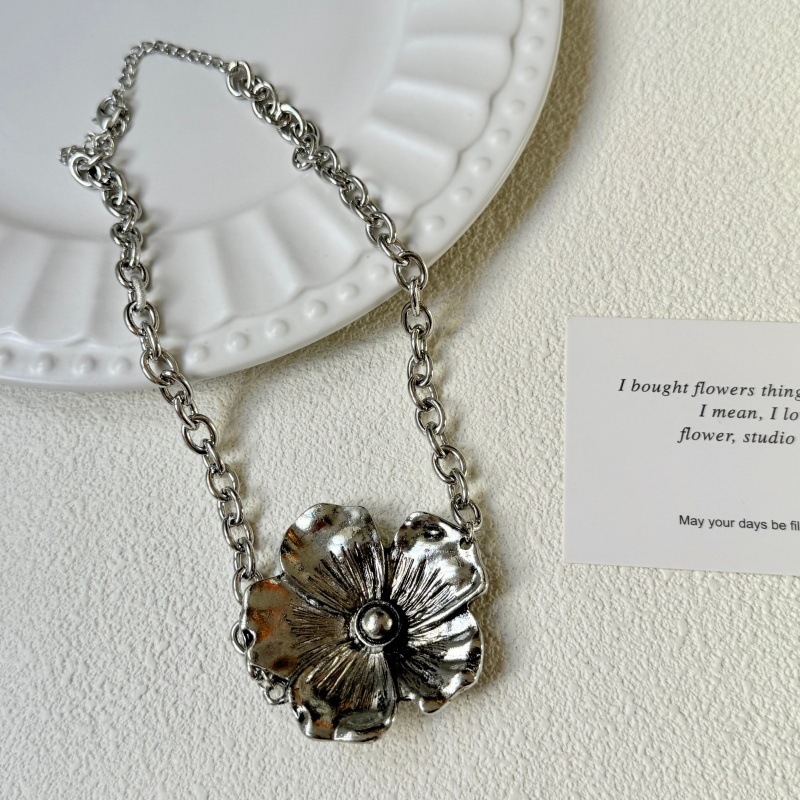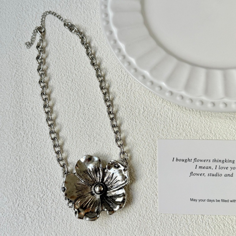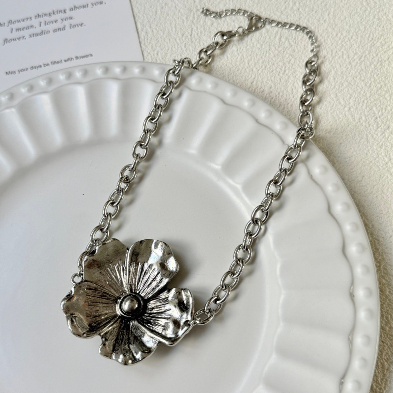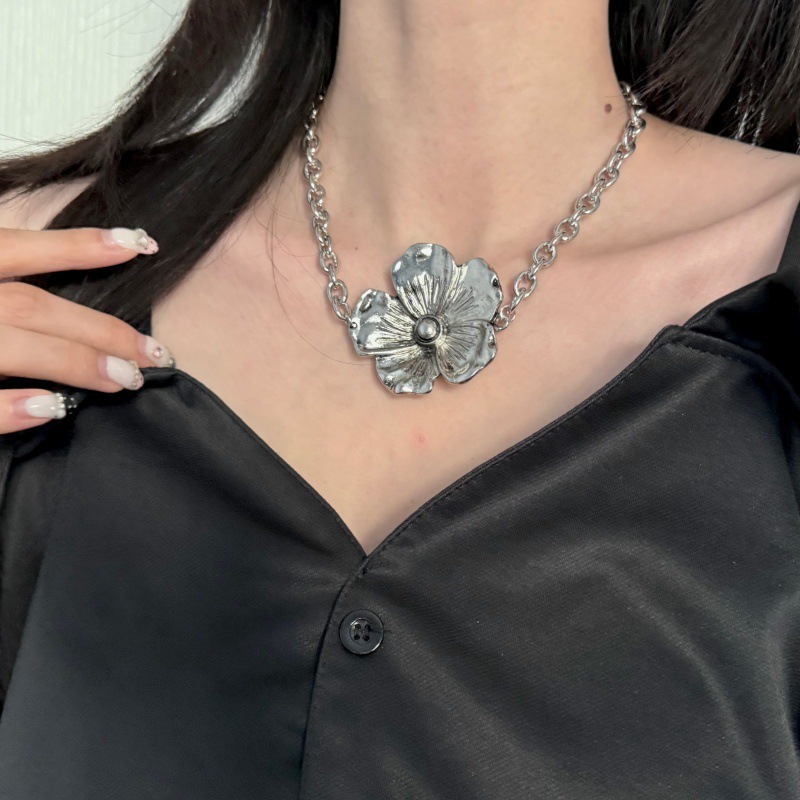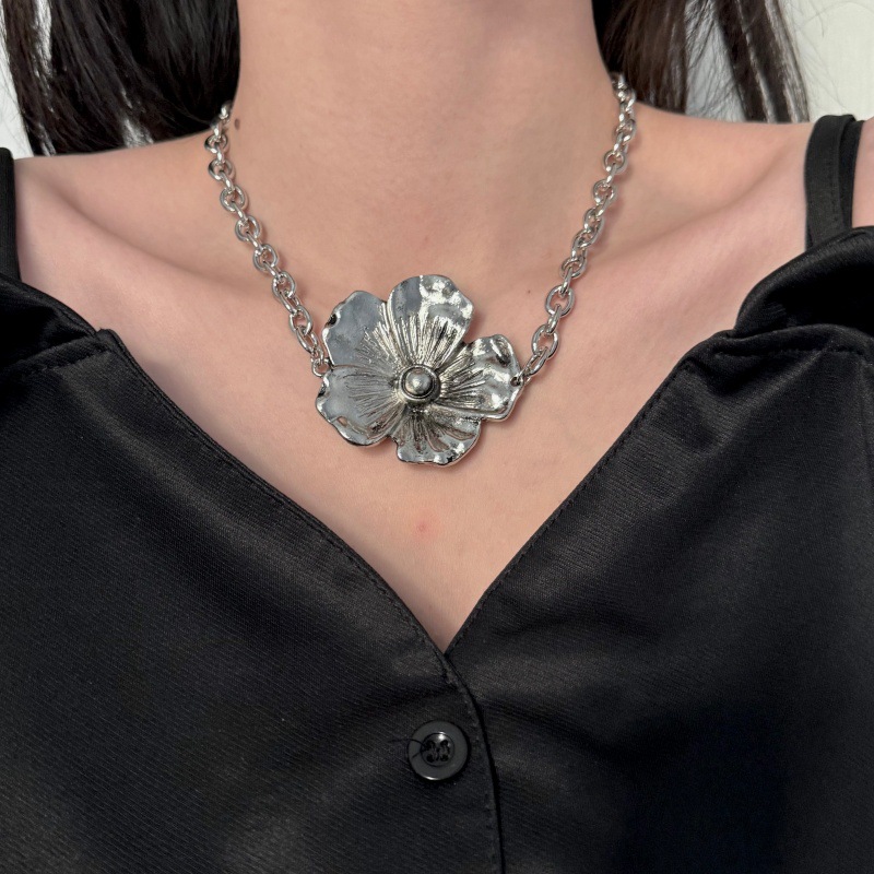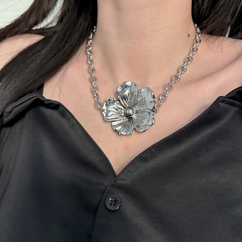 欧美风夸张立体花瓣项链女时髦高级设计感锁骨链小众颈链choker