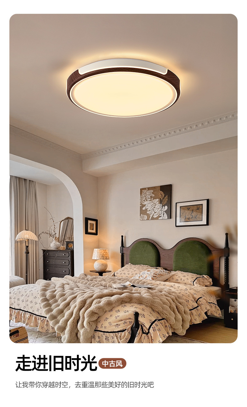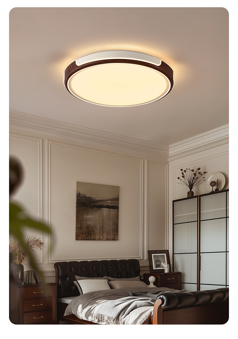 胡桃木纹复古卧室吸顶灯简约大方中古风全光谱护眼书房卧室吸顶灯