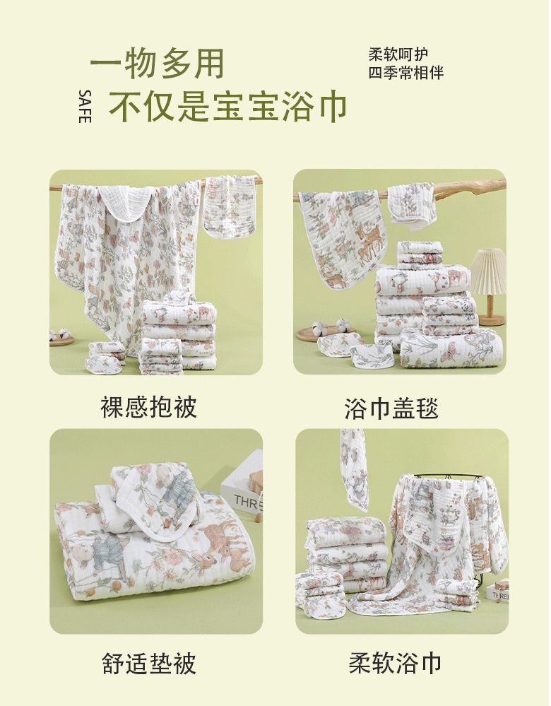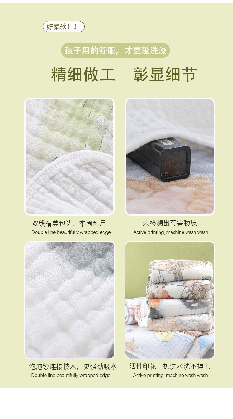 婴儿纱布浴巾儿童毛巾A类抗菌洗澡宝宝洗脸巾超柔保暖纯棉6层盖毯