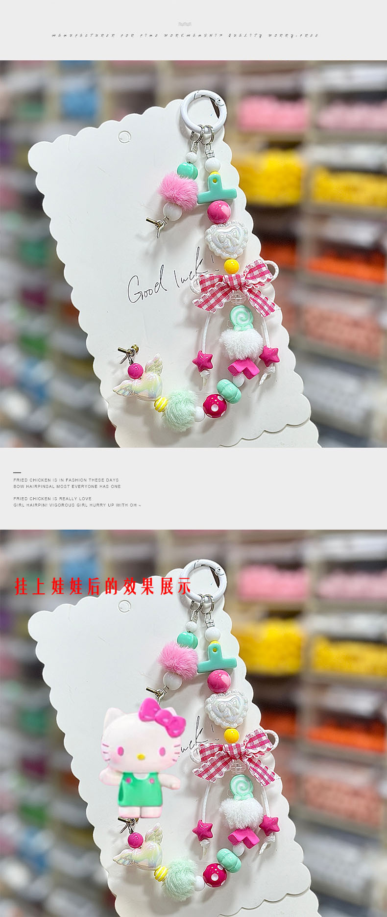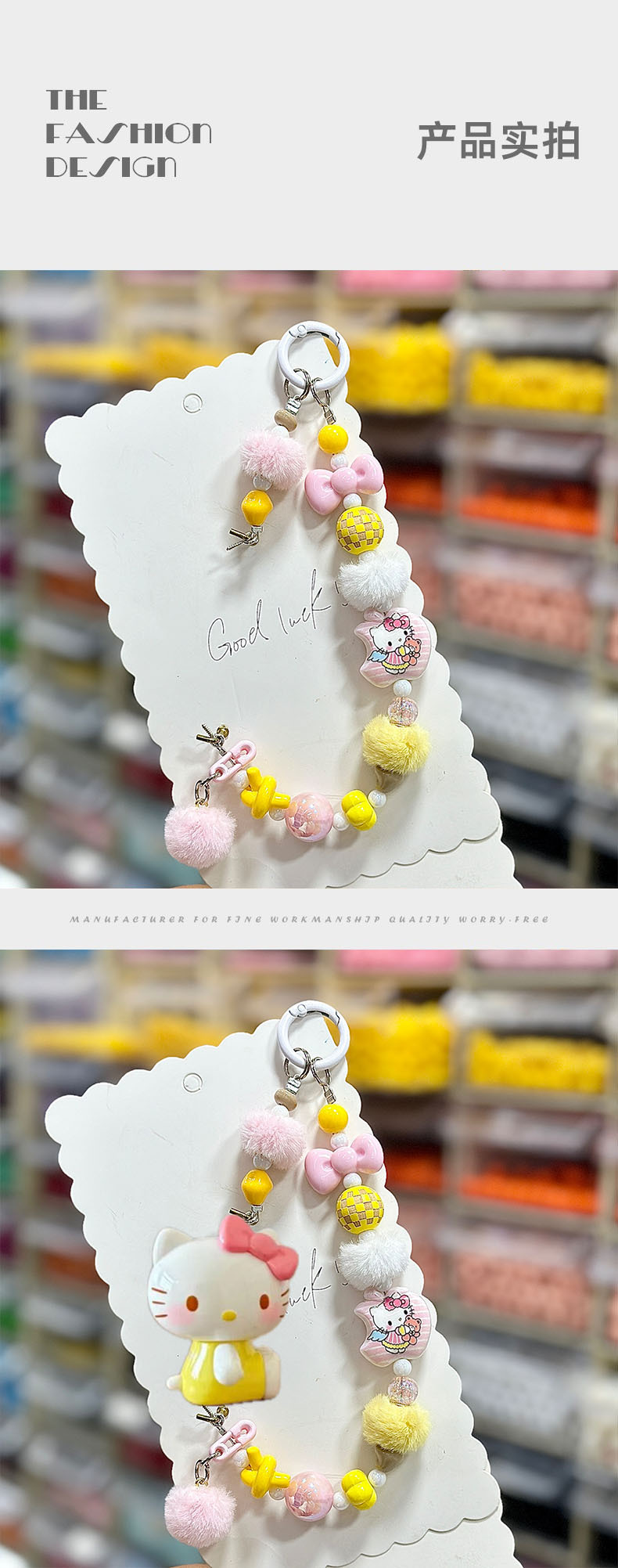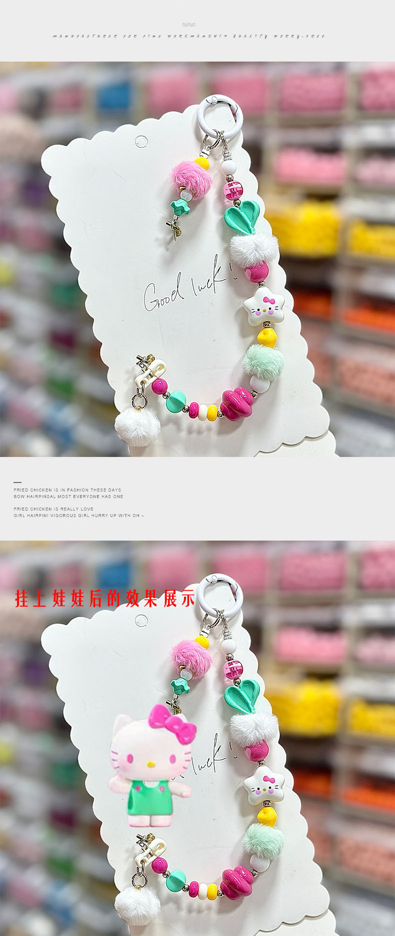 原创毛球款星星人Kitty直播间手机链可diy挂娃包挂多巴胺手机挂绳