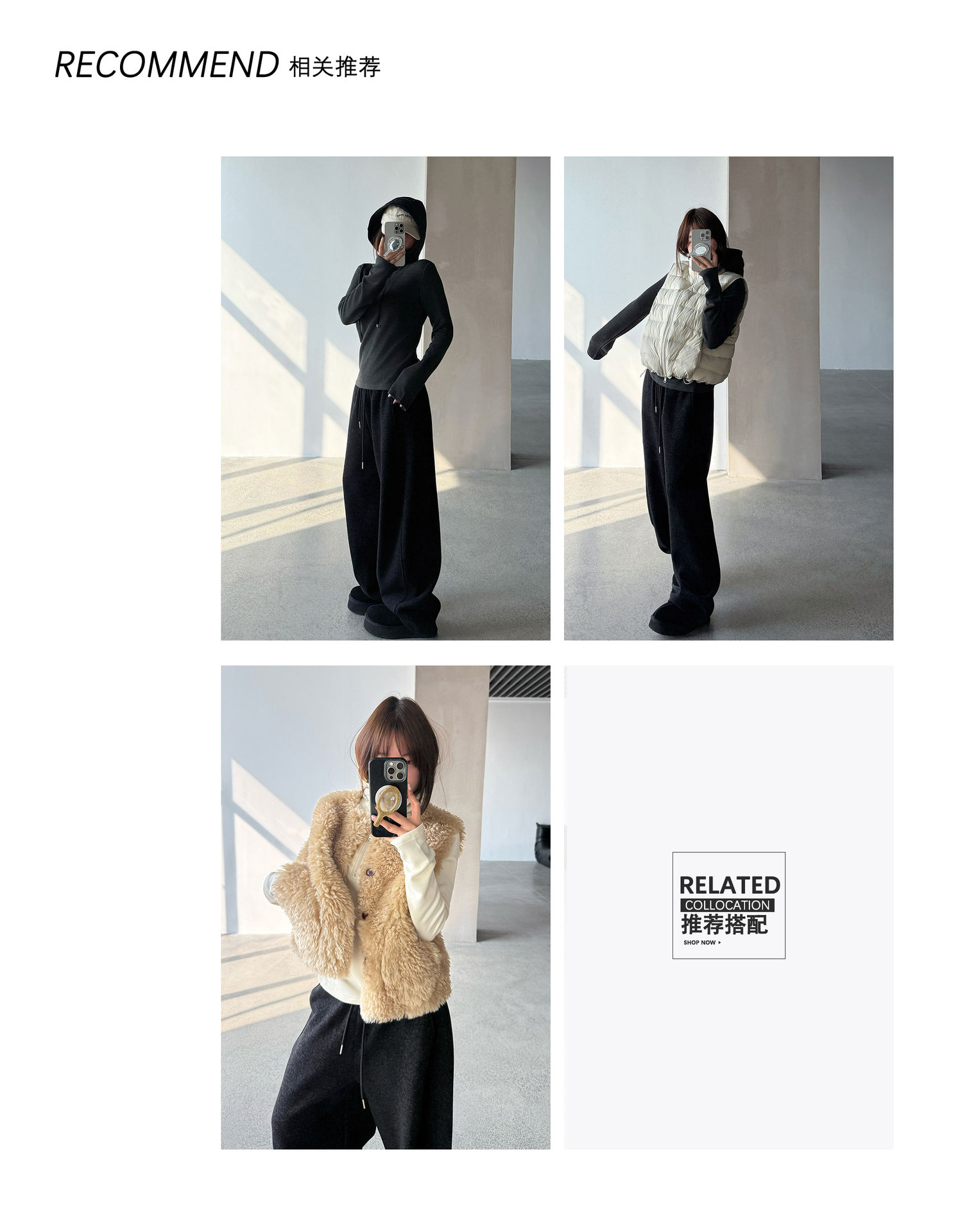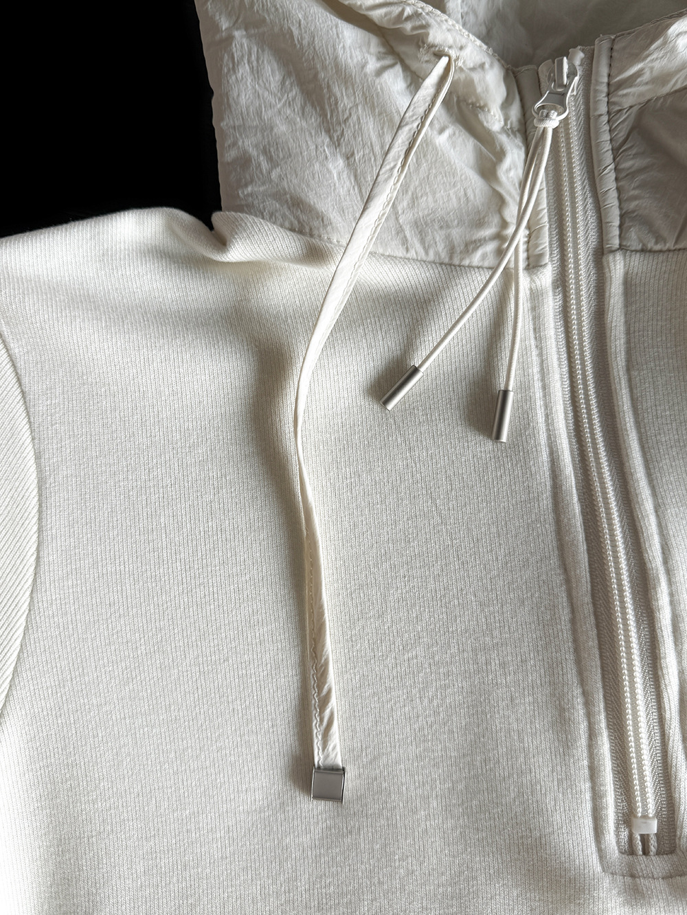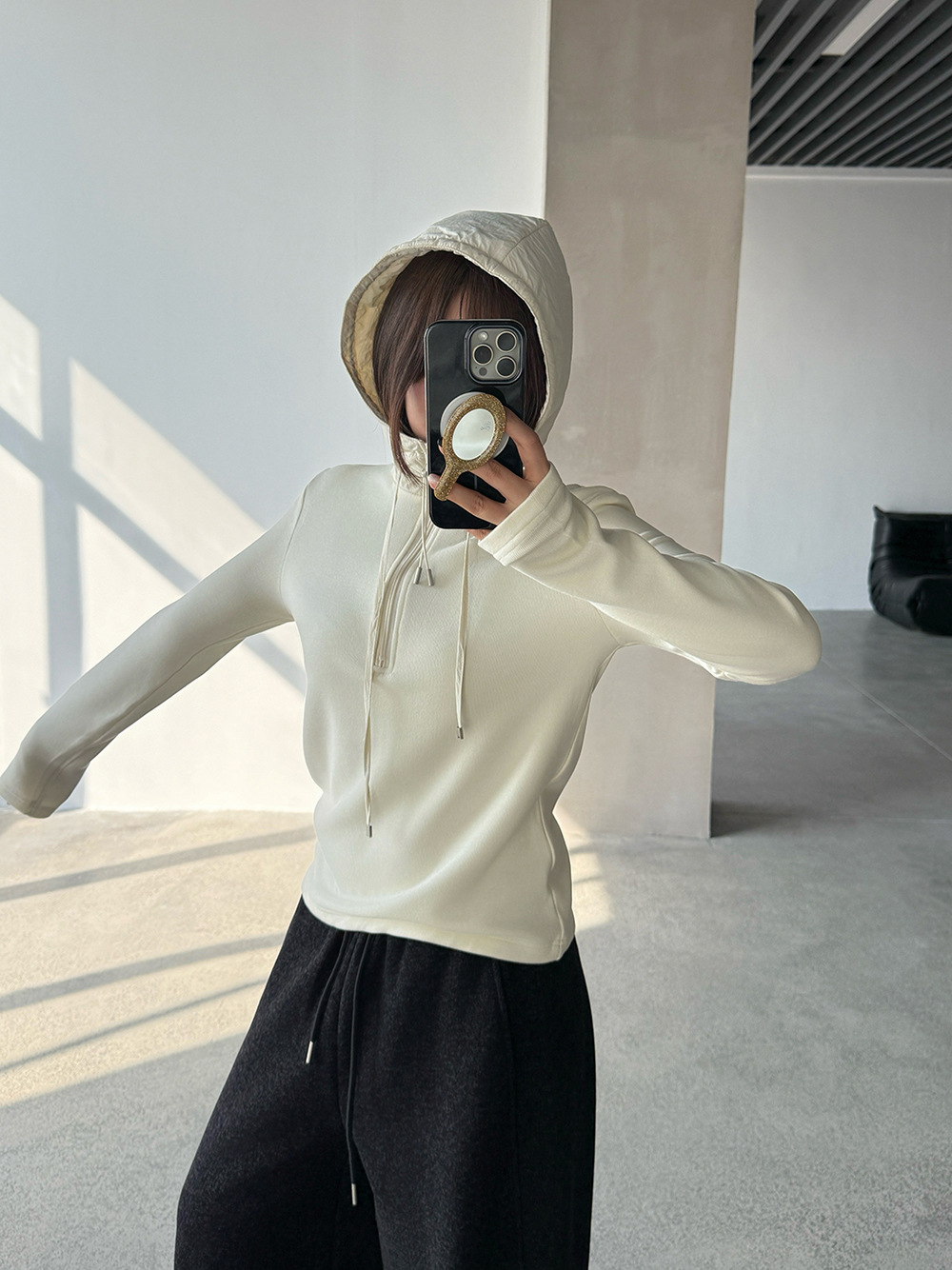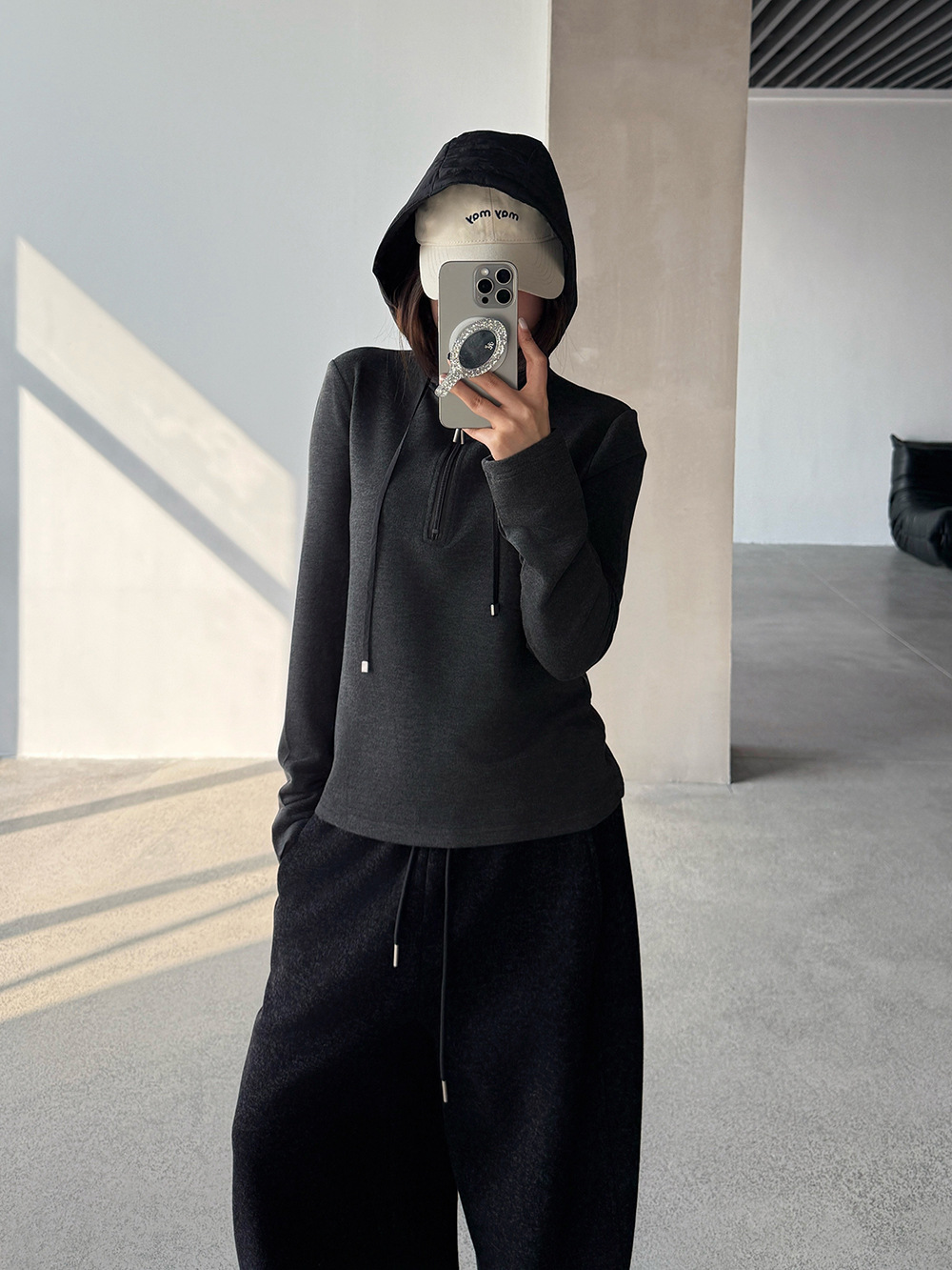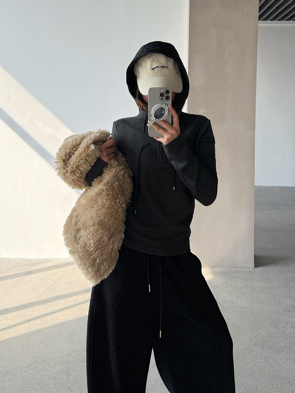 【王琪芝】薄绒休闲简约连帽t恤女通勤运动风抽绳拼接上衣WQ113